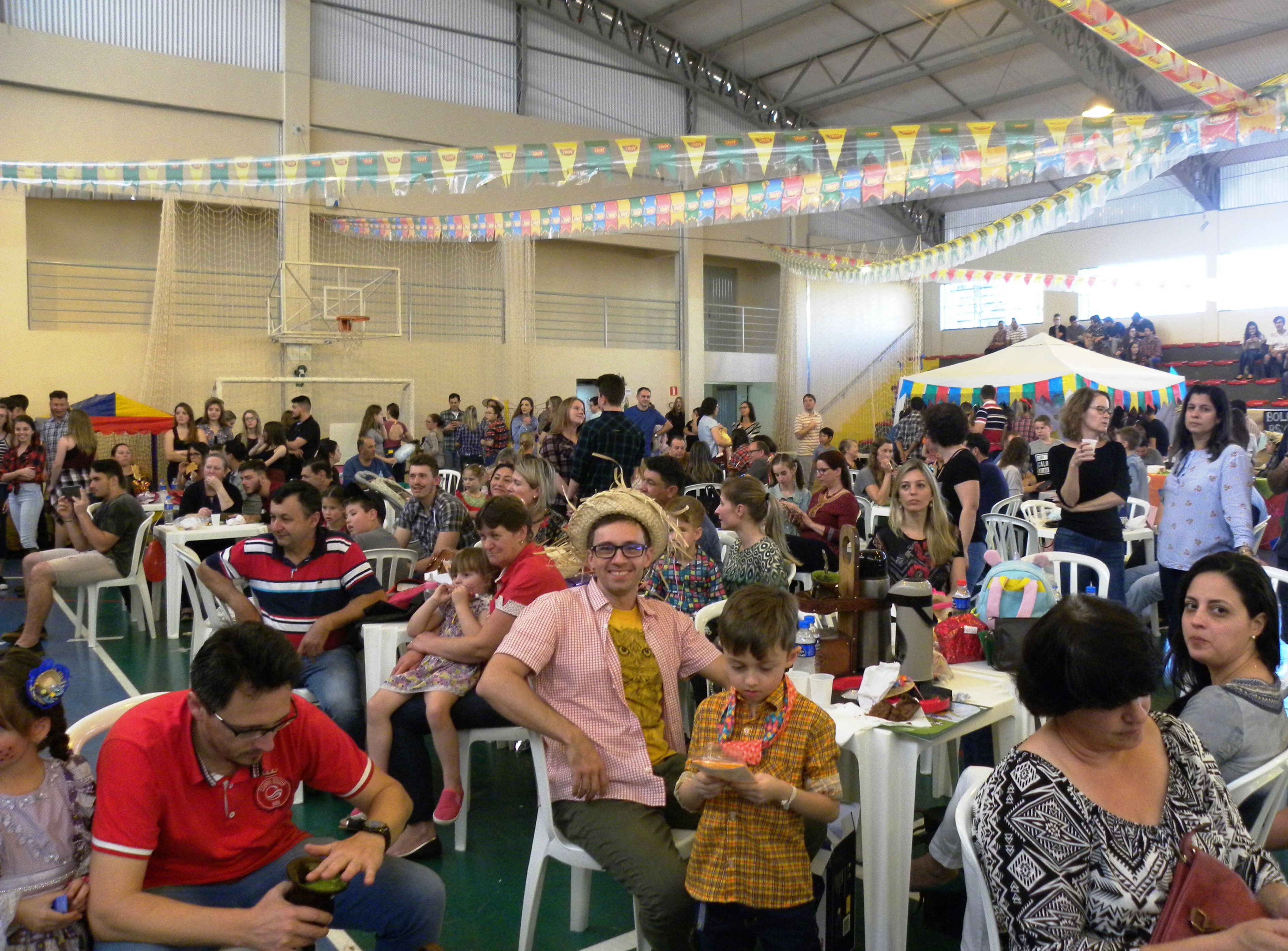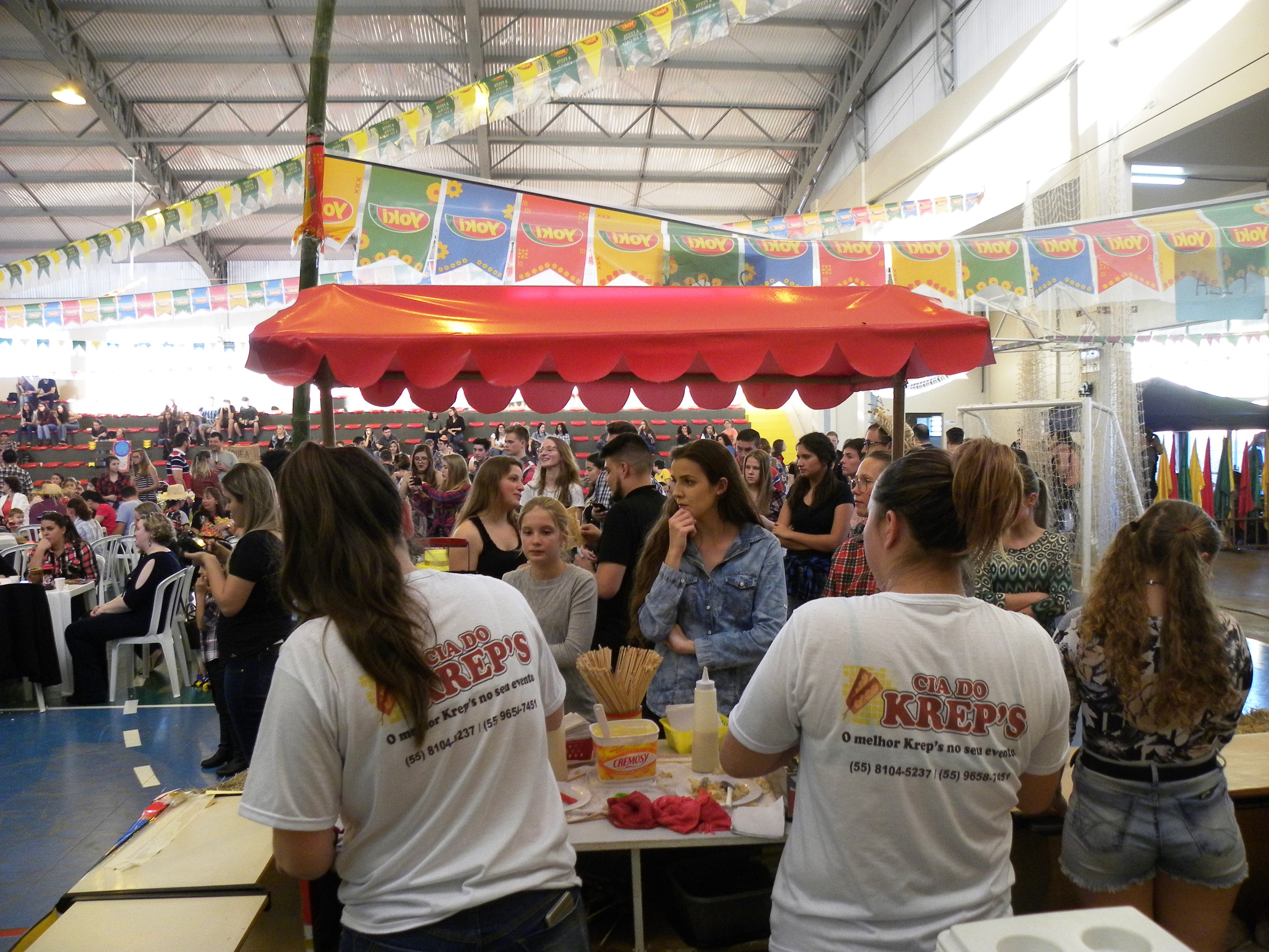 O IFFar - Campus Santa Rosa realizou com sucesso a festa junina 2018, no sábado (23). A apresentação das brincadeiras como casamento caipira, quadrilha e desfile de casais caipiras ficou por conta do Grêmio Estudantil. Os alunos dos cursos técnicos e superiores dividiram a venda de comidas típicas em barracas diversas. O dia ensolarado e com temperaturas amenas contribuiu para que a comunidade agitasse o ginásio de esportes, local escolhido para a festa.