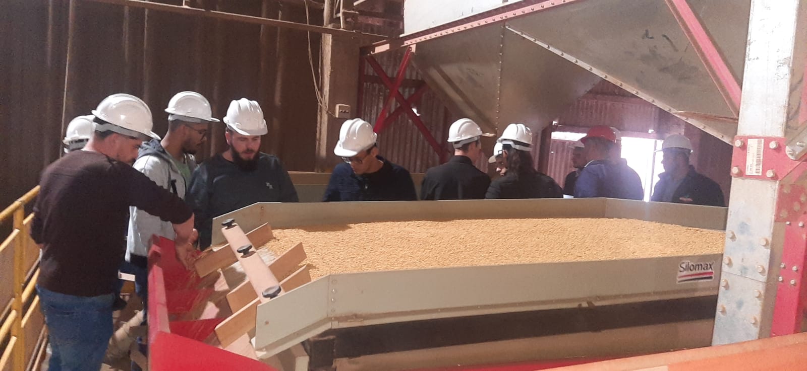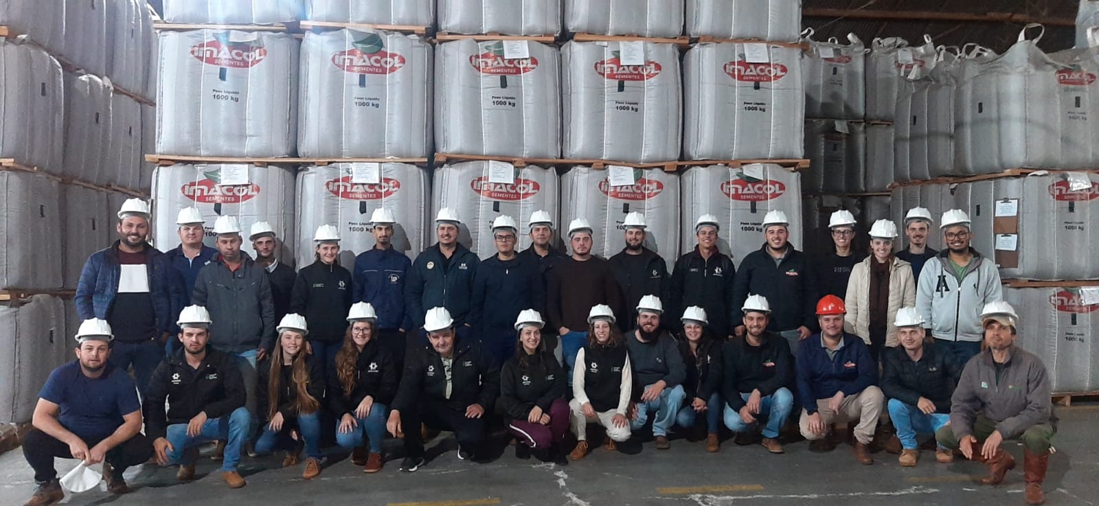 À tarde, dentro da disciplina de Produção e Tecnologia de Sementes, ministrada pelo professor Ricardo Paraginski, foi realizada a visita na Imacol Sementes de Santo Augusto. Na oportunidade, acompanhados do responsável técnico, o Engenheiro Agrônomo João Moura e do Representante Comercial, o Engenheiro Agrônomo Gabriel Moura (egresso do curso Técnico em Agropecuária do IFFar – Campus Santo Augusto), os acadêmicos visitaram a estrutura de recebimento de sementes da empresa, a Unidade de Beneficiamento de Sementes (UBS) em pleno funcionamento, onde estavam sendo beneficiadas sementes de soja e também a parte de armazenamento de sementes da empresa.