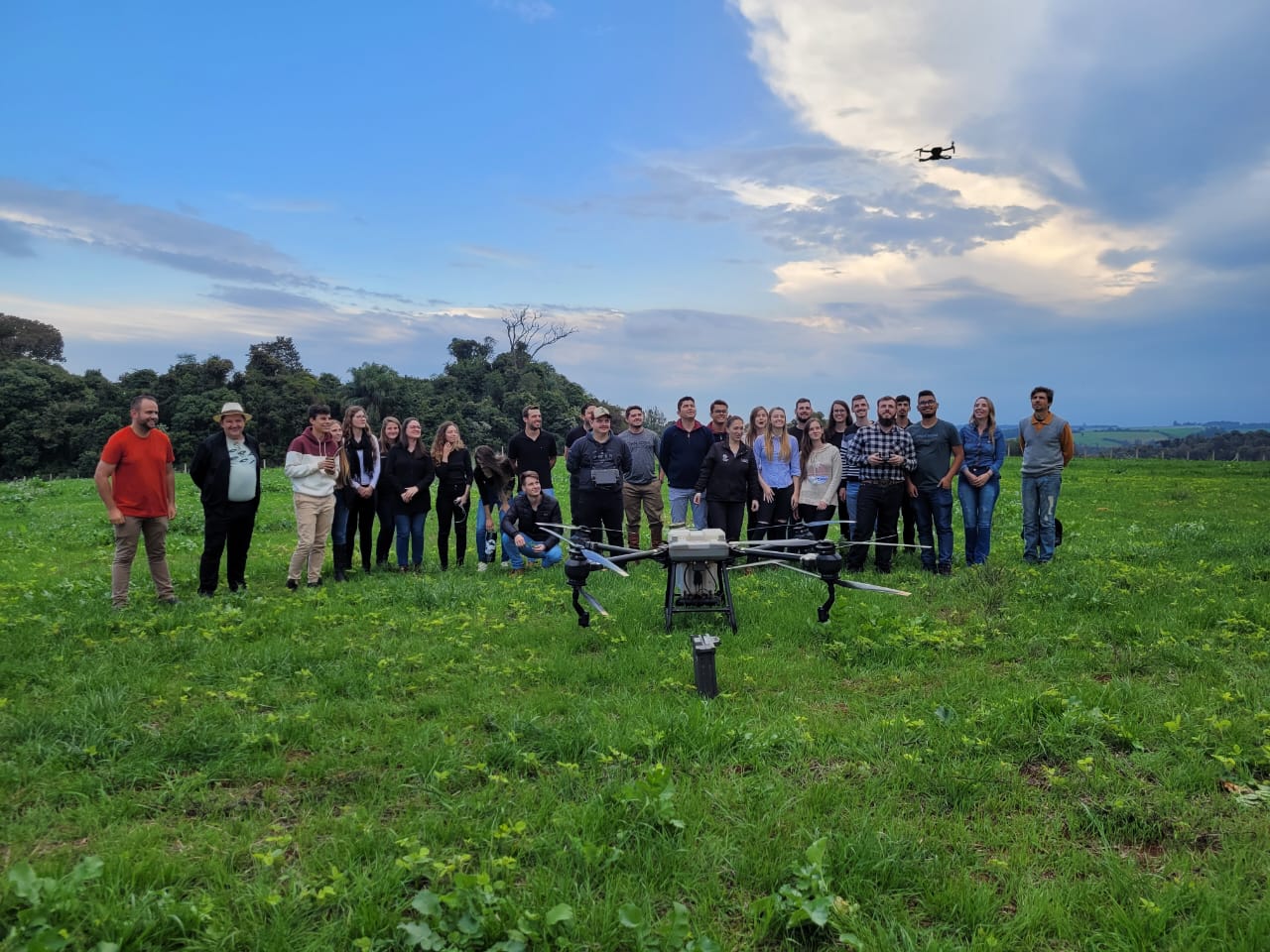 No dia 22 de junho, a turma participou de uma demonstração do Drone de Pulverização da empresa Jbs Pulverização Agrícola de Três de Maio. Segundo a Embrapa, o drone é uma ferramenta promissora de pulverização e pode trazer benefícios imediatos, como tirar o aplicador de dentro da lavoura no momento da aplicação, principalmente o que usa o pulverizador costal; não causar amassamento da cultura; não depender das condições do solo para entrar na lavoura; utilizar menos água; não utilizar combustíveis fósseis; rapidez de aplicação em pequenas áreas; complementar a pulverização tratorizada e com o avião em áreas acidentadas, com obstáculos e em aplicação localizada, de acordo com mapas de aplicação, no contexto de agricultura de precisão.
