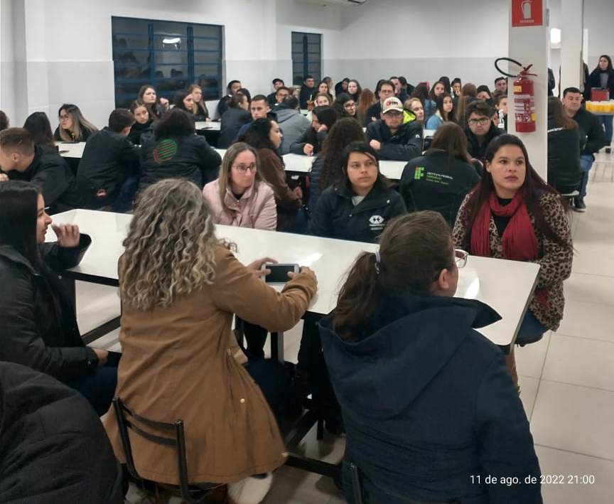 No turno da noite os estudantes dos cursos superiores foram liberados às 20h40 para participarem de um jantar de confraternização no refeitório.