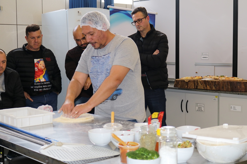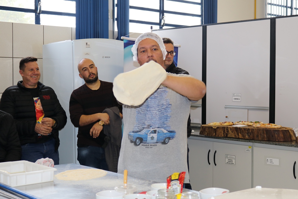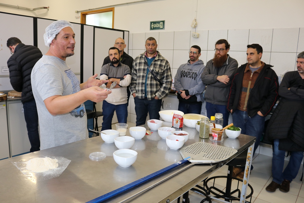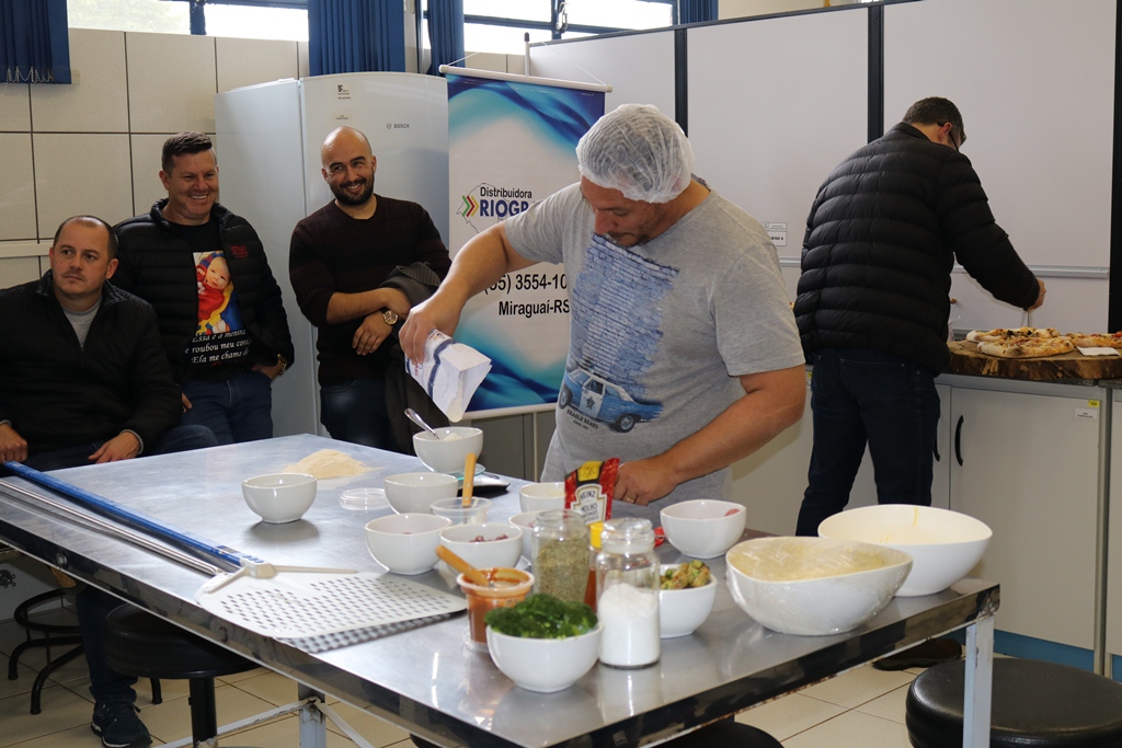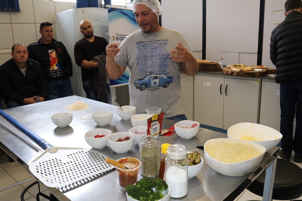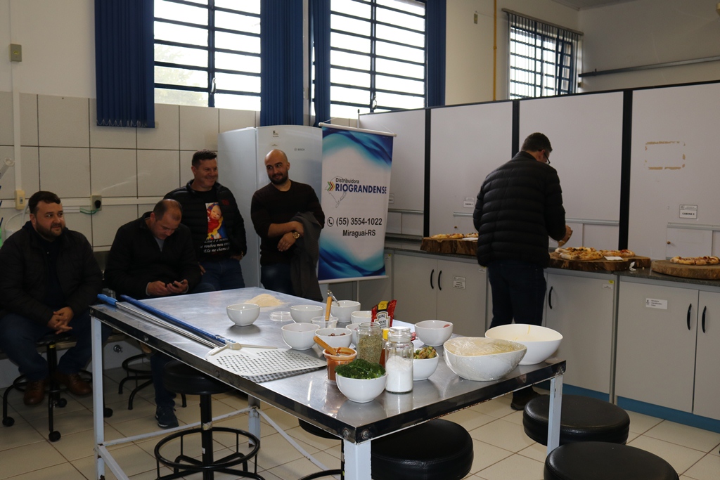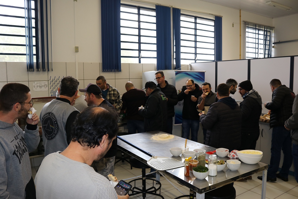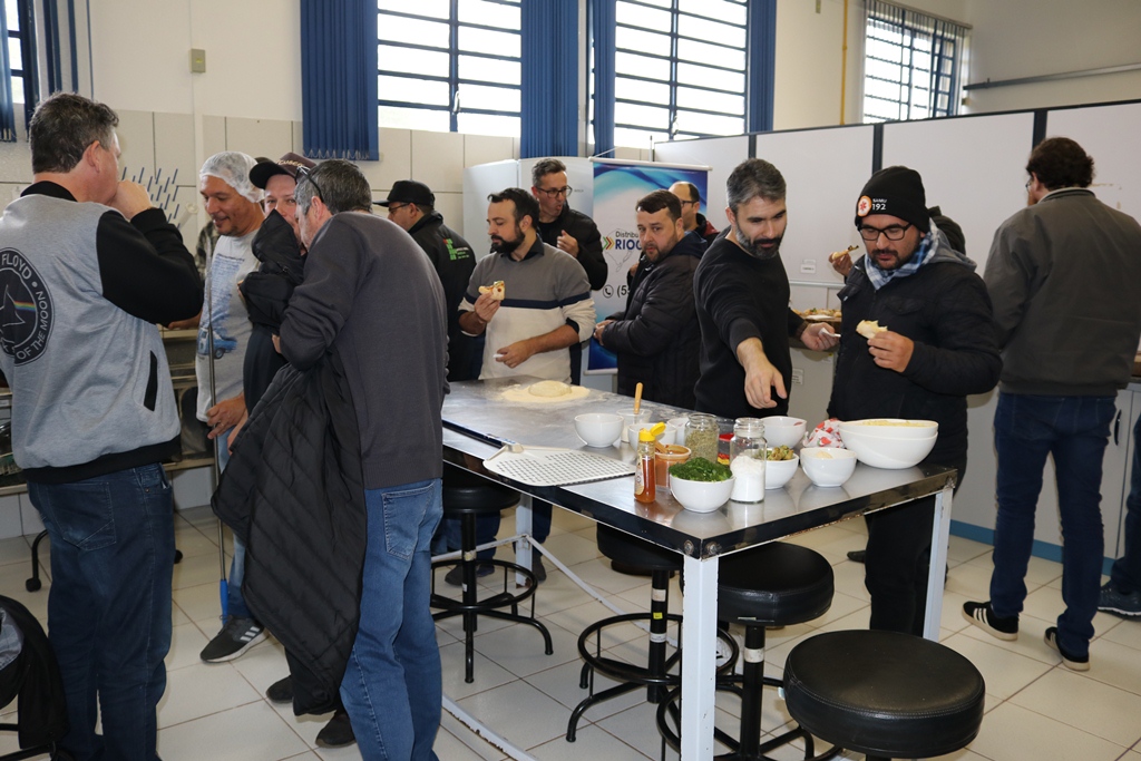 Na sequência, às 15h, os papais participaram de uma oficina de pizza no laboratório de panificação, ministrada pelo professor Raphael d’Acampora, que ensinou desde a produção da massa, a escolha dos recheios, o preparo e a forma de assar. Os produtos utilizados na oficina foram fornecidos pela empresa Distribuidora Riograndense.
