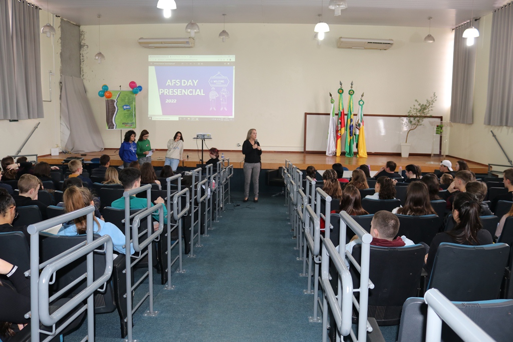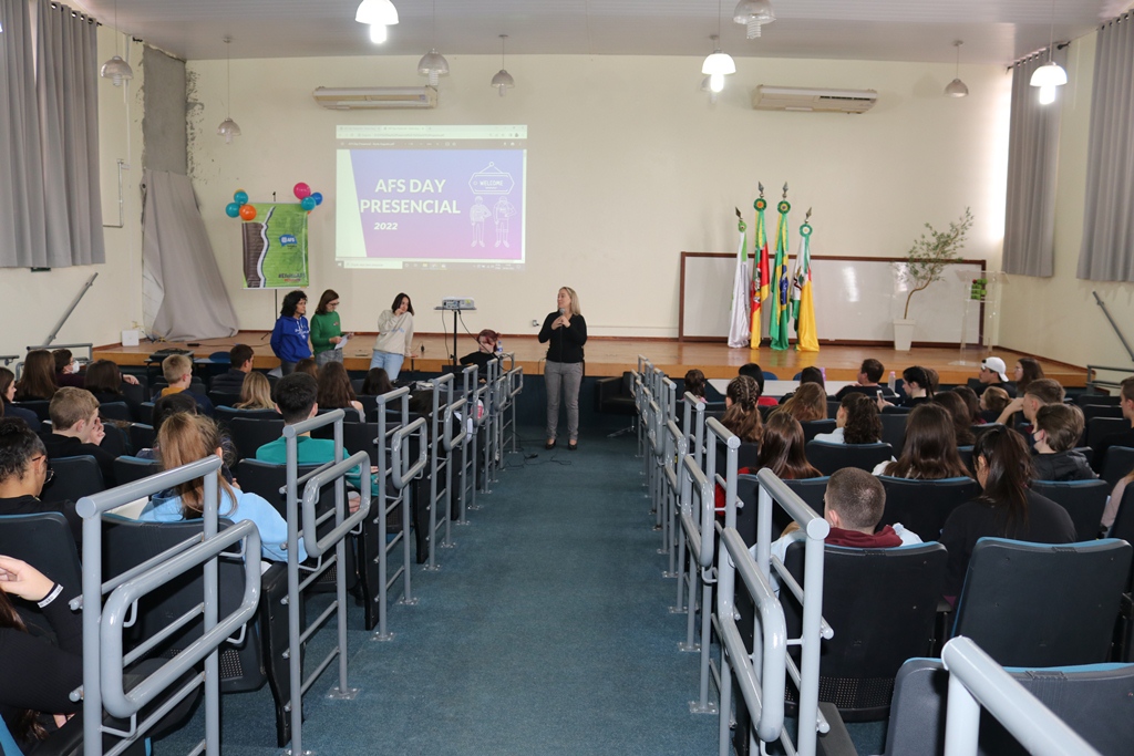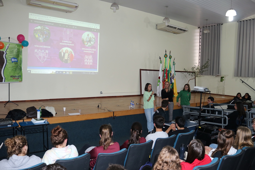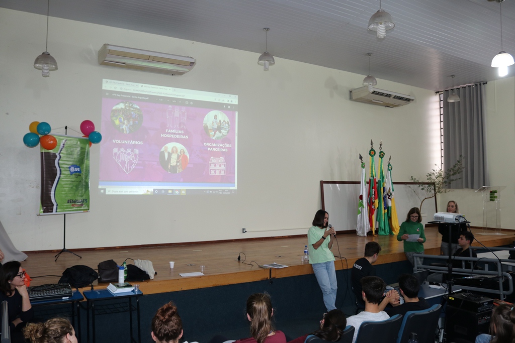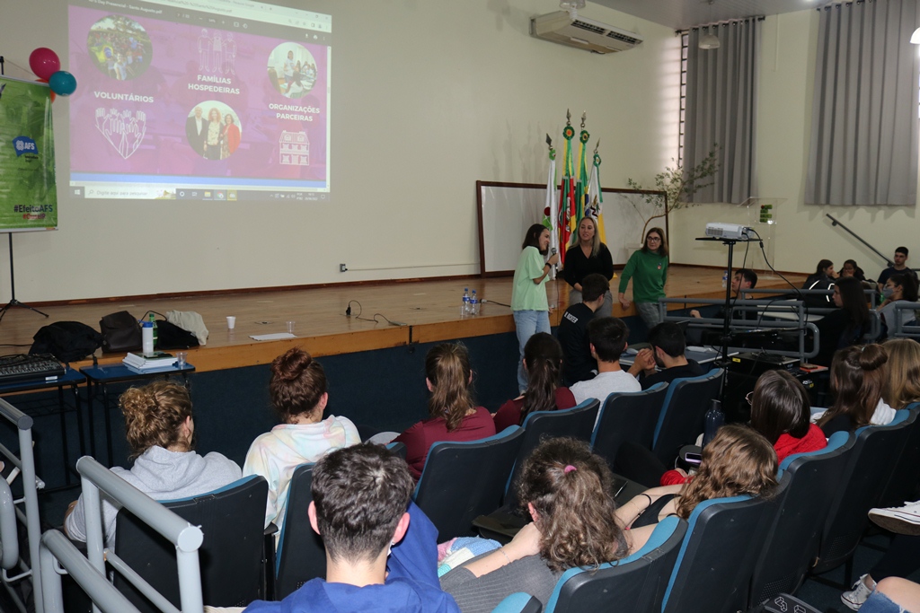 Na tarde de terça-feira, 28 de junho, os estudantes dos cursos técnicos integrados ao ensino médio participaram no auditório da instituição de palestra com o Comitê de Cruz Alta/RS da AFS Intercultural (ONG não governamental há 66 anos no Brasil).