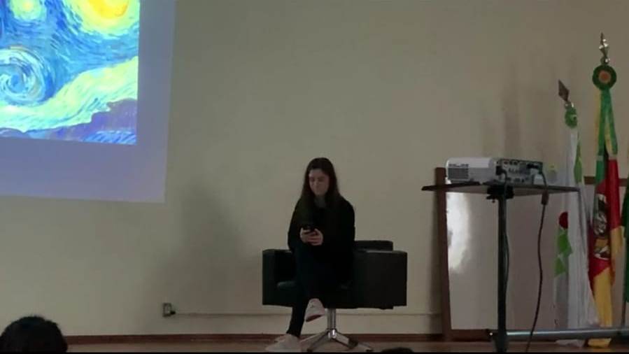 As representantes da AFS trouxeram para conversar com os estudantes a intercambista, Martina Minerva, da cidade de Otranto na Itália, que está morando em Cruz Alta desde o início deste ano, realizando intercâmbio semestral e cursa 2º ano do ensino médio na Escola Estadual Professor Annes Dias, a qual falou como é o intercambio, como funciona a relação com a família hospedeira e como são as diferenças culturais entre os países.
