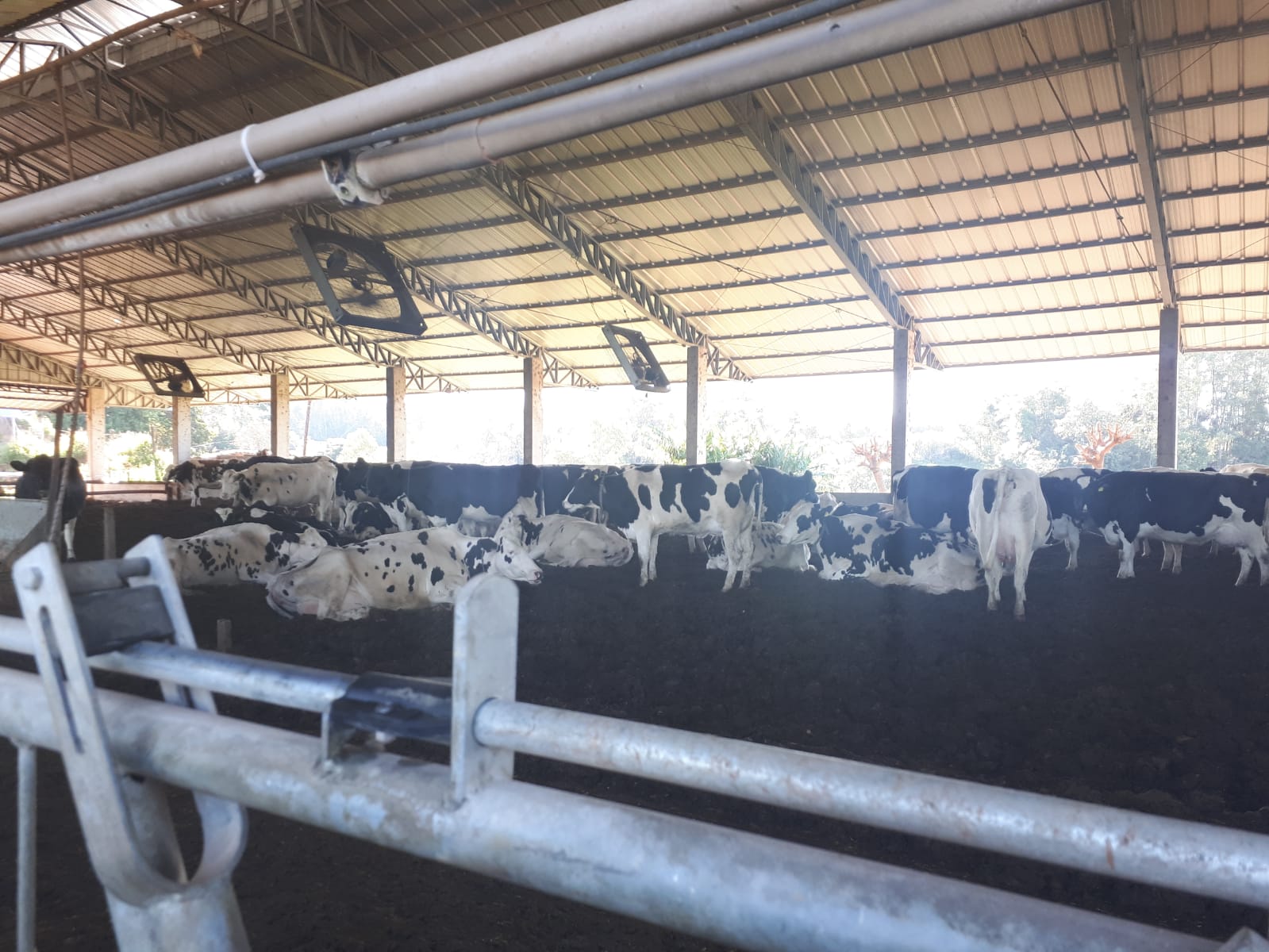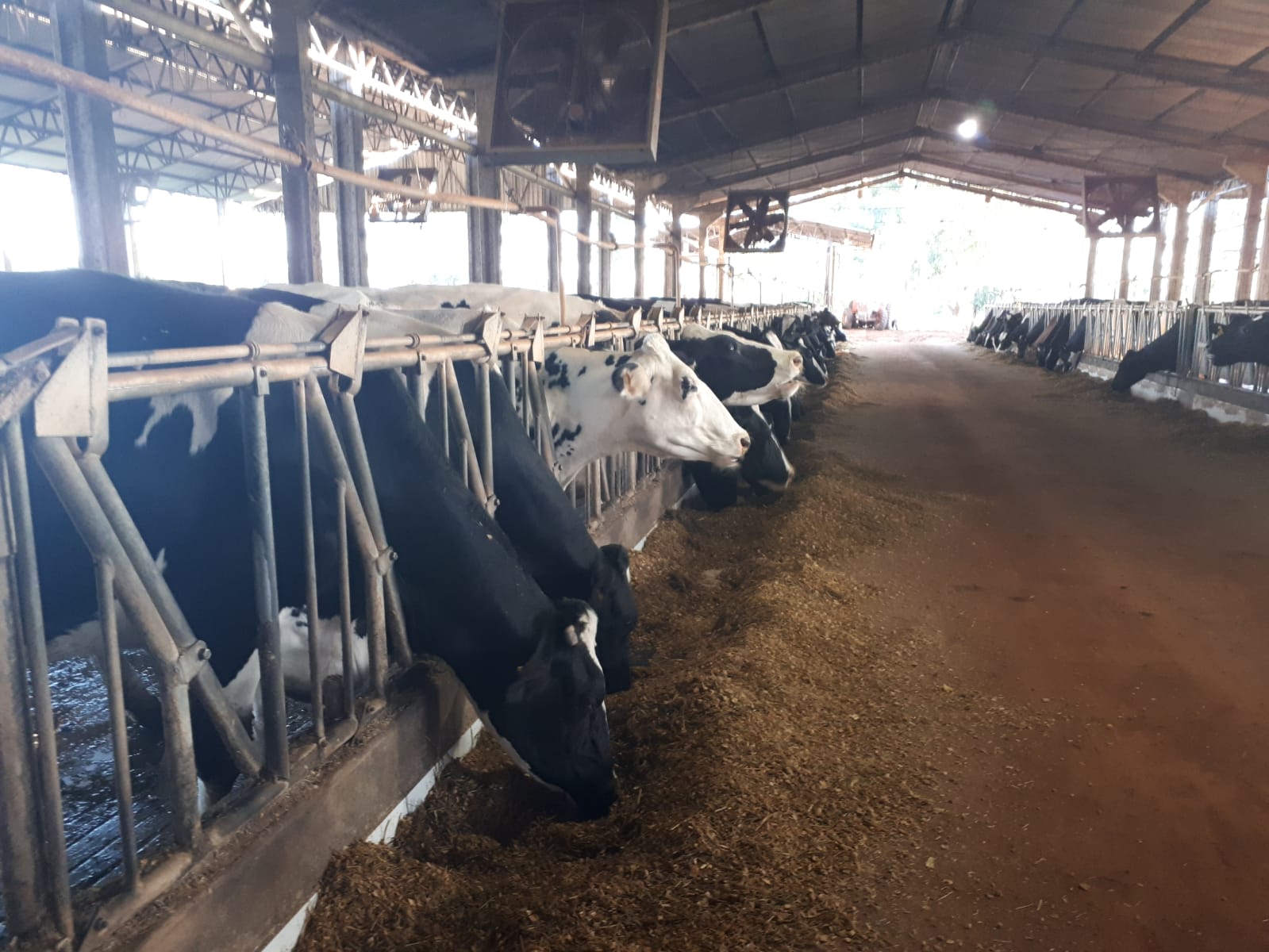 Na oportunidade, foi visitada a Cabanha Santa Clara no município de Humaitá-RS, que possui sistema de confinamento de vacas leiteiras em Free Stall (sistema de criação onde as vacas leiteiras possuem uma área livre para circulação e camas individuais e recebem alimentação no cocho), com túnel de vento.