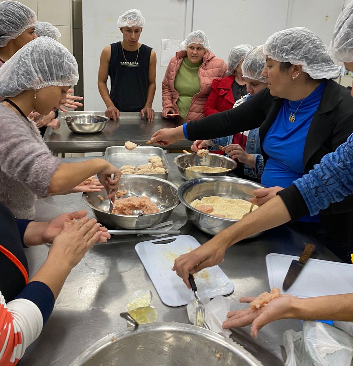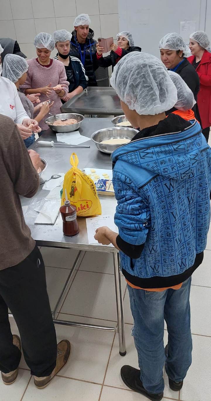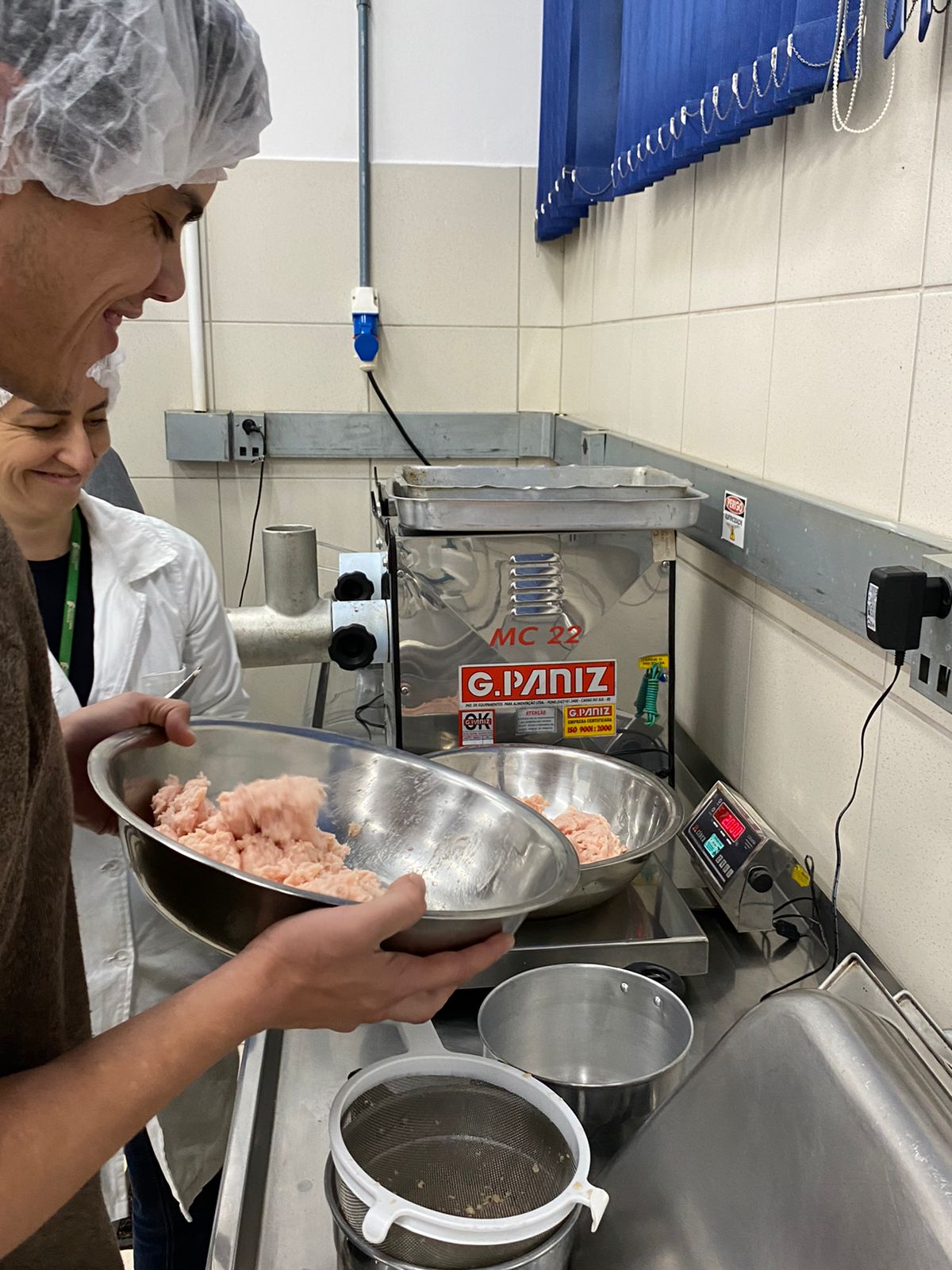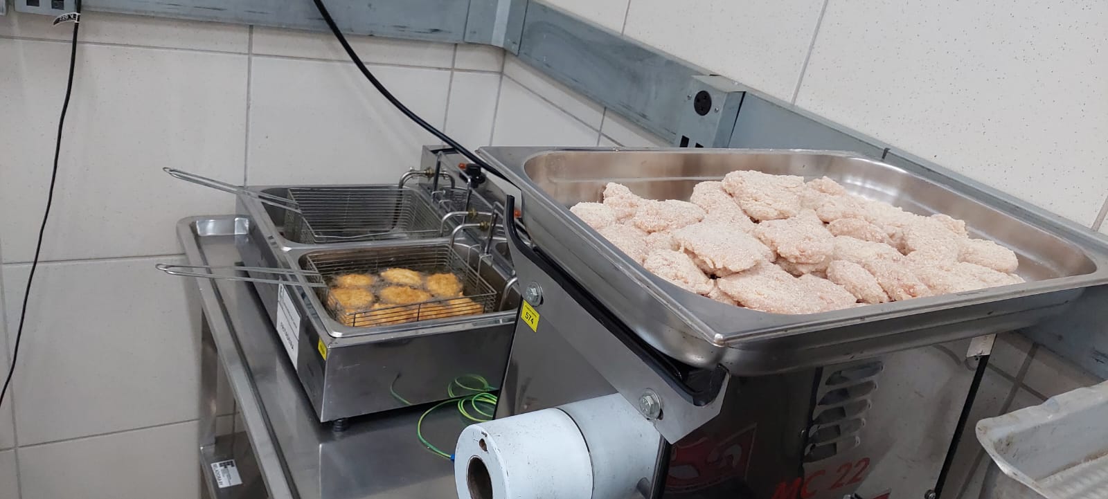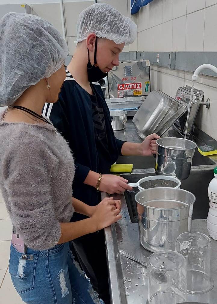Os visitantes foram recebidos no auditório da instituição pelos coordenadores do projeto, professor Aelson Brum e professora Karinne Wendy Menezes, os quais explicaram um pouco sobre a instituição e sobre o projeto. Na sequência o grupo participou de uma oficina sobre “Produção de Nuggets”, ministrada pela professora Melissa dos Santos Oliveira, realizada em parceria com o Curso Técnico em Agroindústria integrado ao ensino médio na modalidade Proeja. Durante a oficina foi destacada a importância da higiene durante o preparo de qualquer alimento, principalmente das mãos.