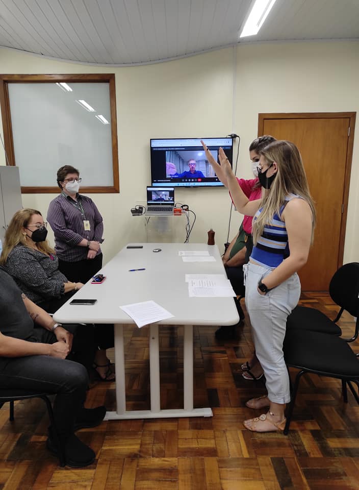 O ato contou com a presença da Diretora Geral, Márcia Fink; do Coordenador do curso superior de Tecnologia em Gestão do Agronegócio, Cristiano Nunes dos Santos; e dos formandos: Esequiel John Ienerich (participou via google meet), Lilian Vieira Ribeiro e Sarah Ketzer Sônego.