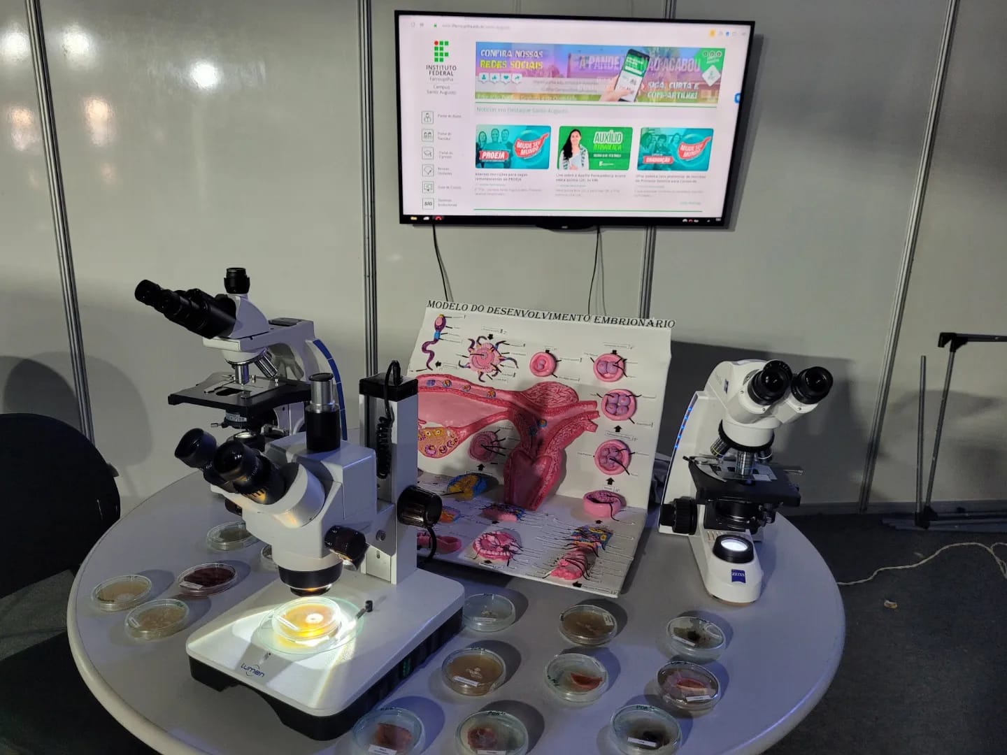 De 24 a 26 de fevereiro, o IFFar – Campus Santo Augusto participa da 6ª EXPOAGRO COTRICAMPO, junto ao Campo Experimental da cooperativa em Campo Novo. A organização do evento cedeu à instituição um estande onde está sendo exposto para a comunidade, além dos cursos oferecidos, atividades de pesquisa e extensão desenvolvidas por alunos e professores, animais empalhados, microscópio e a impressora 3D que está atraindo a curiosidade dos visitantes.