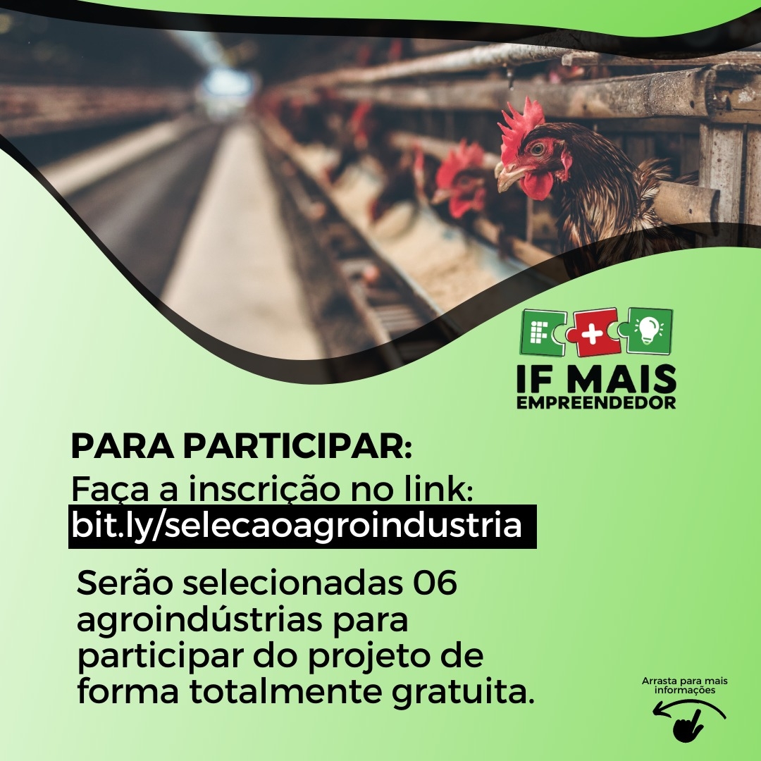 Serão selecionadas seis agroindústrias que participarão do projeto de forma totalmente gratuita. Os interessados devem se inscrever até 16 de maio pelo link bit.ly/selecaoagroindustria.
