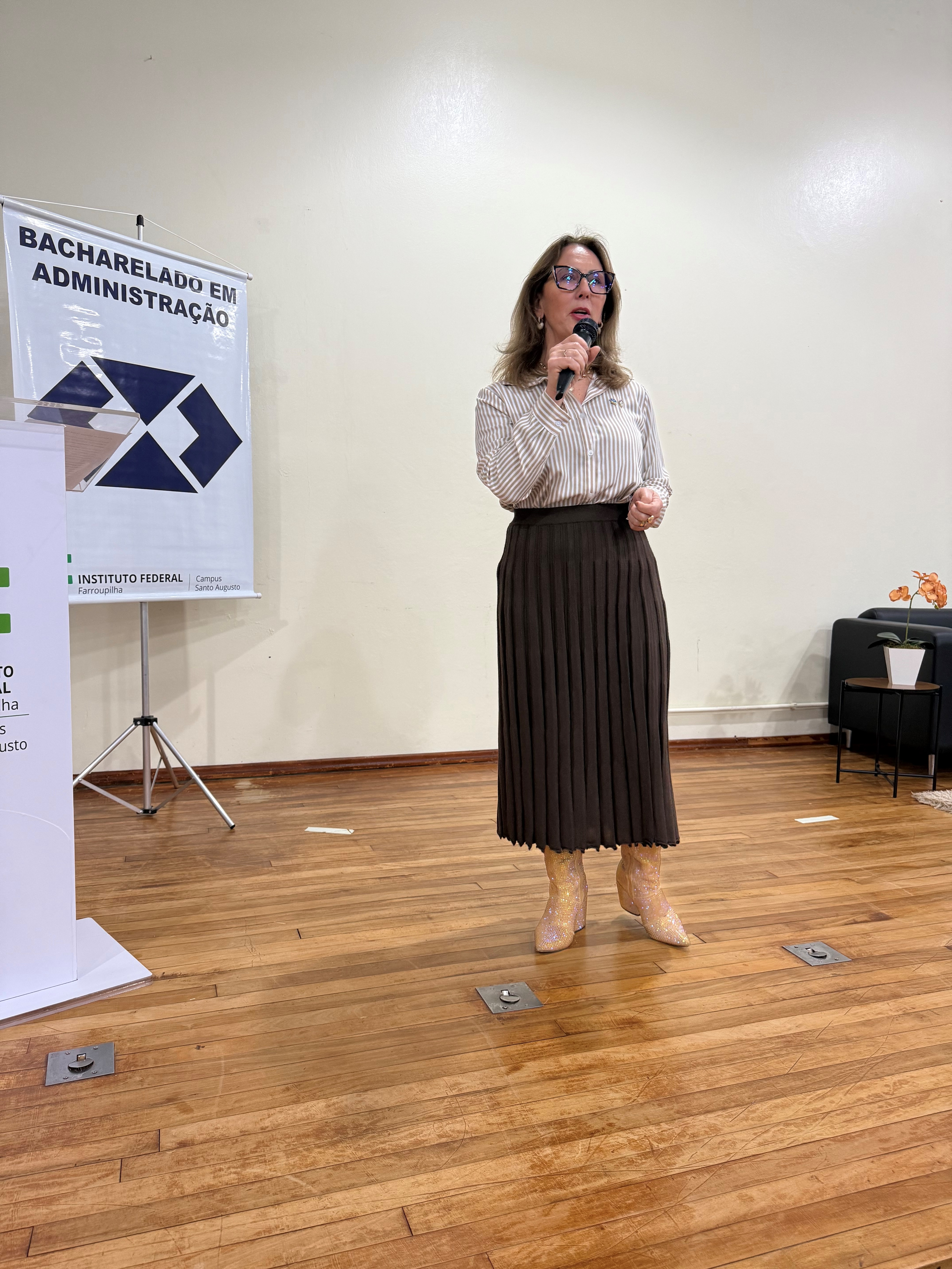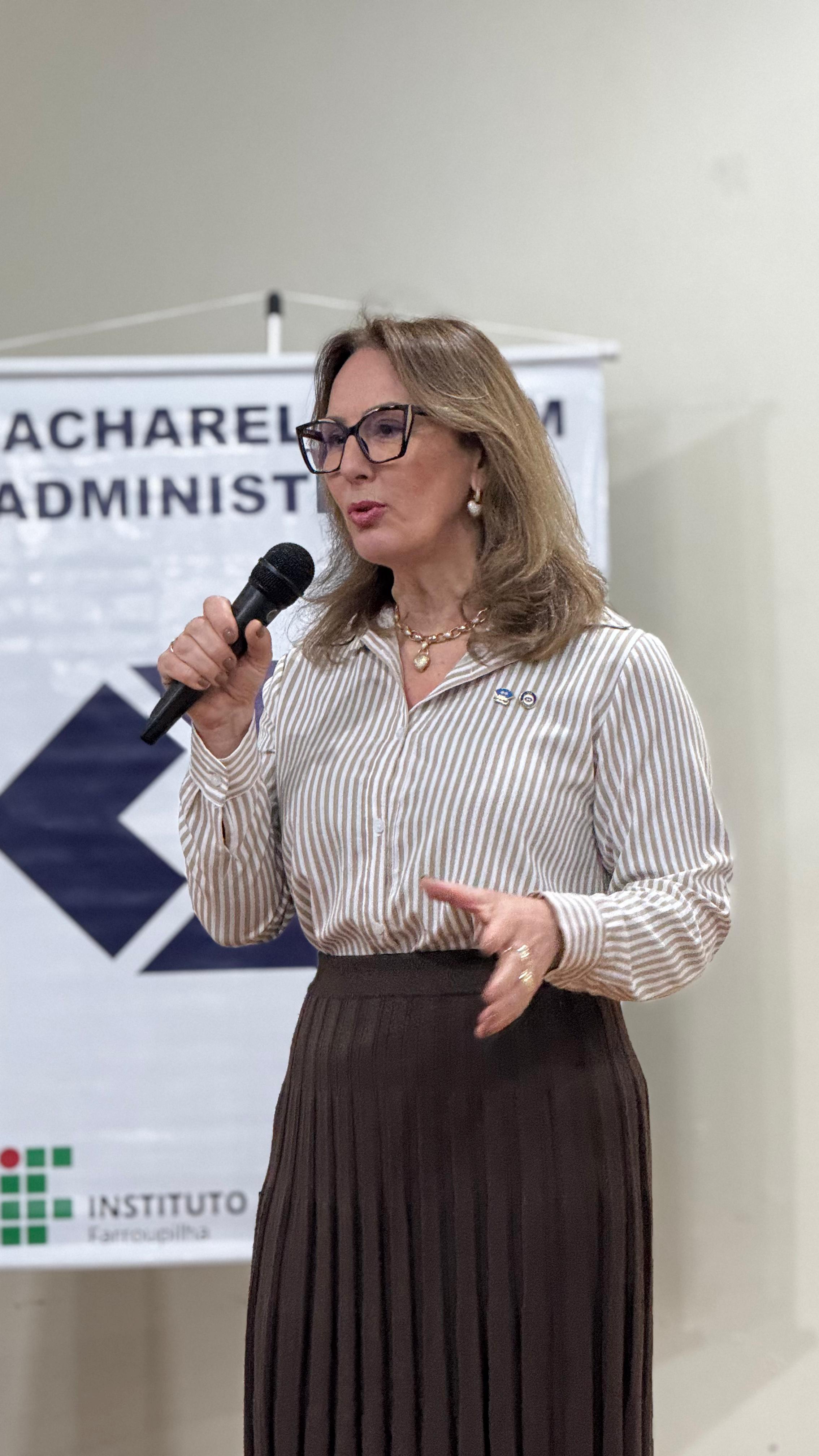 Durante a fala de abertura, a vice-presidente de Fiscalização e Registro do CRA-RS, Administradora Odete Mercedes Marcante Alves, ressaltou a importância da atuação do conselho e da relação com as instituições de ensino, especialmente neste ano em que se celebra o jubileu da profissão de Administrador.