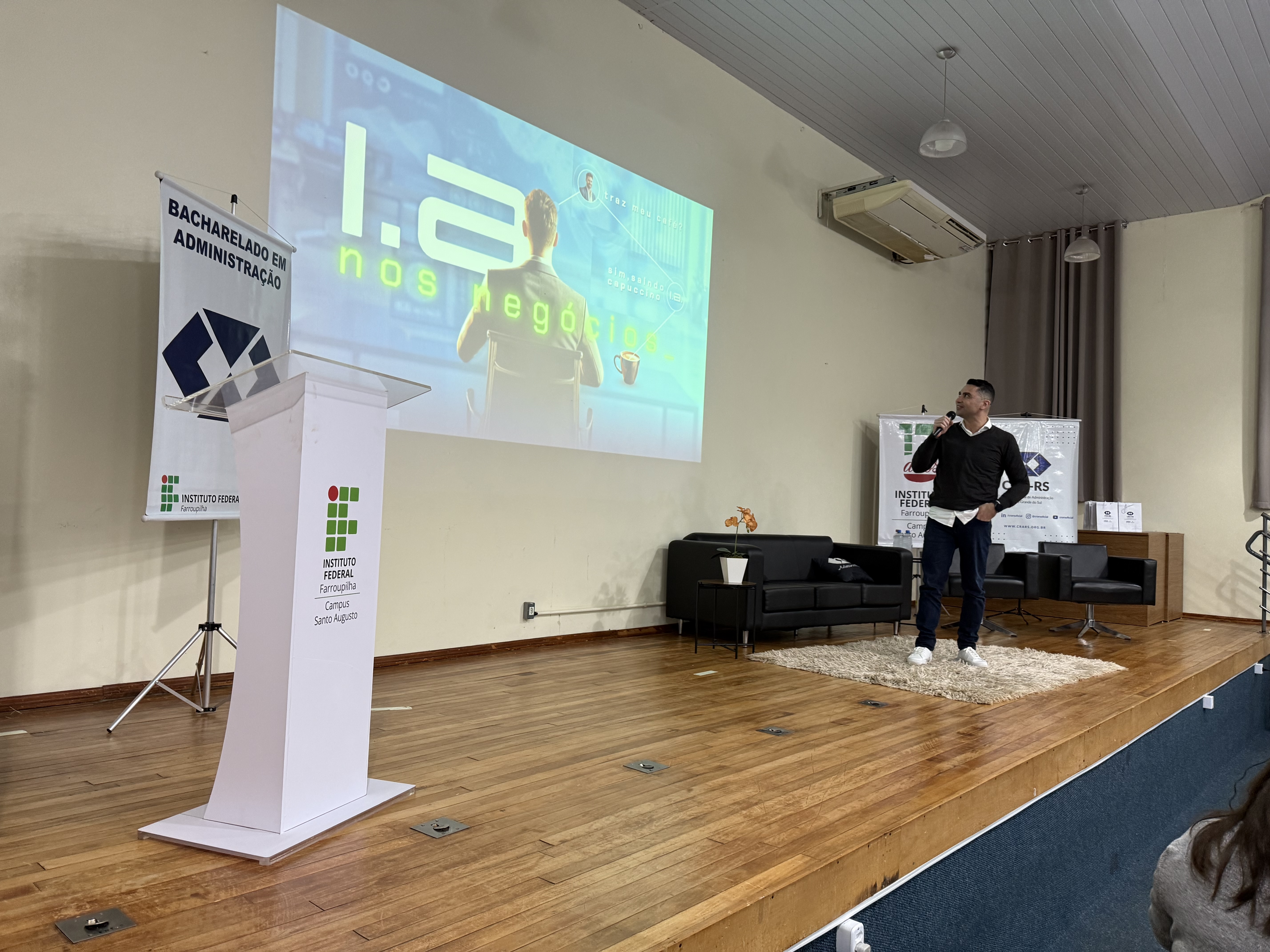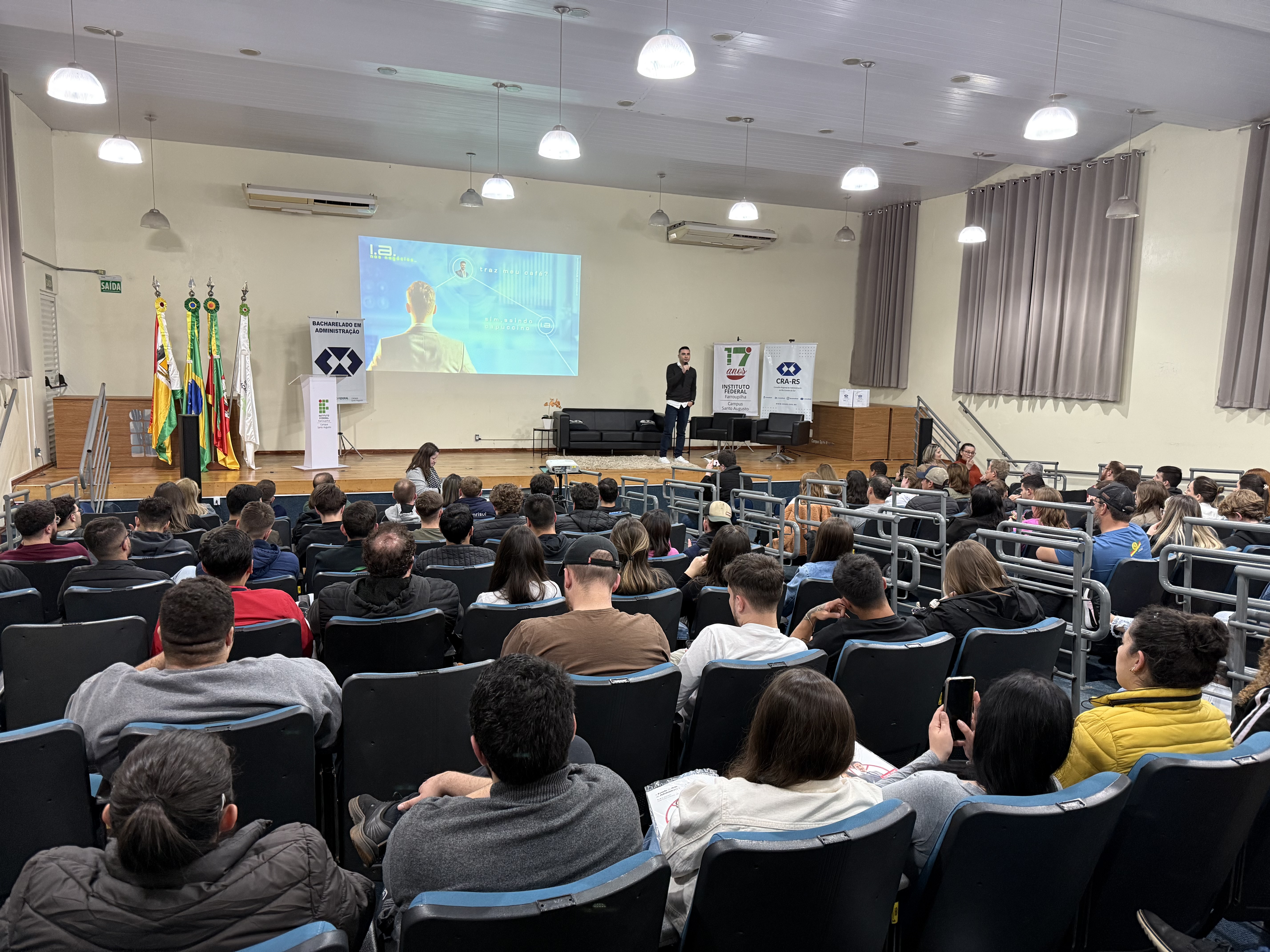 O auditório do IFFar – Campus Santo Augusto foi sede na noite de ontem, 27 de agosto, do Ciclo de Debates de Administração – CIDEAD. O evento organizado pelo Conselho Regional de Administração – CRA-RS, contou com a presença de acadêmicos do Curso Superior de Bacharelado em Administração e de Licenciatura em Computação, e também pessoas da comunidade e de empresas locais.