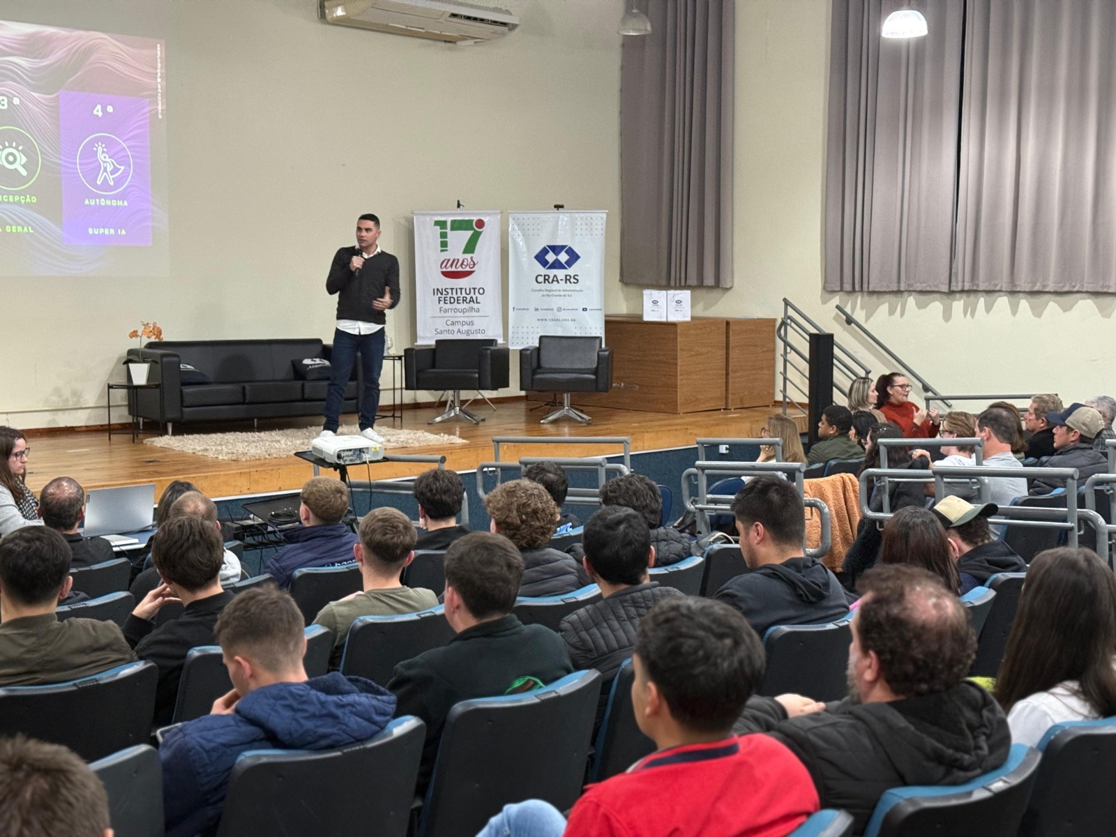 De 18 a 21 de agosto, os acadêmicos do curso superior de Bacharelado em Agronomia do IFFar – Campus Santo Augusto promoveram a VI SEAGRO - Semana Acadêmica da Agronomia, com o objetivo de promover a troca de conhecimentos e experiências entre estudantes, professores, profissionais e a comunidade em geral, trazendo reflexões sobre os rumos da agricultura e os desafios para construir um campo mais sustentável e inovador.