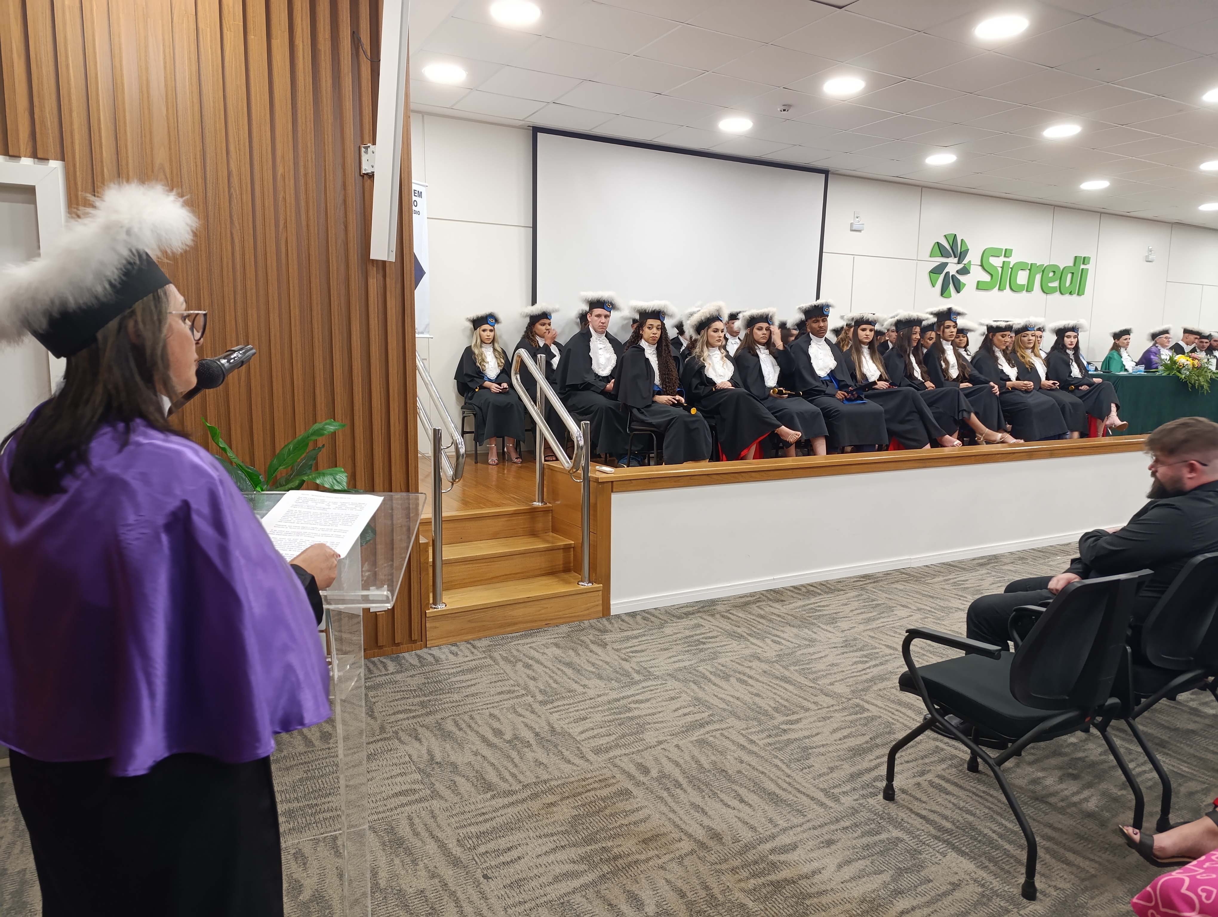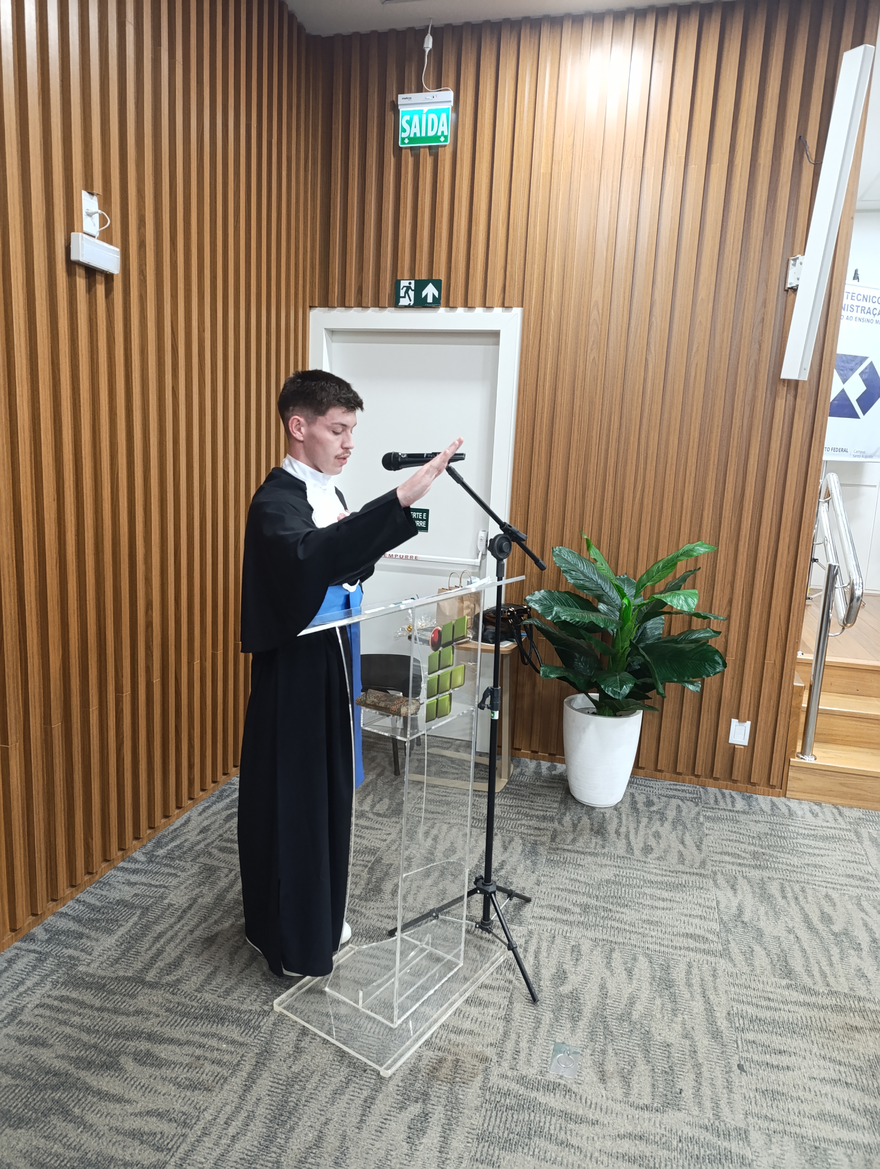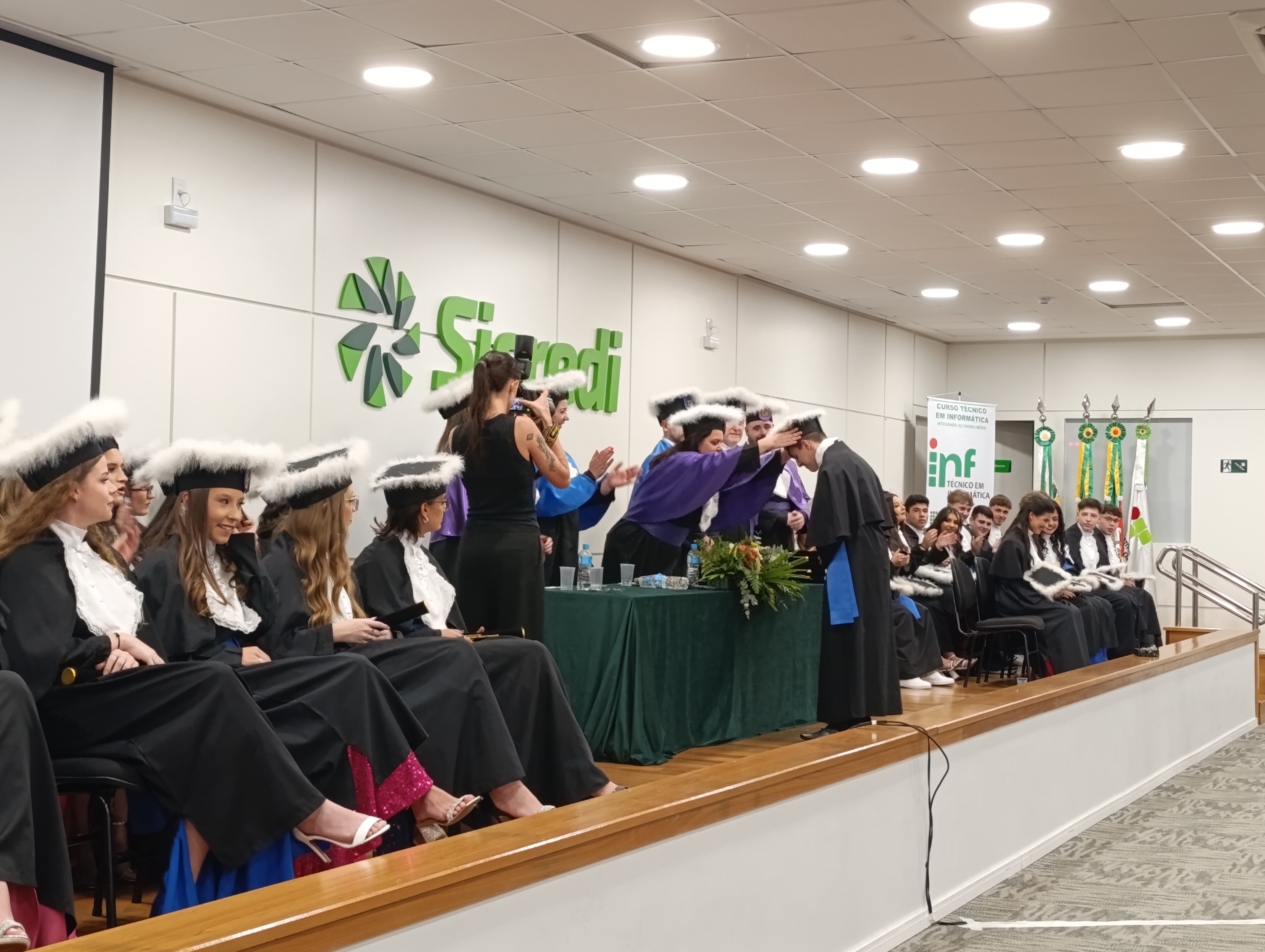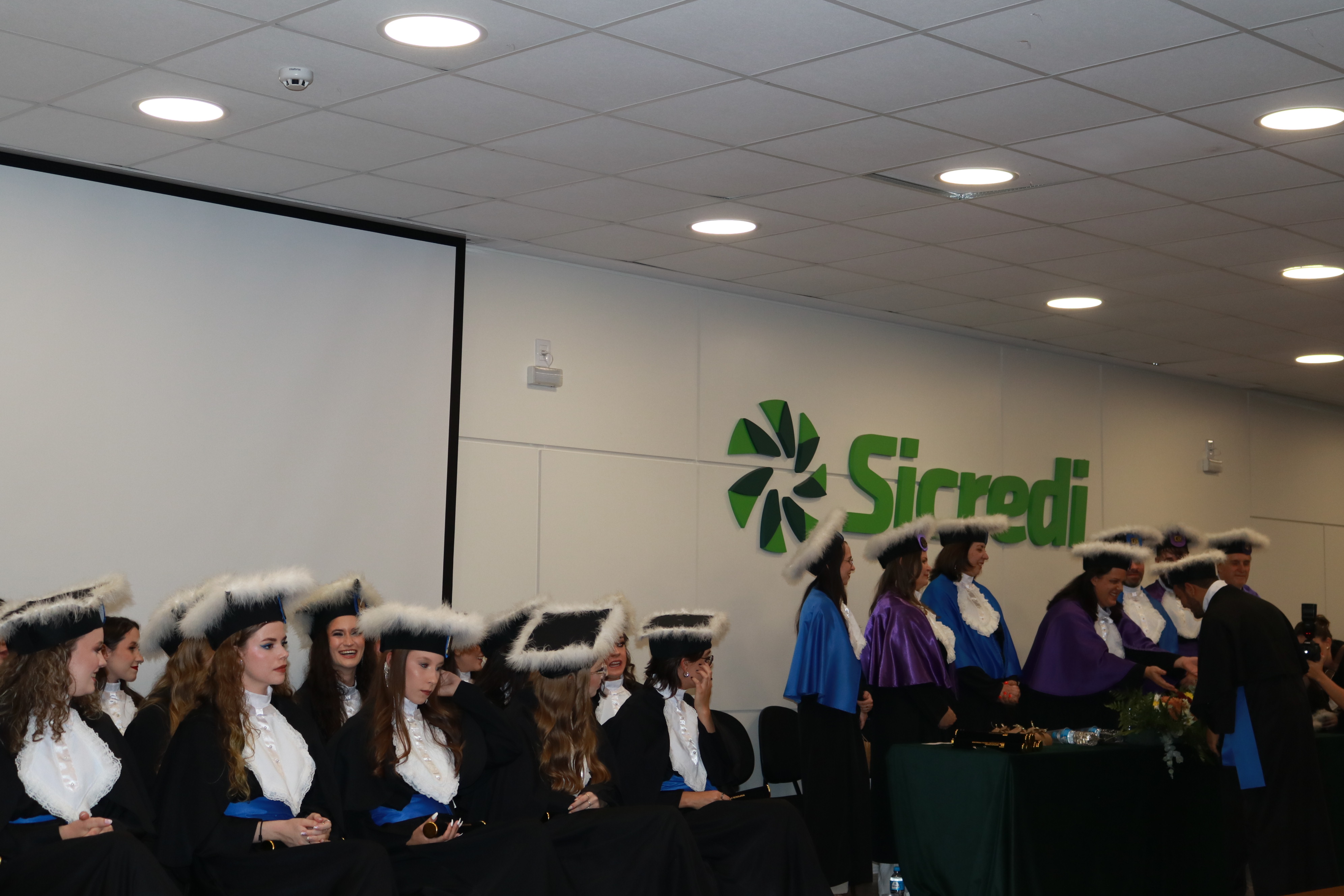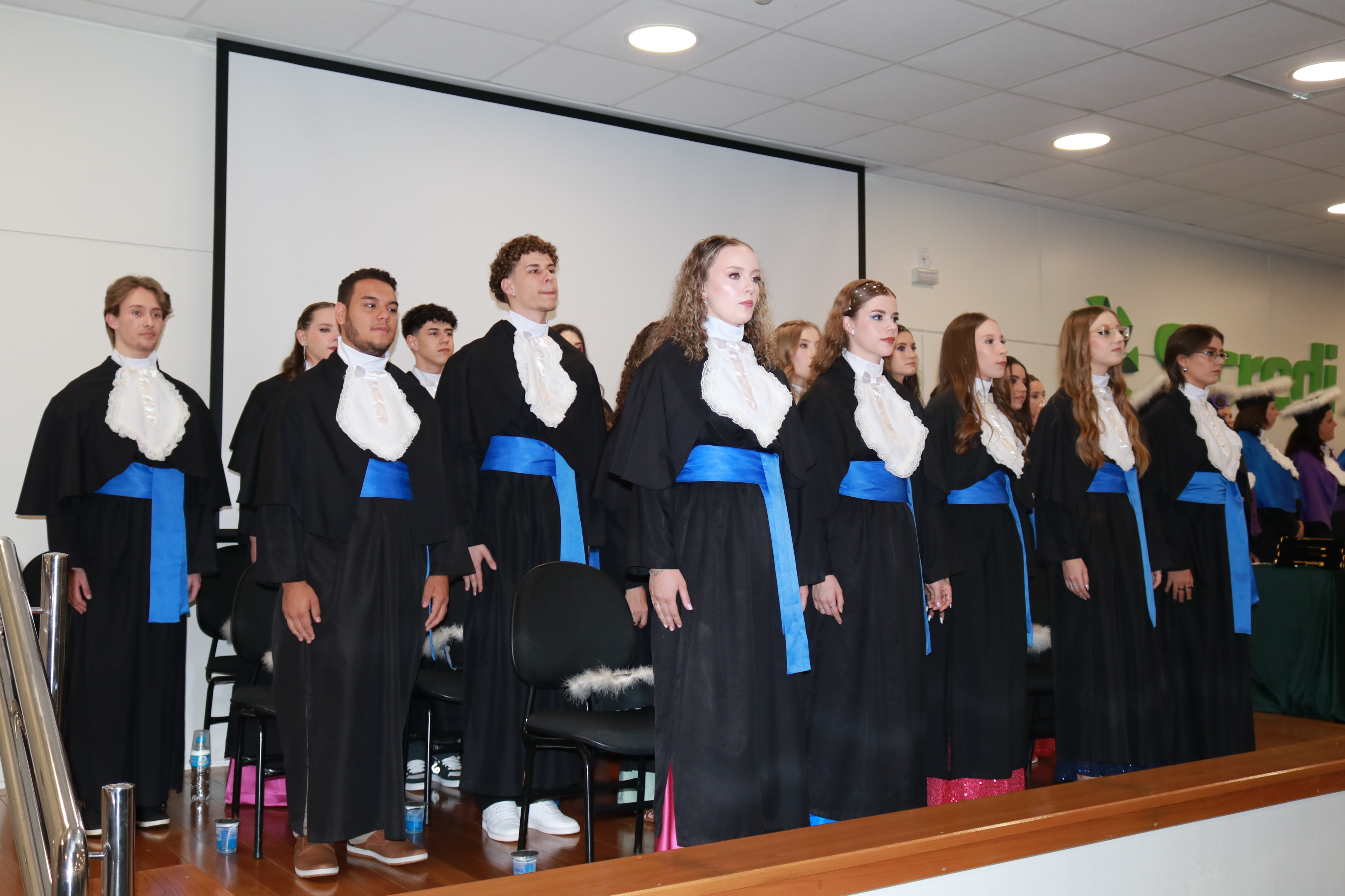 No dia 31, às 19h, foram certificados 44 concluintes, sendo 21 do Técnico em Alimentos e 23 de Informática. A solenidade foi presidida pela Diretora Geral substituta, Téoura Benetti, e contou com a presença da Coordenadora do curso Técnico em Alimentos integrado ao ensino médio, Melissa dos Santos Oliveira; da Paraninfa da 14ª turma, Giovana Kafer e da Patronesse, Débora Piovesan Moraes; do Coordenador do Curso Técnico em Informática integrado ao ensino médio, Paulo Henrique Oliveira; do Paraninfo da 14ª Turma, Dirceu Dirk e do Patrono, Uianes Biondo, que também representou a SME e o poder executivo, bem como osprofessores homenageados, servidores e familiares dos concluintes.