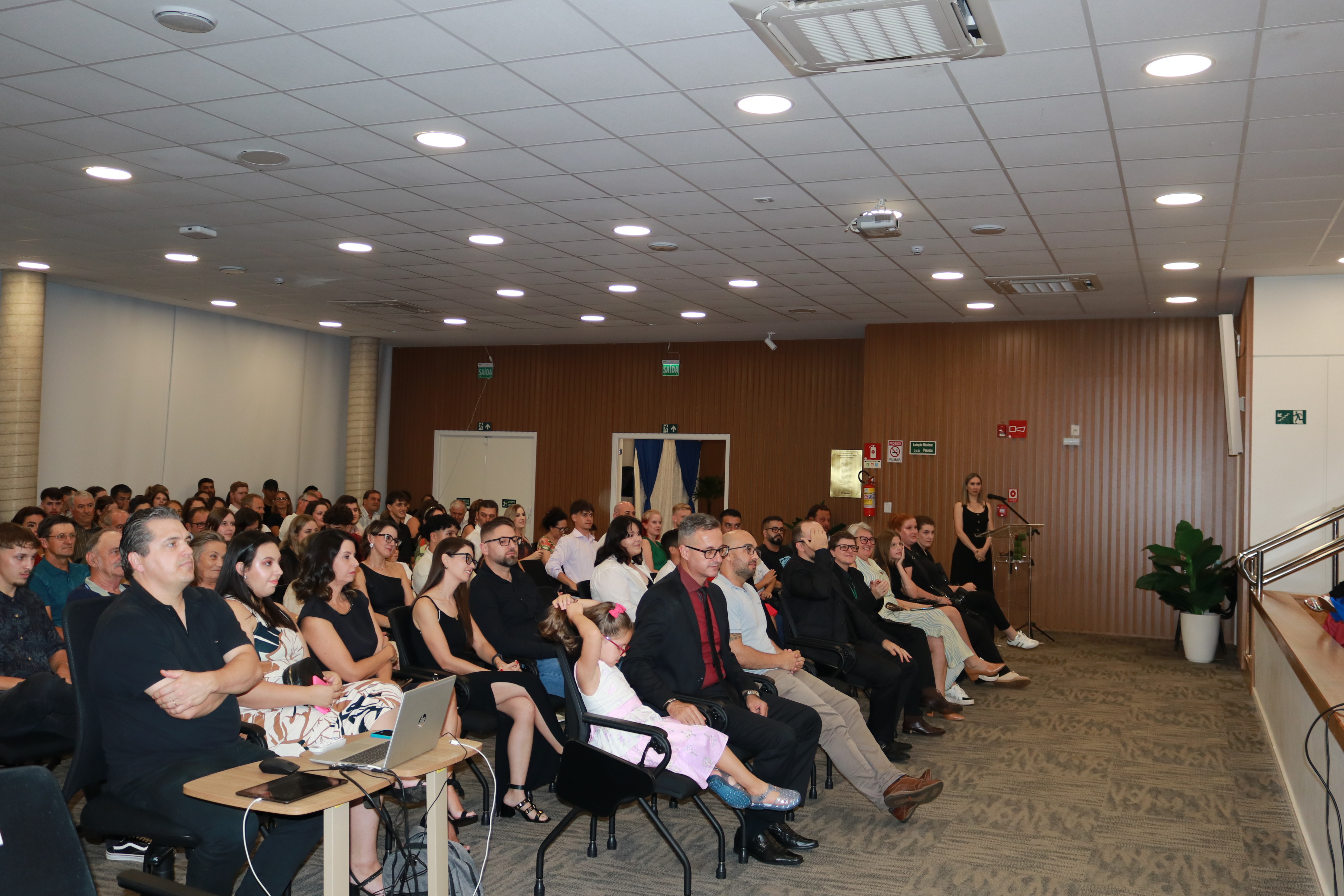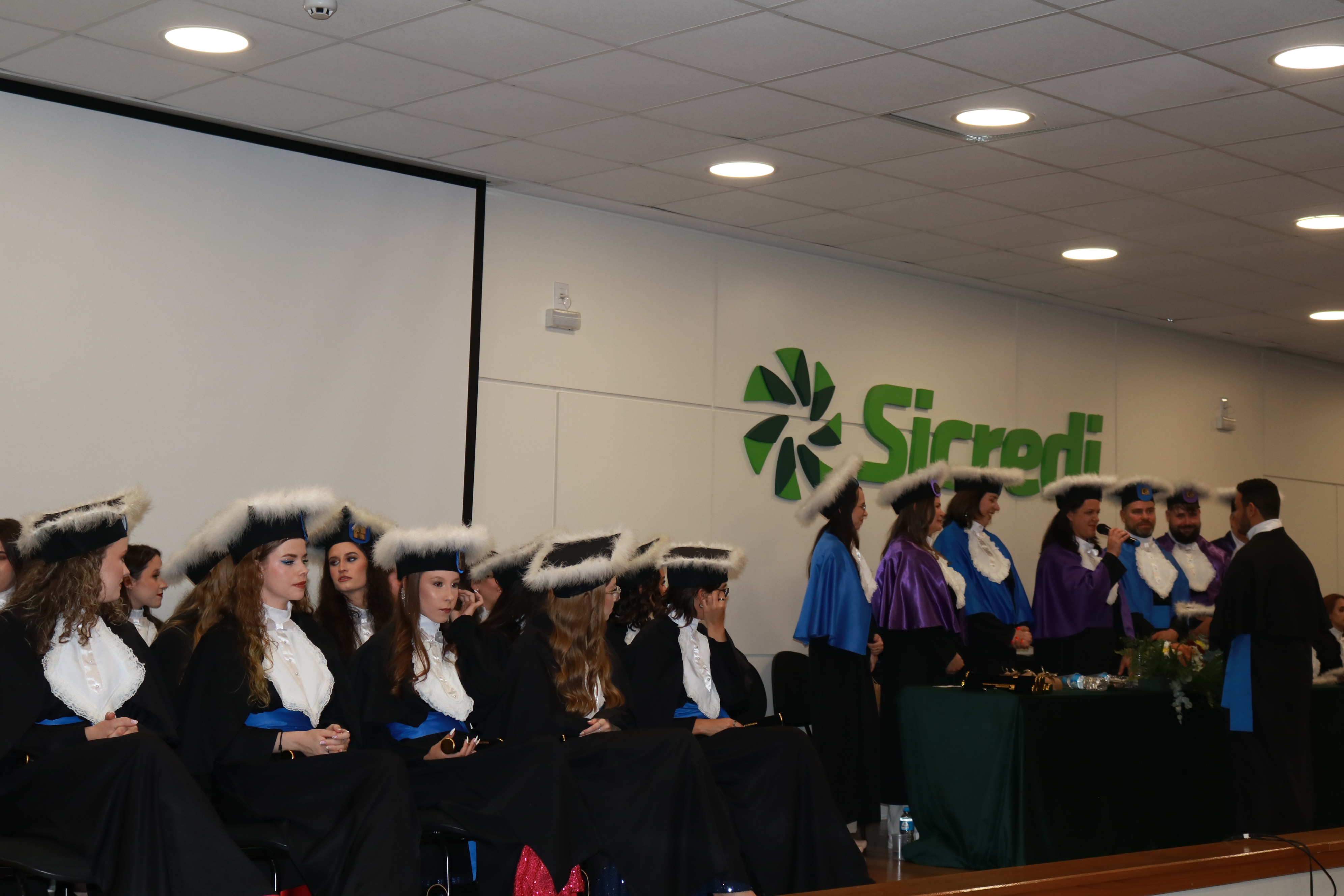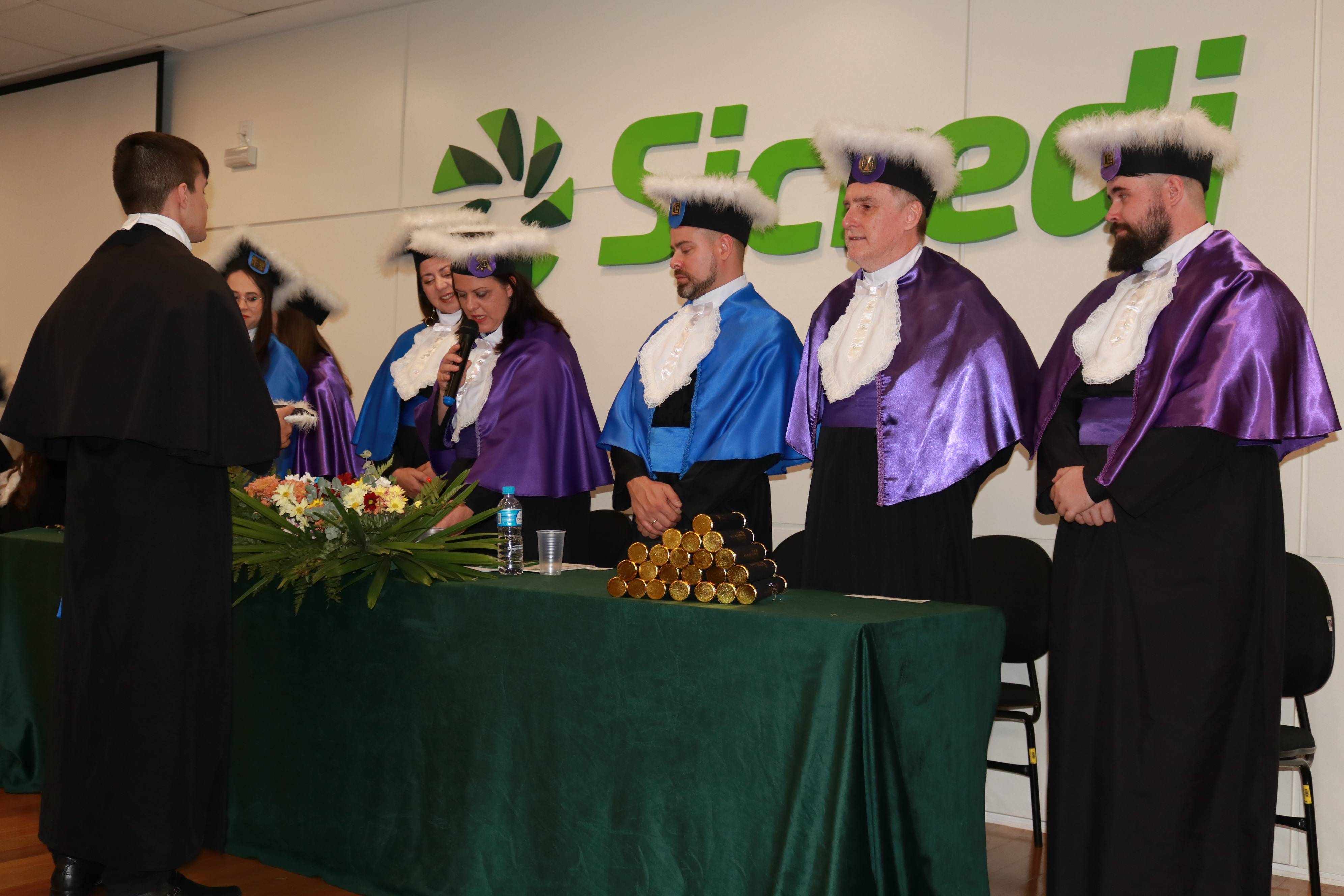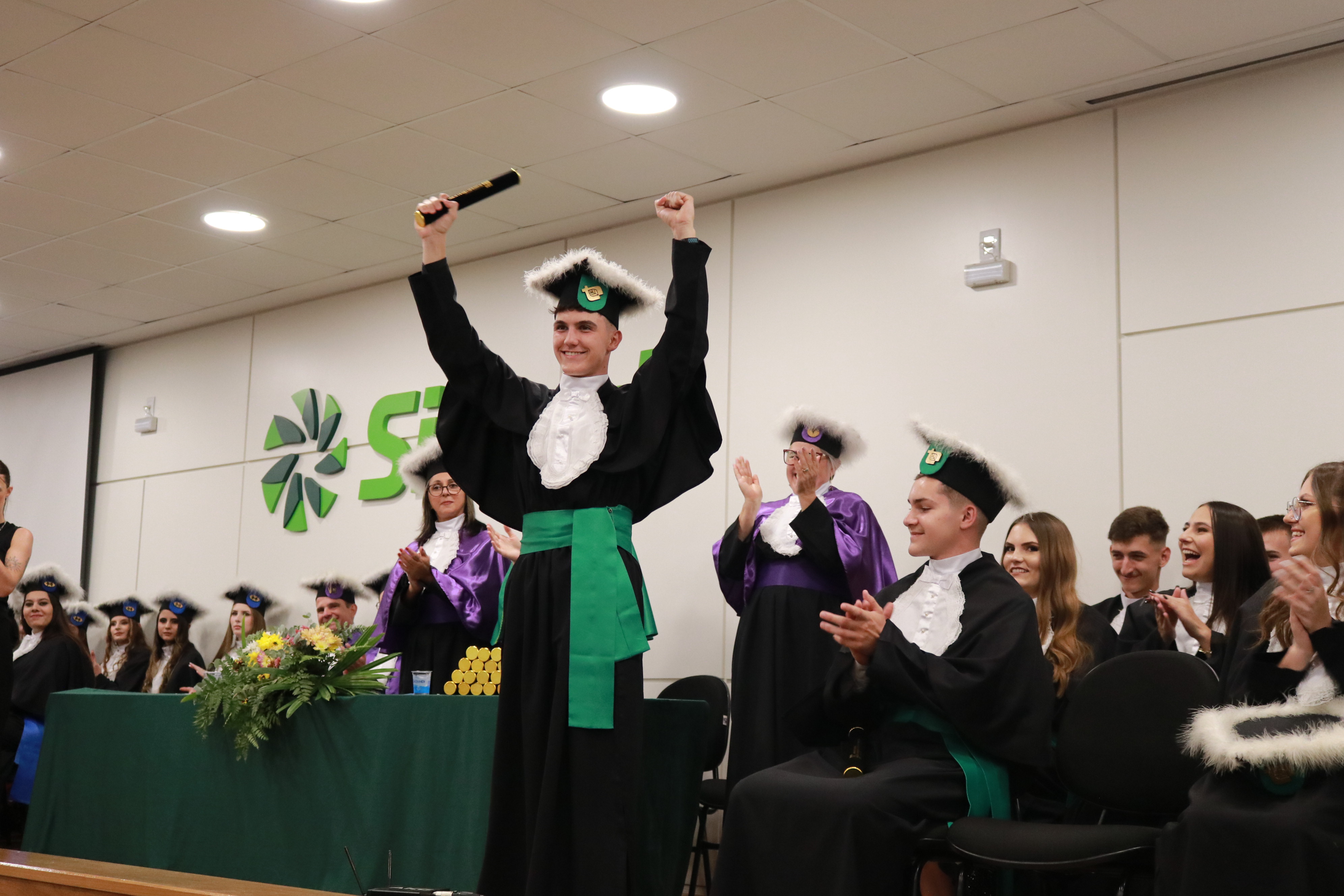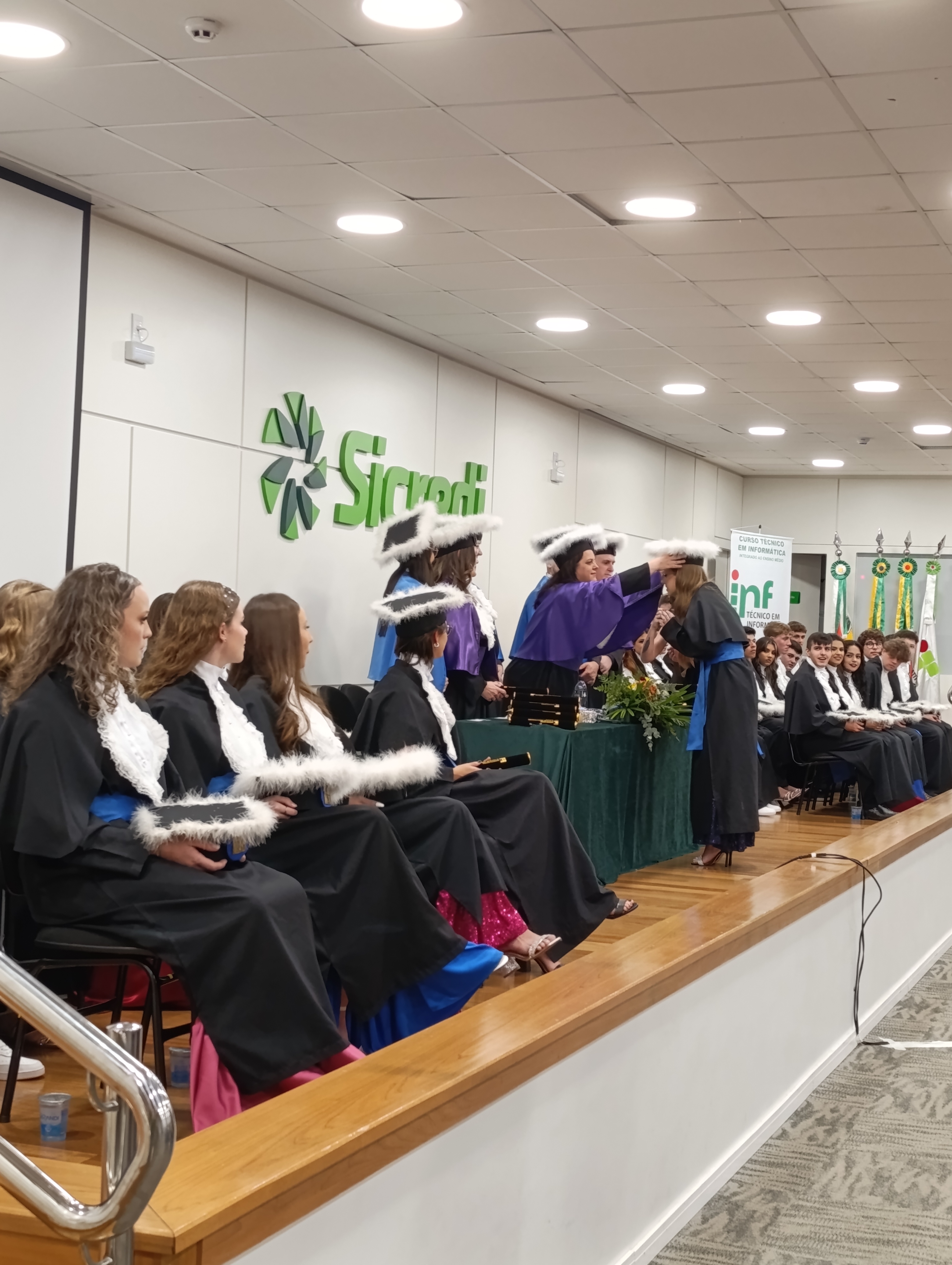 No dia 31, às 19h, foram certificados 44 concluintes, sendo 21 do Técnico em Alimentos e 23 de Informática. A solenidade foi presidida pela Diretora Geral substituta, Téoura Benetti, e contou com a presença da Coordenadora do curso Técnico em Alimentos integrado ao ensino médio, Melissa dos Santos Oliveira; da Paraninfa da 14ª turma, Giovana Kafer e da Patronesse, Débora Piovesan Moraes; do Coordenador do Curso Técnico em Informática integrado ao ensino médio, Paulo Henrique Oliveira; do Paraninfo da 14ª Turma, Dirceu Dirk e do Patrono, Uianes Biondo, que também representou a SME e o poder executivo, bem como osprofessores homenageados, servidores e familiares dos concluintes.