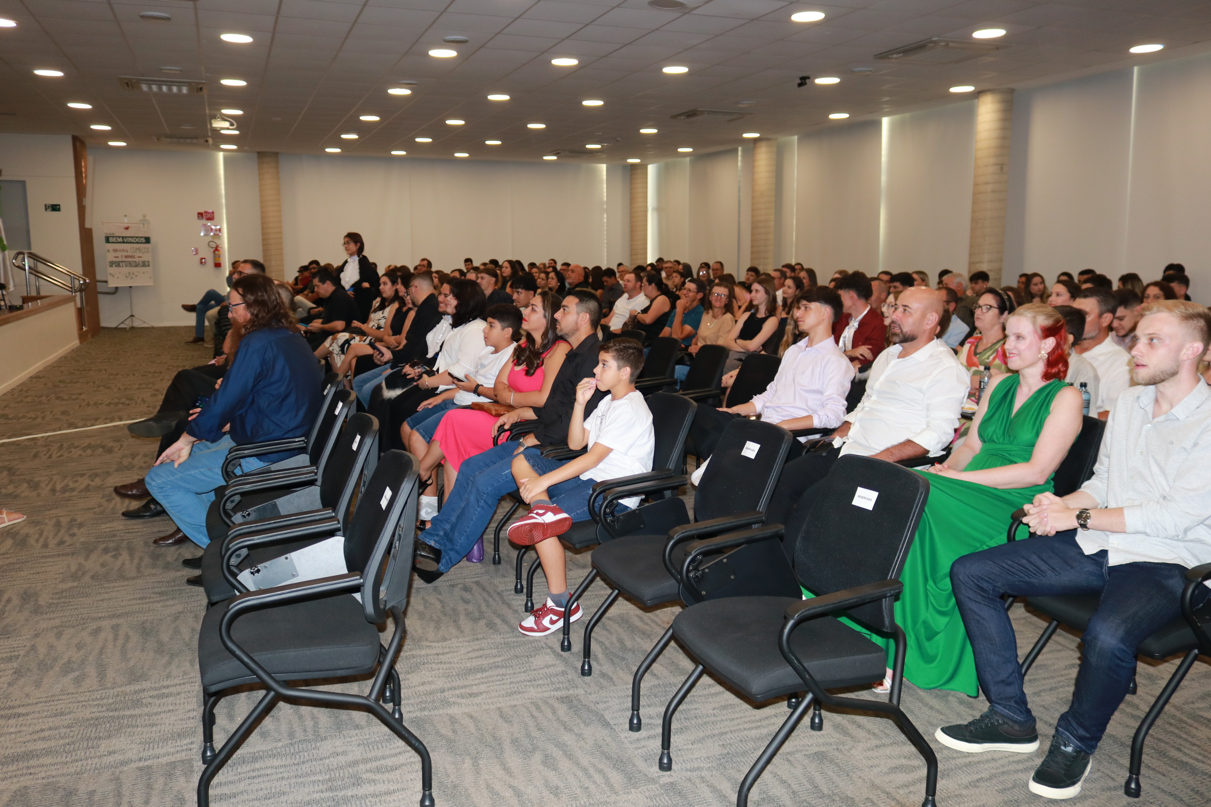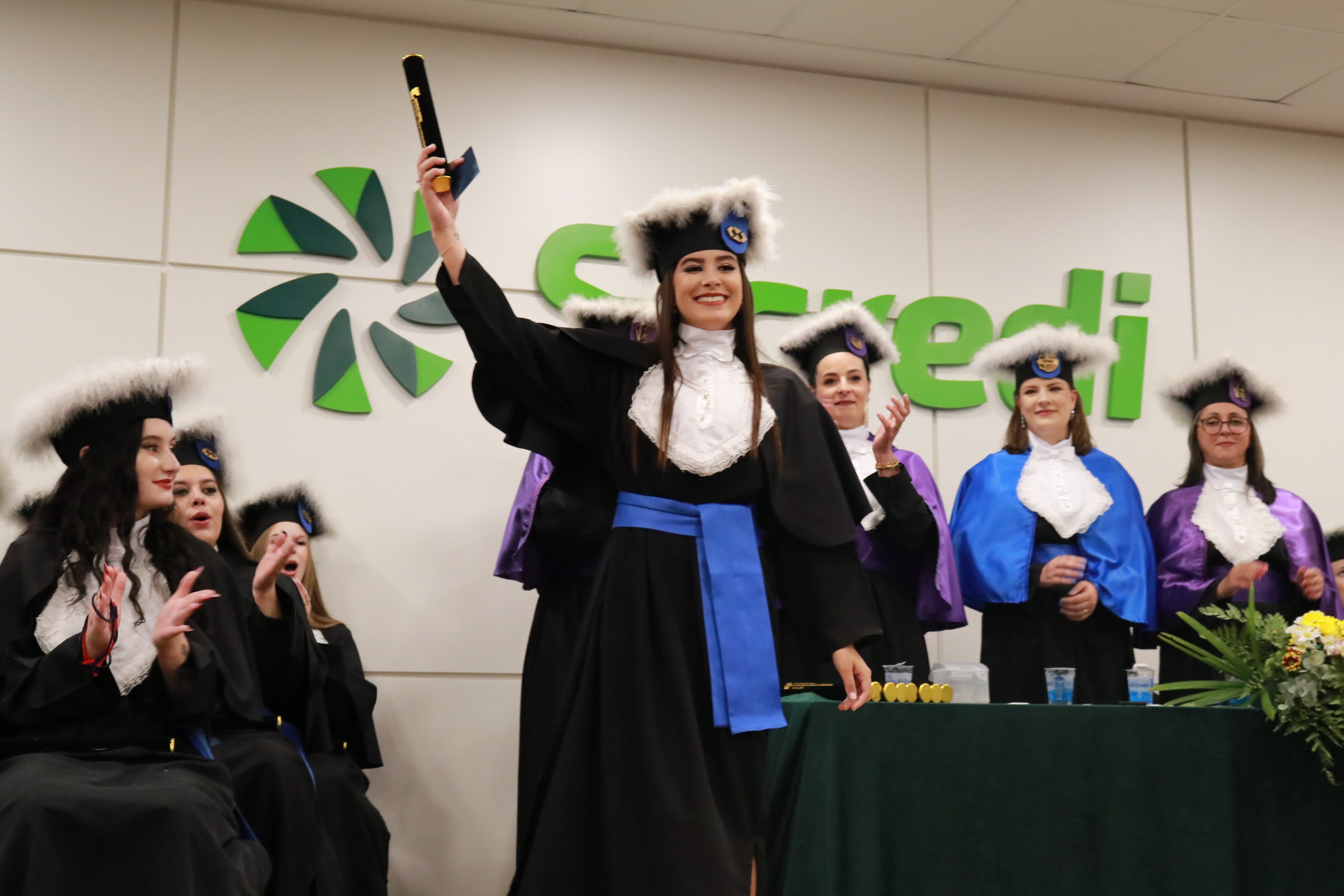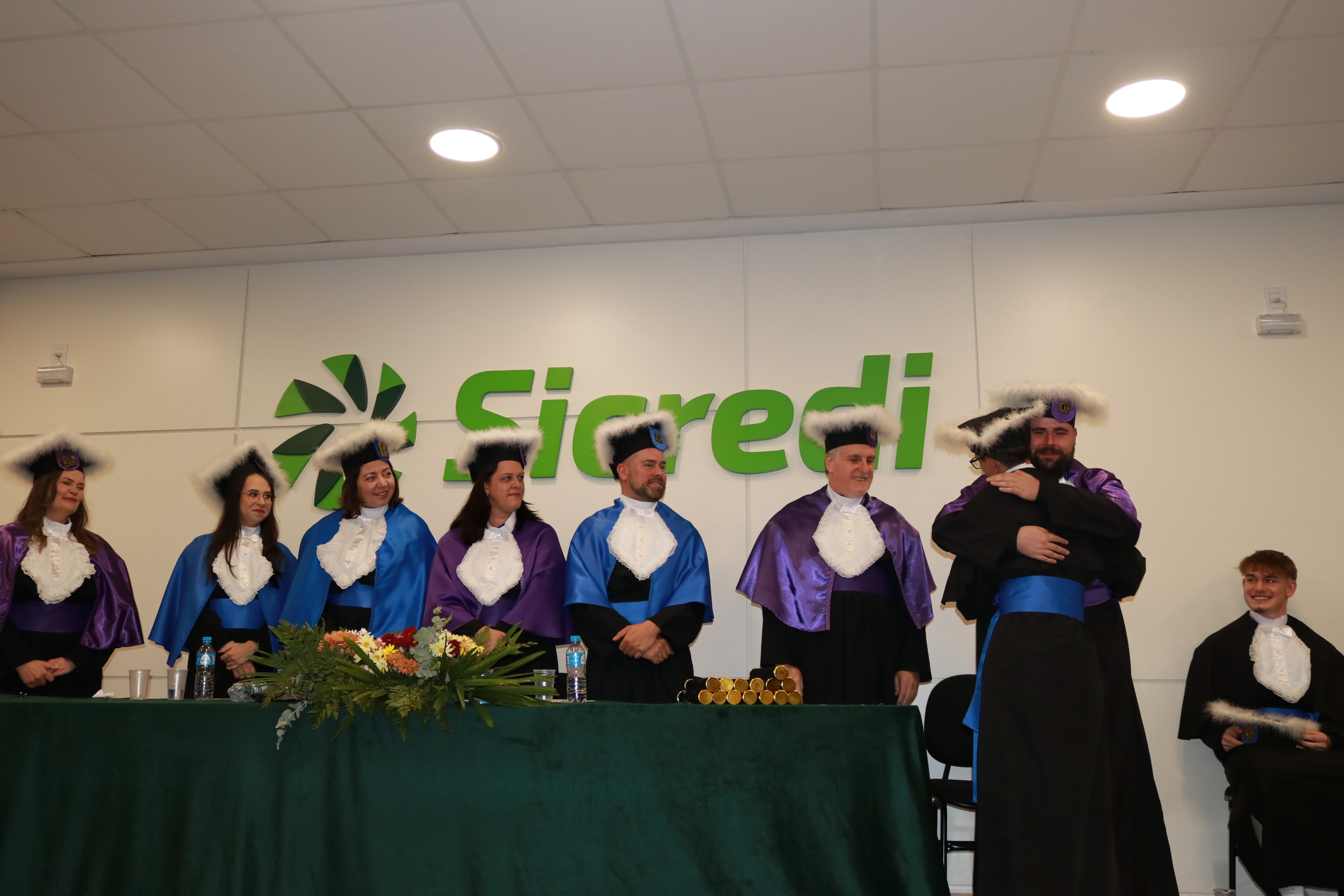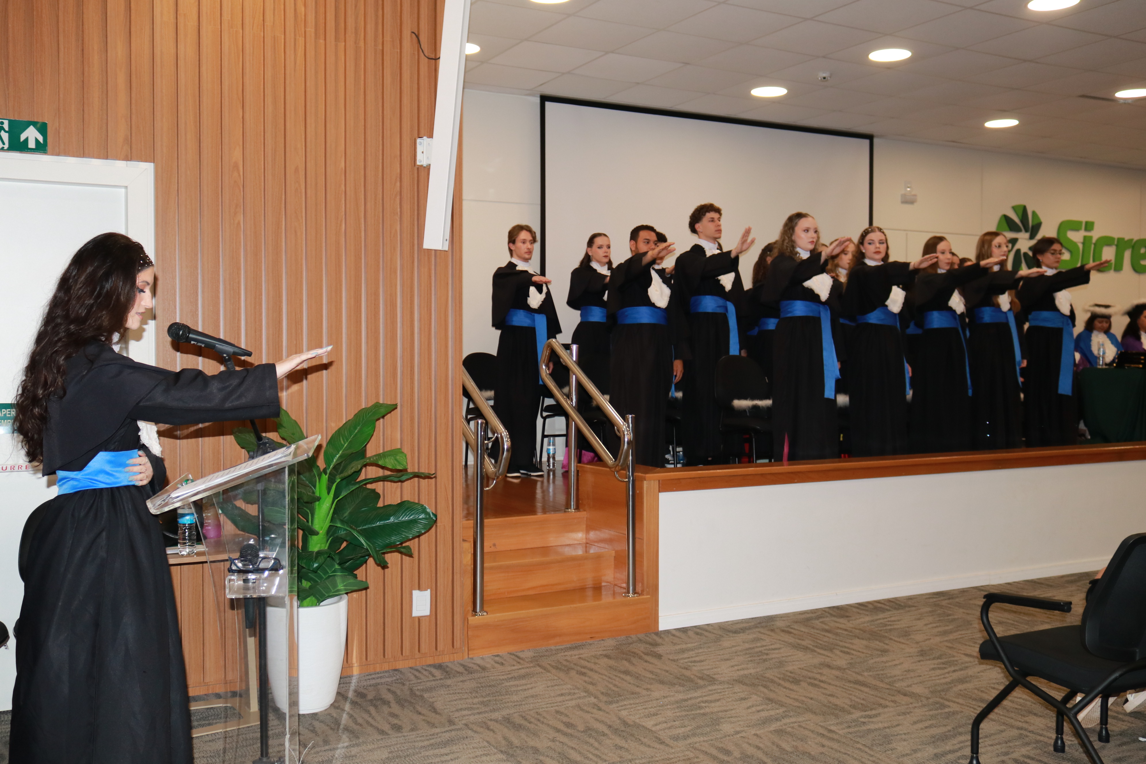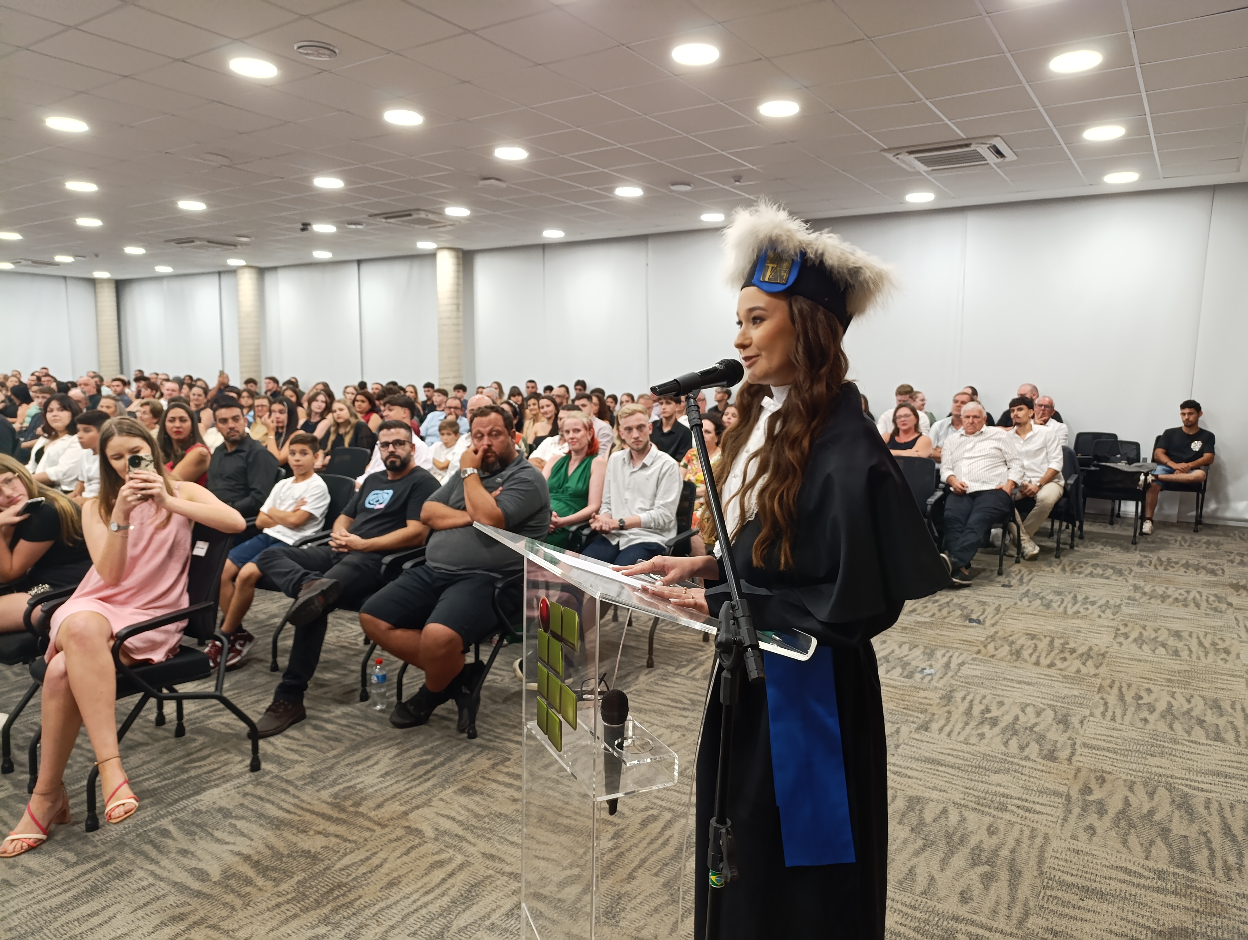 No dia 31, às 19h, foram certificados 44 concluintes, sendo 21 do Técnico em Alimentos e 23 de Informática. A solenidade foi presidida pela Diretora Geral substituta, Téoura Benetti, e contou com a presença da Coordenadora do curso Técnico em Alimentos integrado ao ensino médio, Melissa dos Santos Oliveira; da Paraninfa da 14ª turma, Giovana Kafer e da Patronesse, Débora Piovesan Moraes; do Coordenador do Curso Técnico em Informática integrado ao ensino médio, Paulo Henrique Oliveira; do Paraninfo da 14ª Turma, Dirceu Dirk e do Patrono, Uianes Biondo, que também representou a SME e o poder executivo, bem como osprofessores homenageados, servidores e familiares dos concluintes.