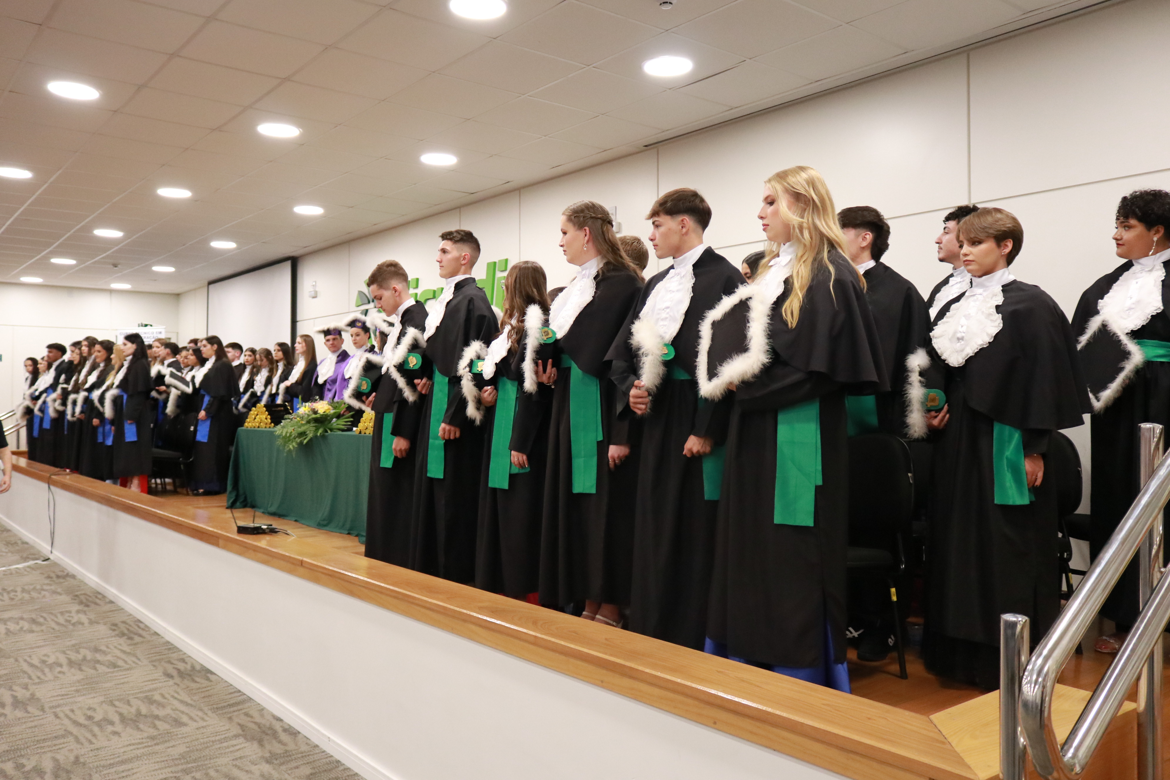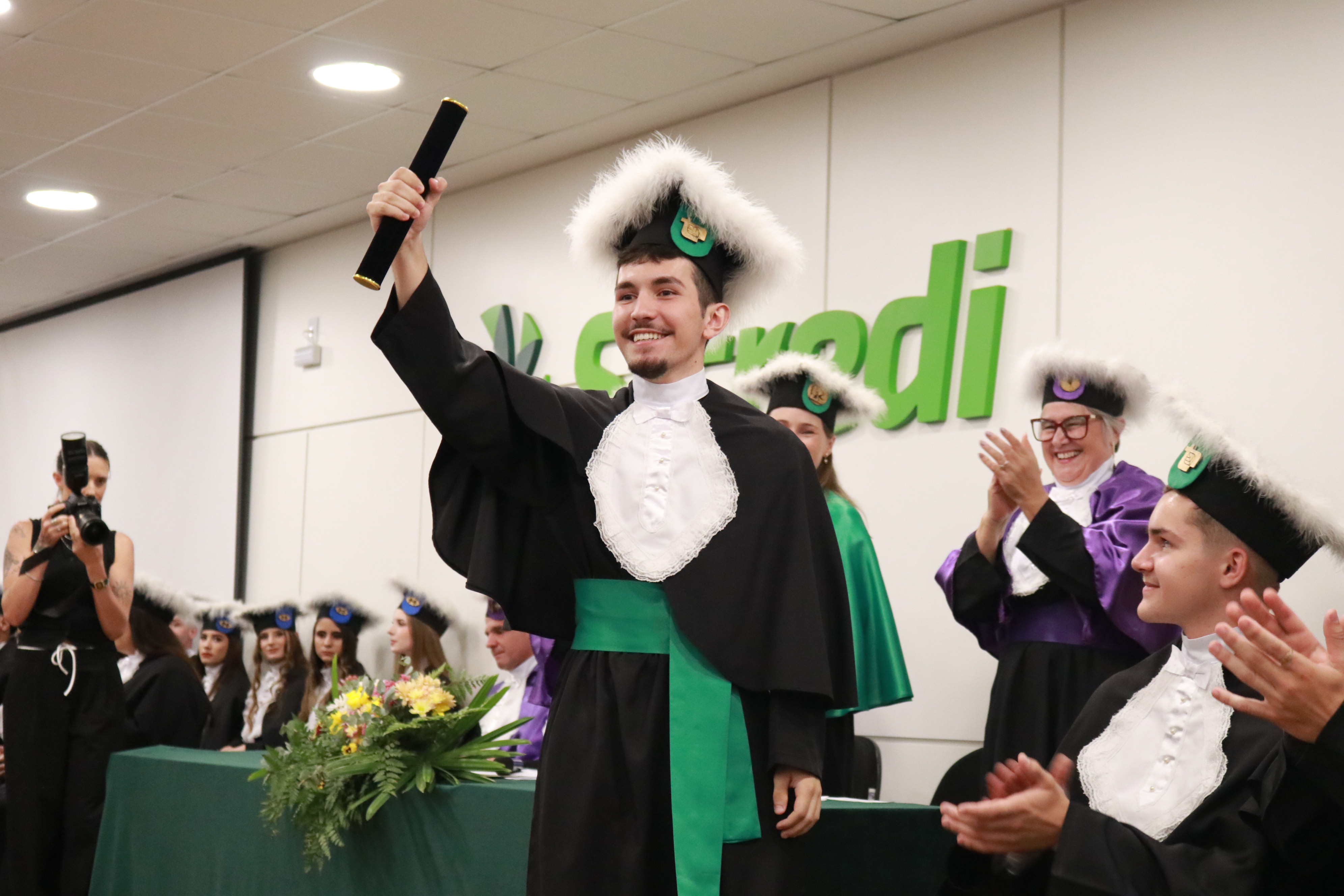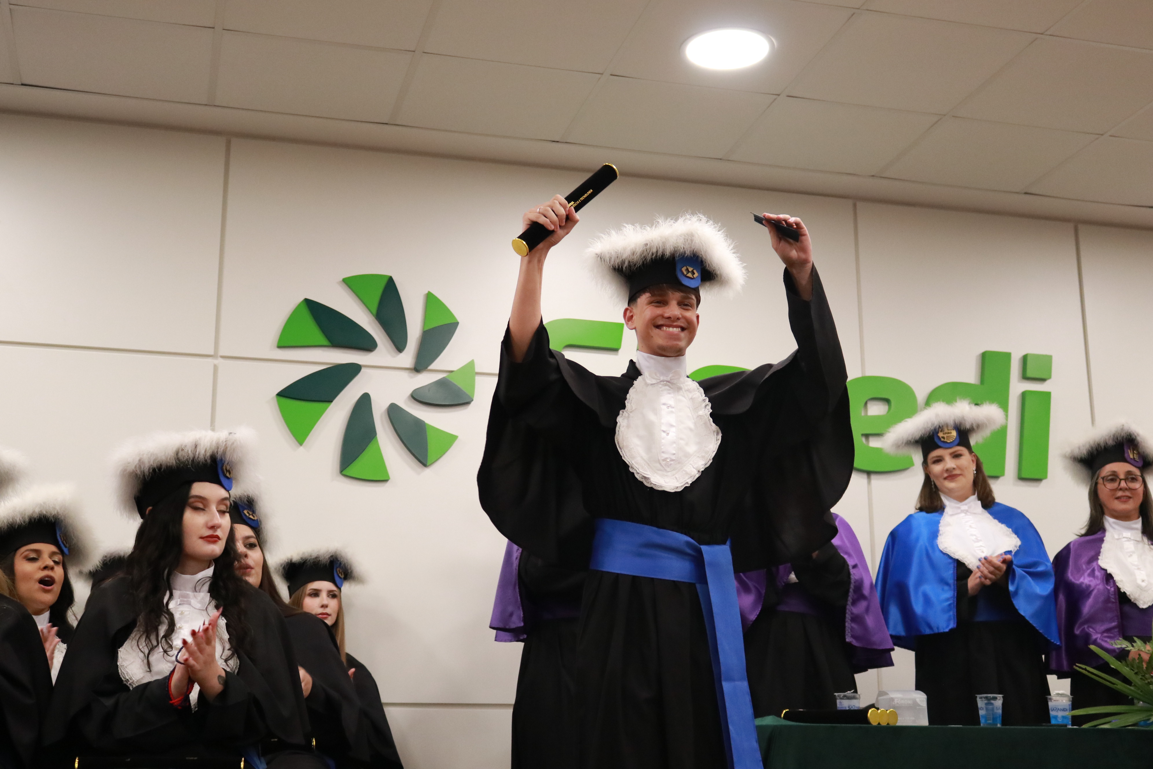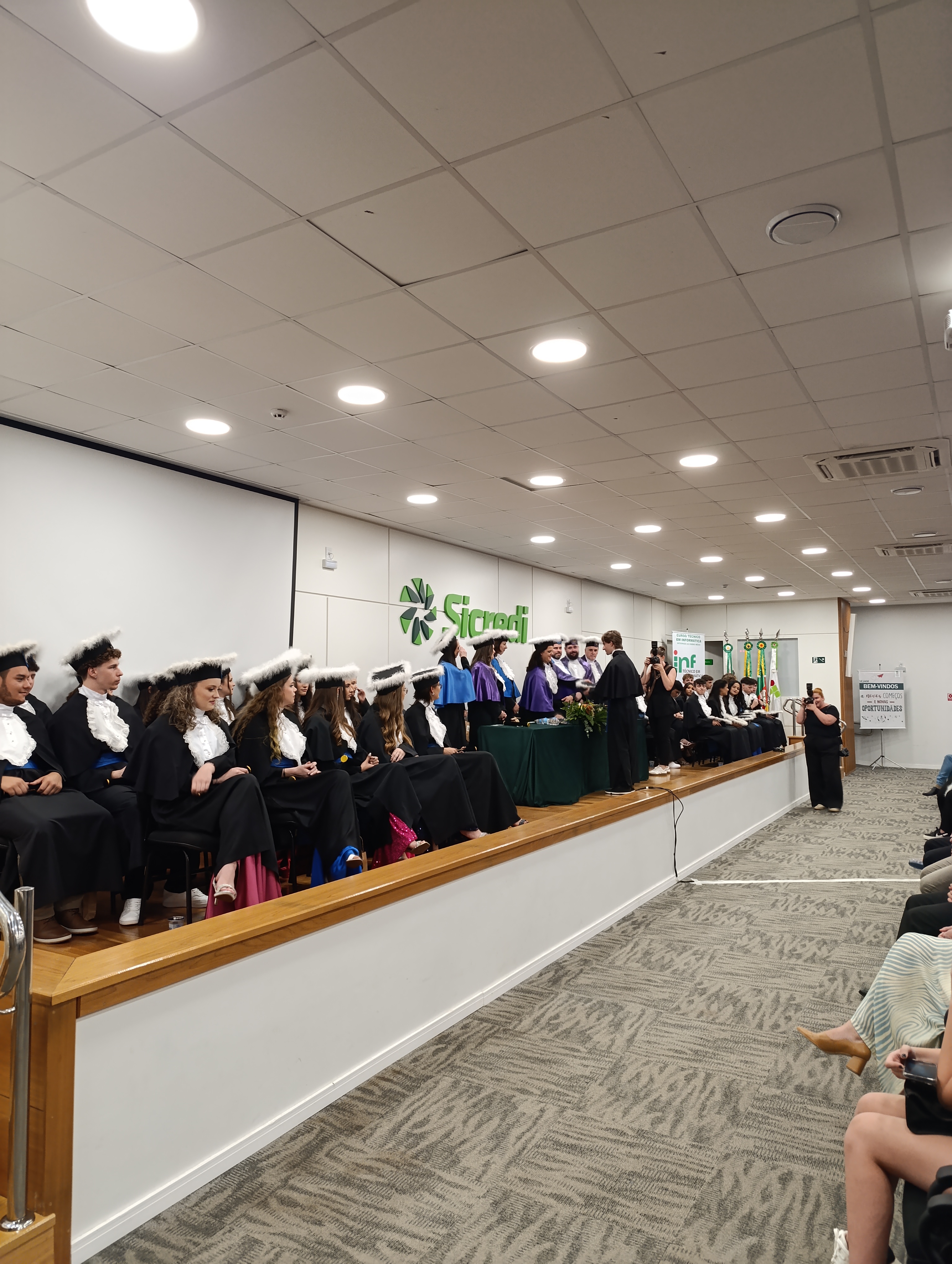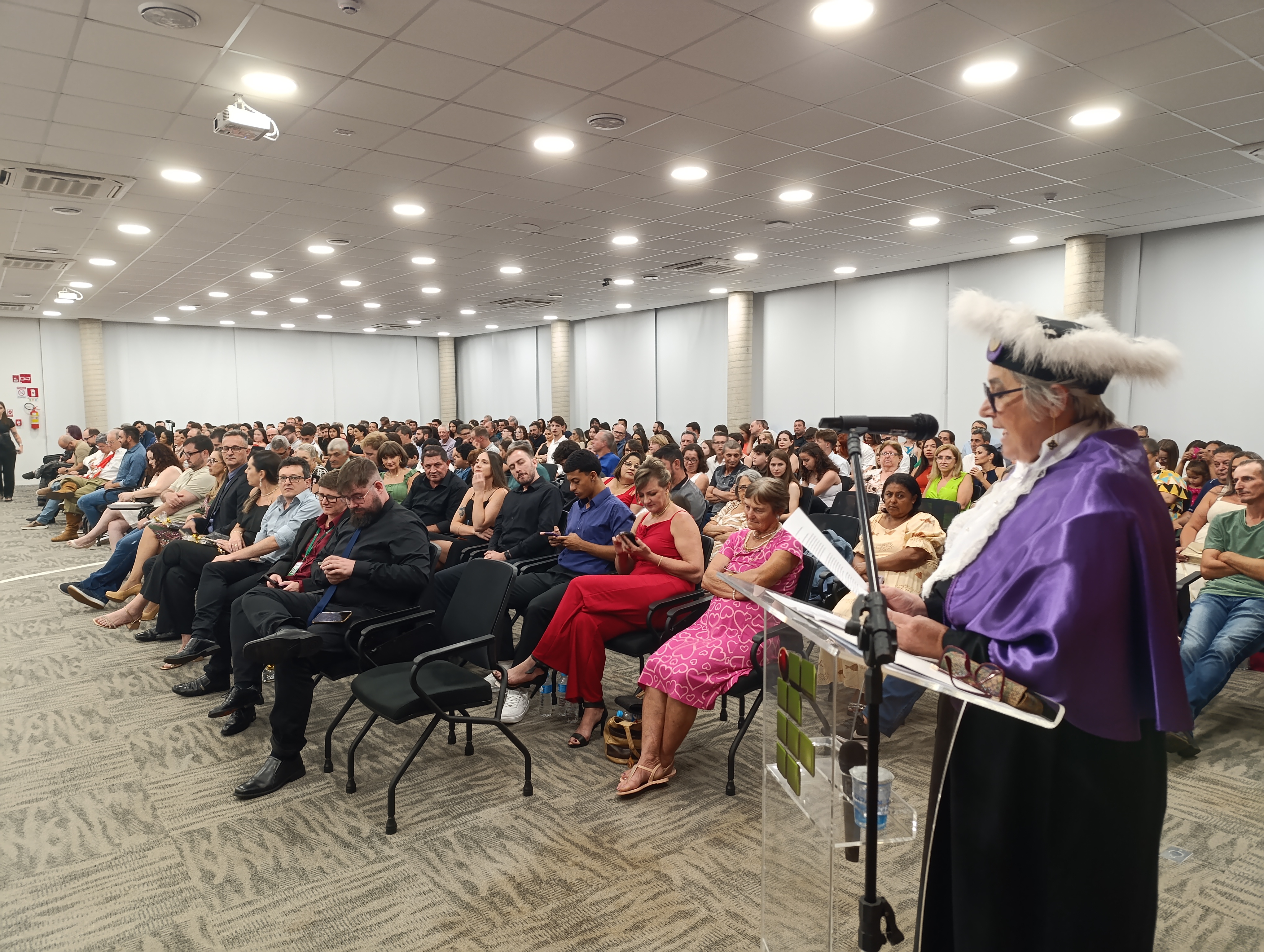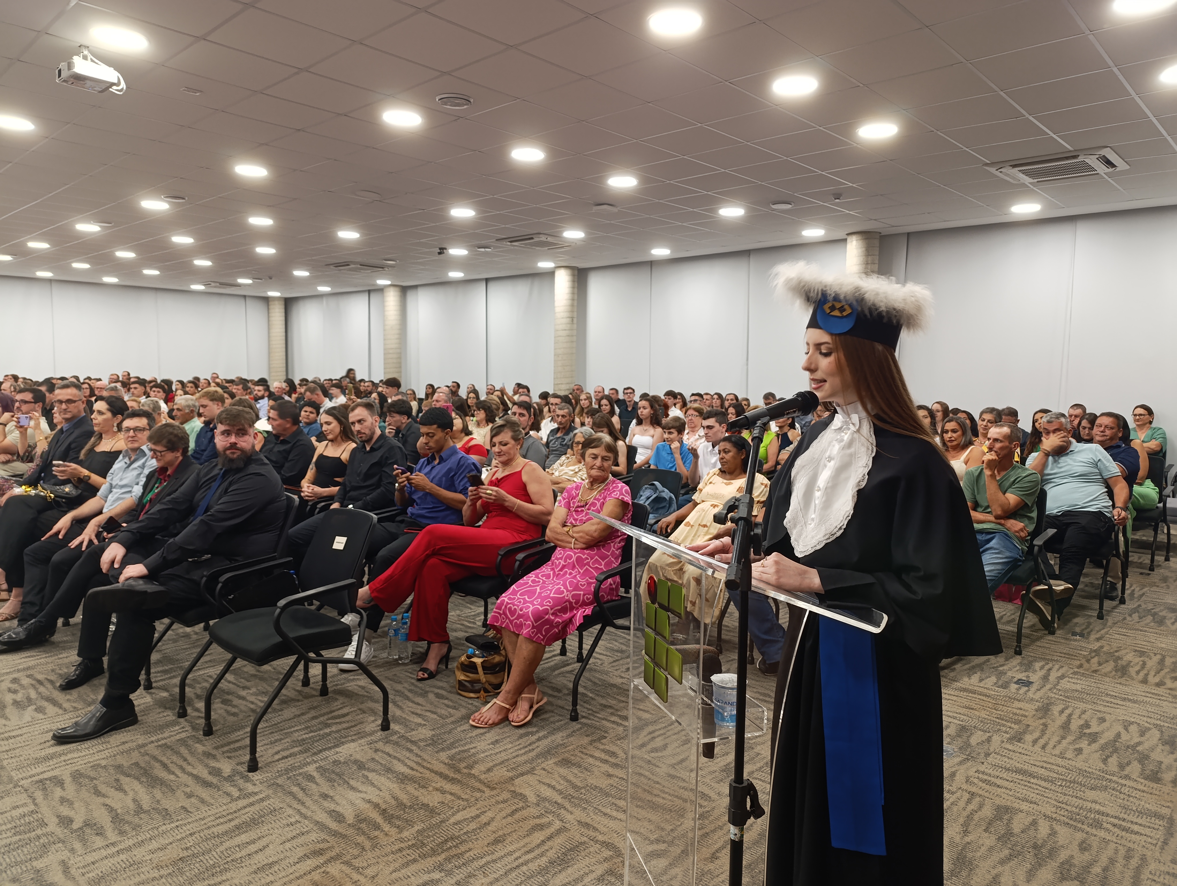 No dia 31, às 19h, foram certificados 44 concluintes, sendo 21 do Técnico em Alimentos e 23 de Informática. A solenidade foi presidida pela Diretora Geral substituta, Téoura Benetti, e contou com a presença da Coordenadora do curso Técnico em Alimentos integrado ao ensino médio, Melissa dos Santos Oliveira; da Paraninfa da 14ª turma, Giovana Kafer e da Patronesse, Débora Piovesan Moraes; do Coordenador do Curso Técnico em Informática integrado ao ensino médio, Paulo Henrique Oliveira; do Paraninfo da 14ª Turma, Dirceu Dirk e do Patrono, Uianes Biondo, que também representou a SME e o poder executivo, bem como osprofessores homenageados, servidores e familiares dos concluintes.