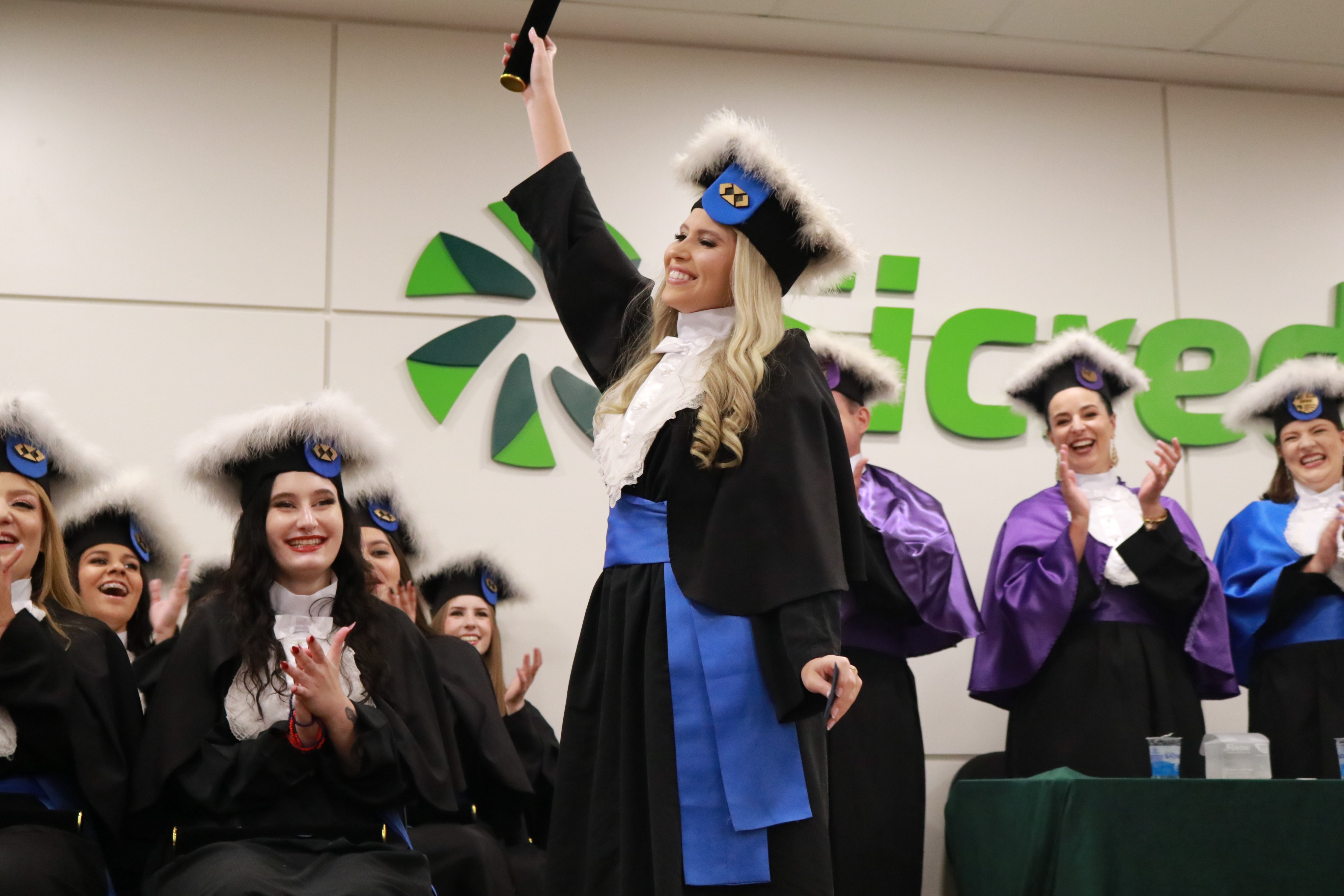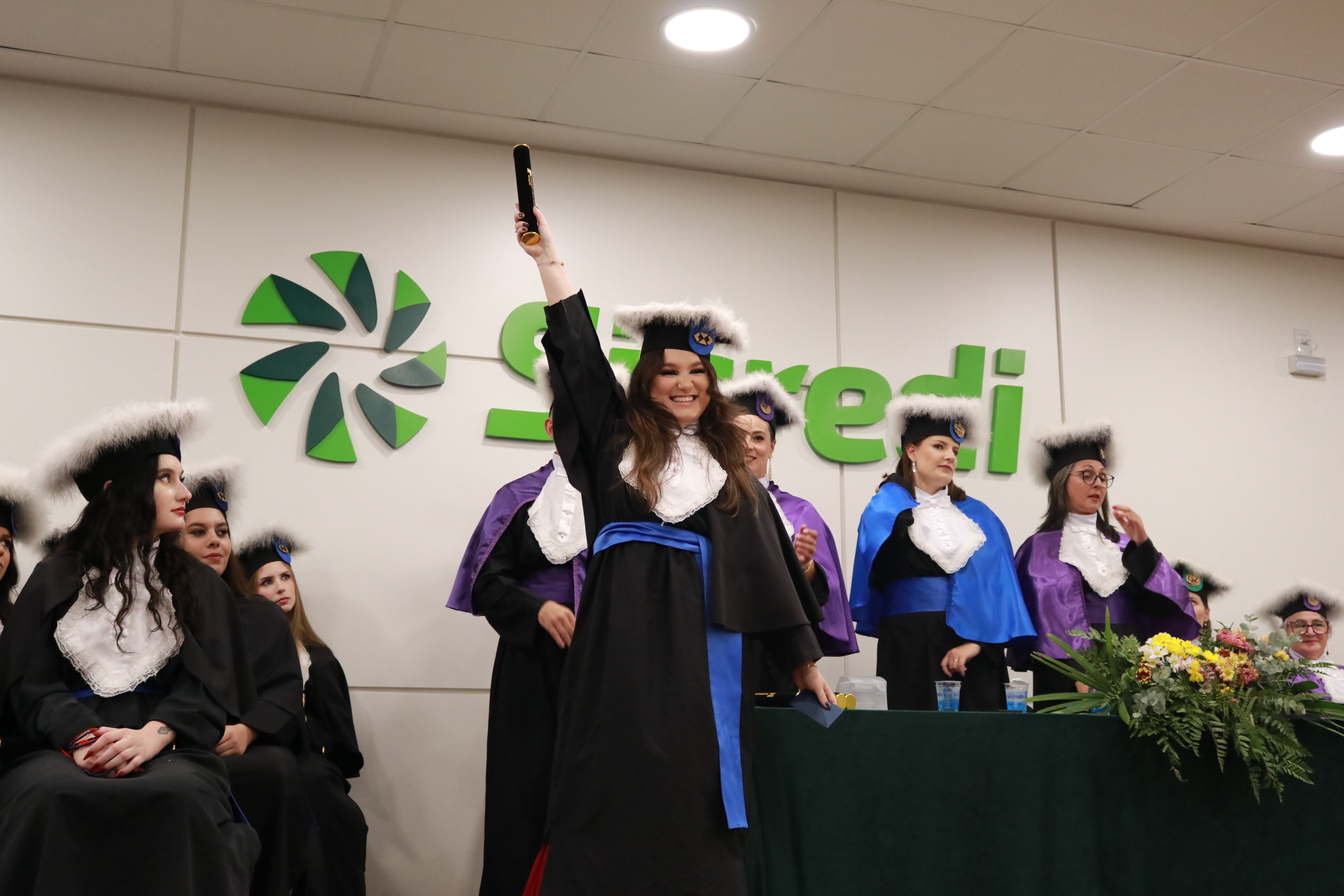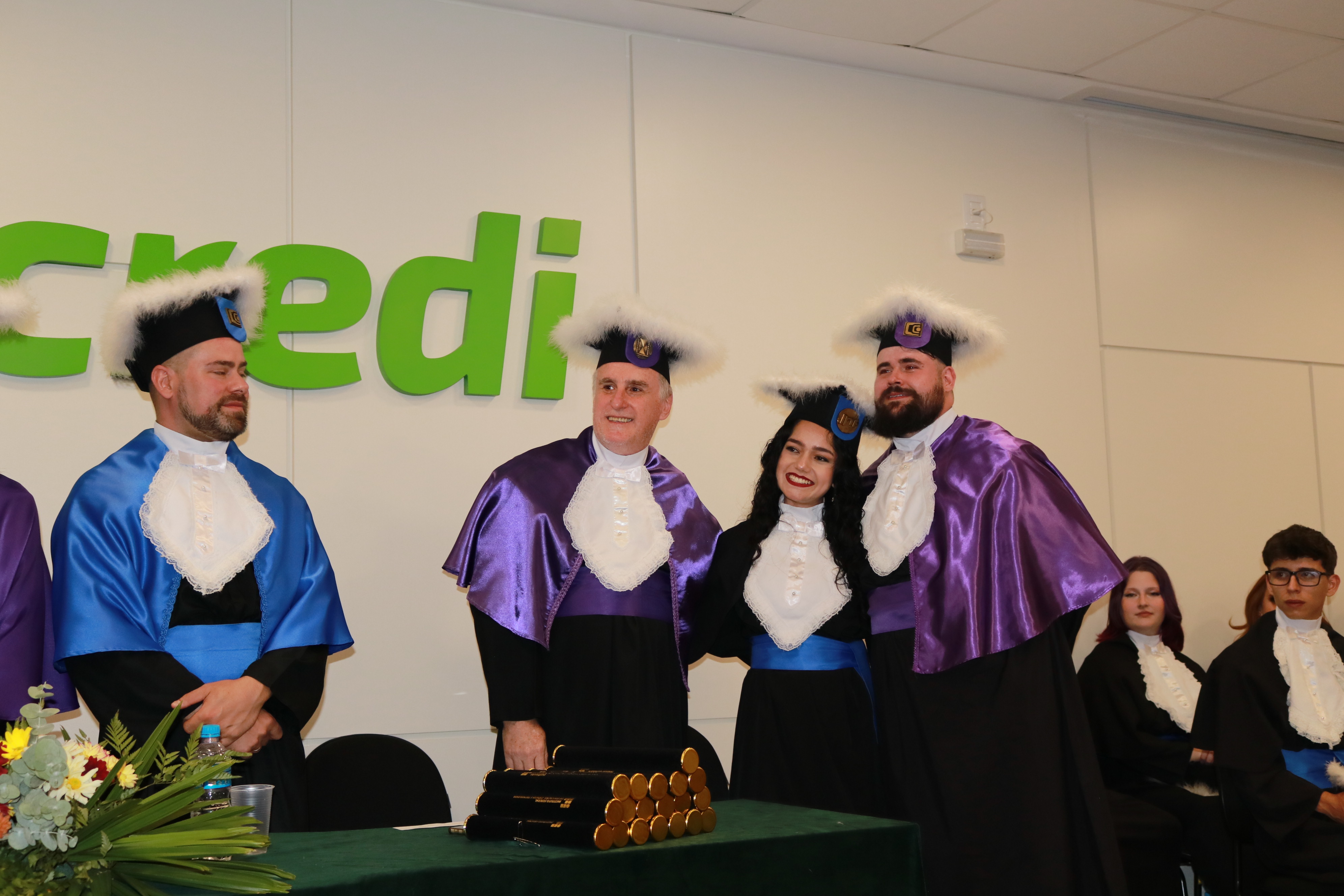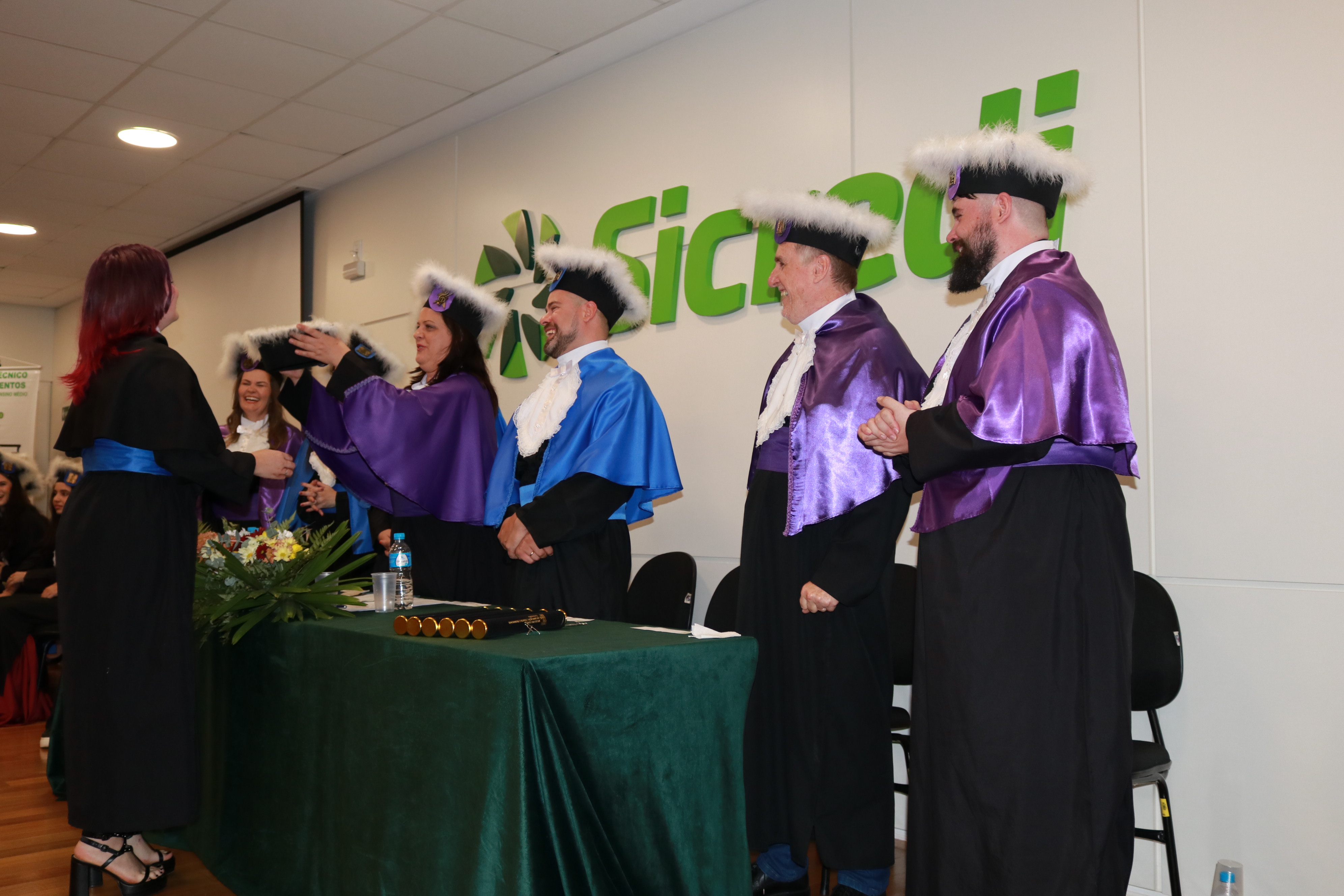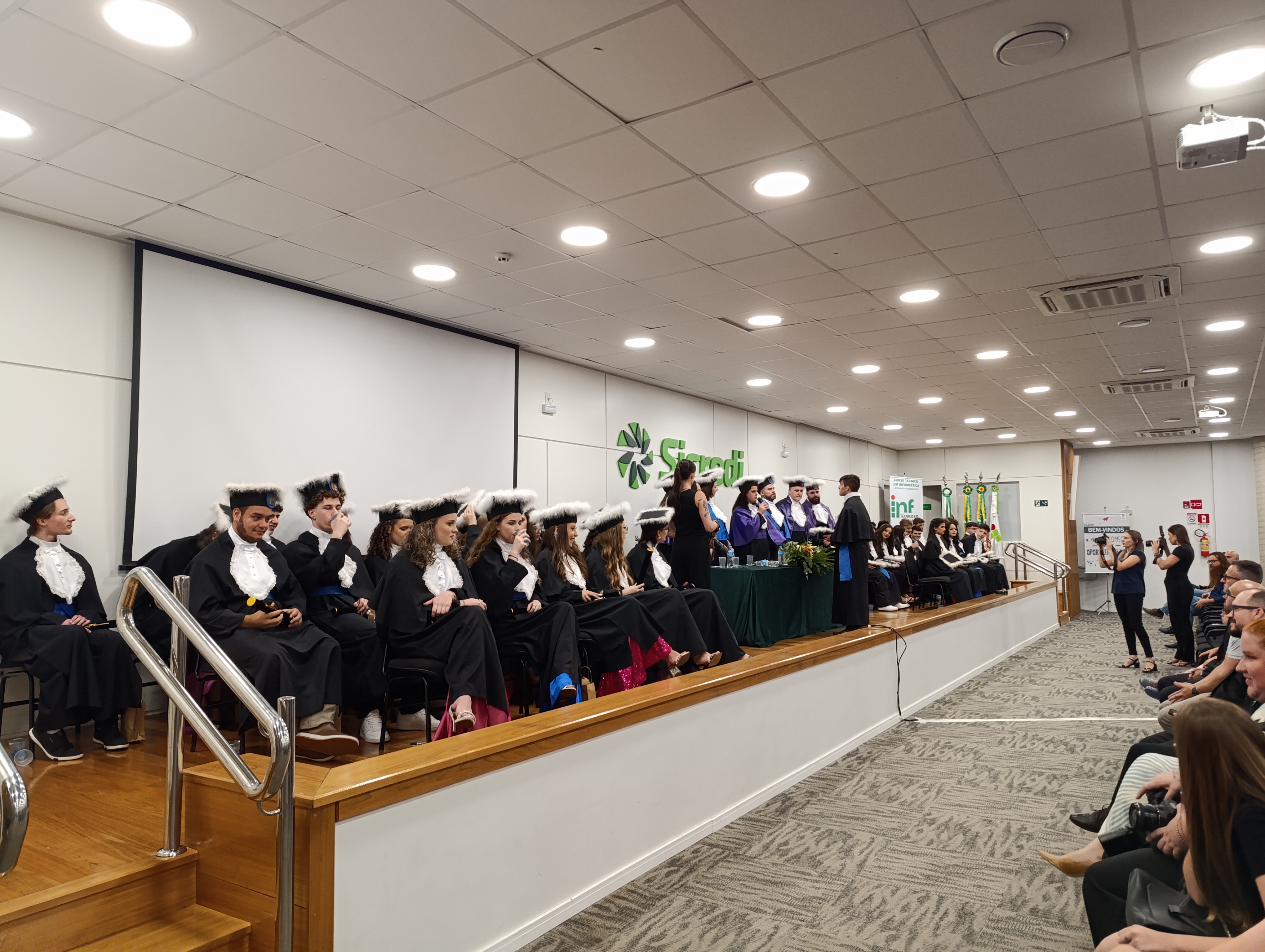 No dia 31, às 19h, foram certificados 44 concluintes, sendo 21 do Técnico em Alimentos e 23 de Informática. A solenidade foi presidida pela Diretora Geral substituta, Téoura Benetti, e contou com a presença da Coordenadora do curso Técnico em Alimentos integrado ao ensino médio, Melissa dos Santos Oliveira; da Paraninfa da 14ª turma, Giovana Kafer e da Patronesse, Débora Piovesan Moraes; do Coordenador do Curso Técnico em Informática integrado ao ensino médio, Paulo Henrique Oliveira; do Paraninfo da 14ª Turma, Dirceu Dirk e do Patrono, Uianes Biondo, que também representou a SME e o poder executivo, bem como osprofessores homenageados, servidores e familiares dos concluintes.