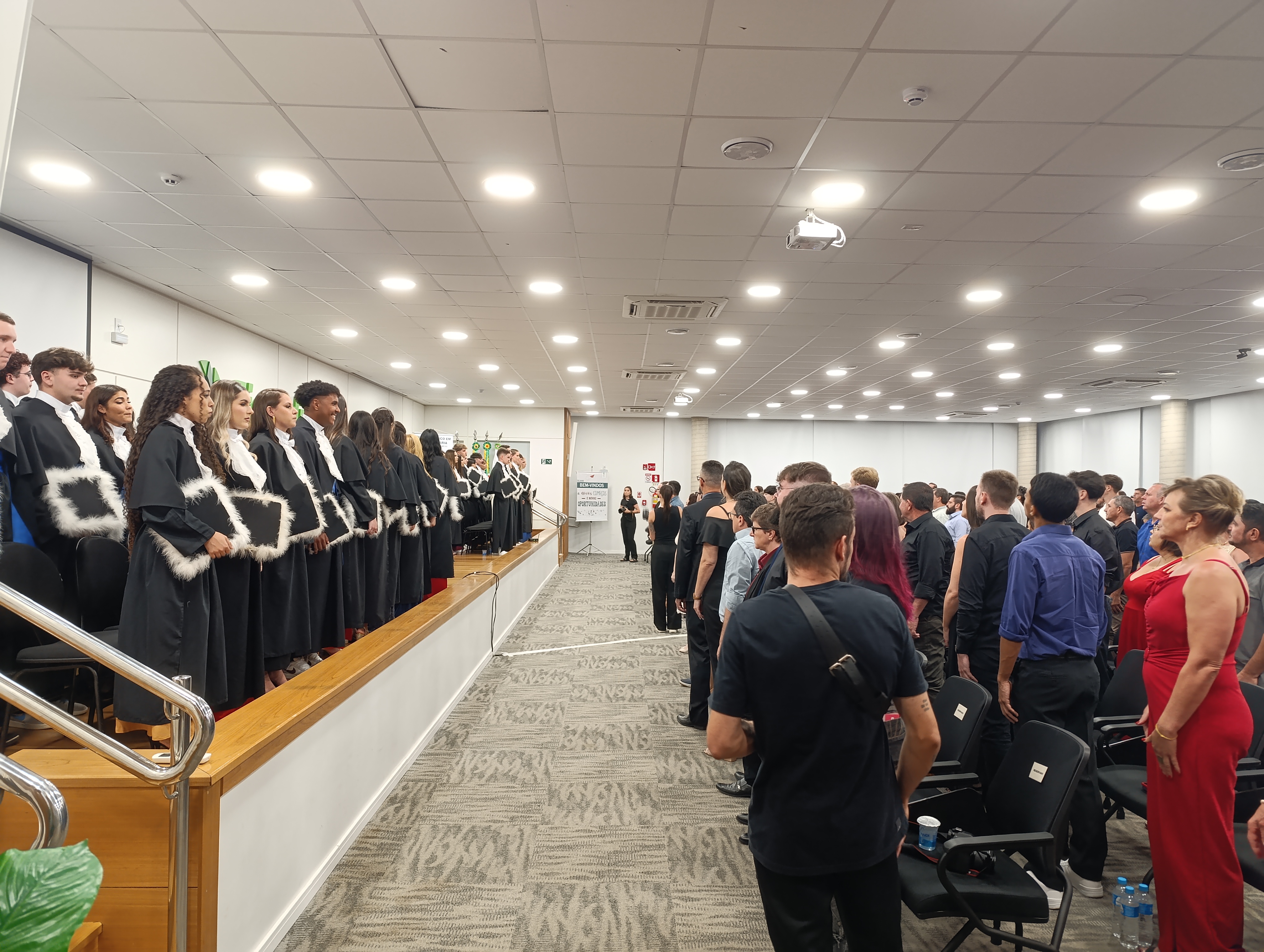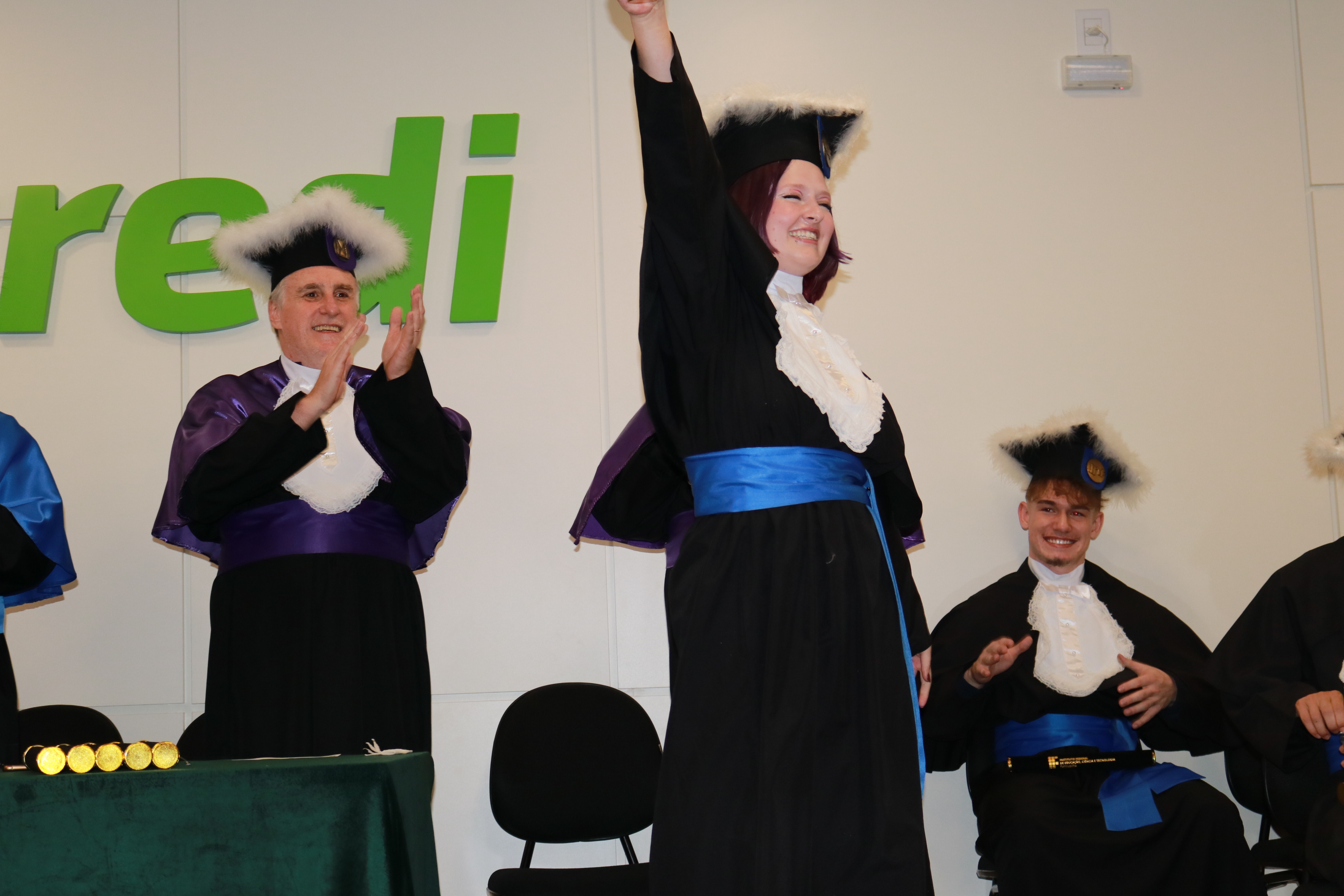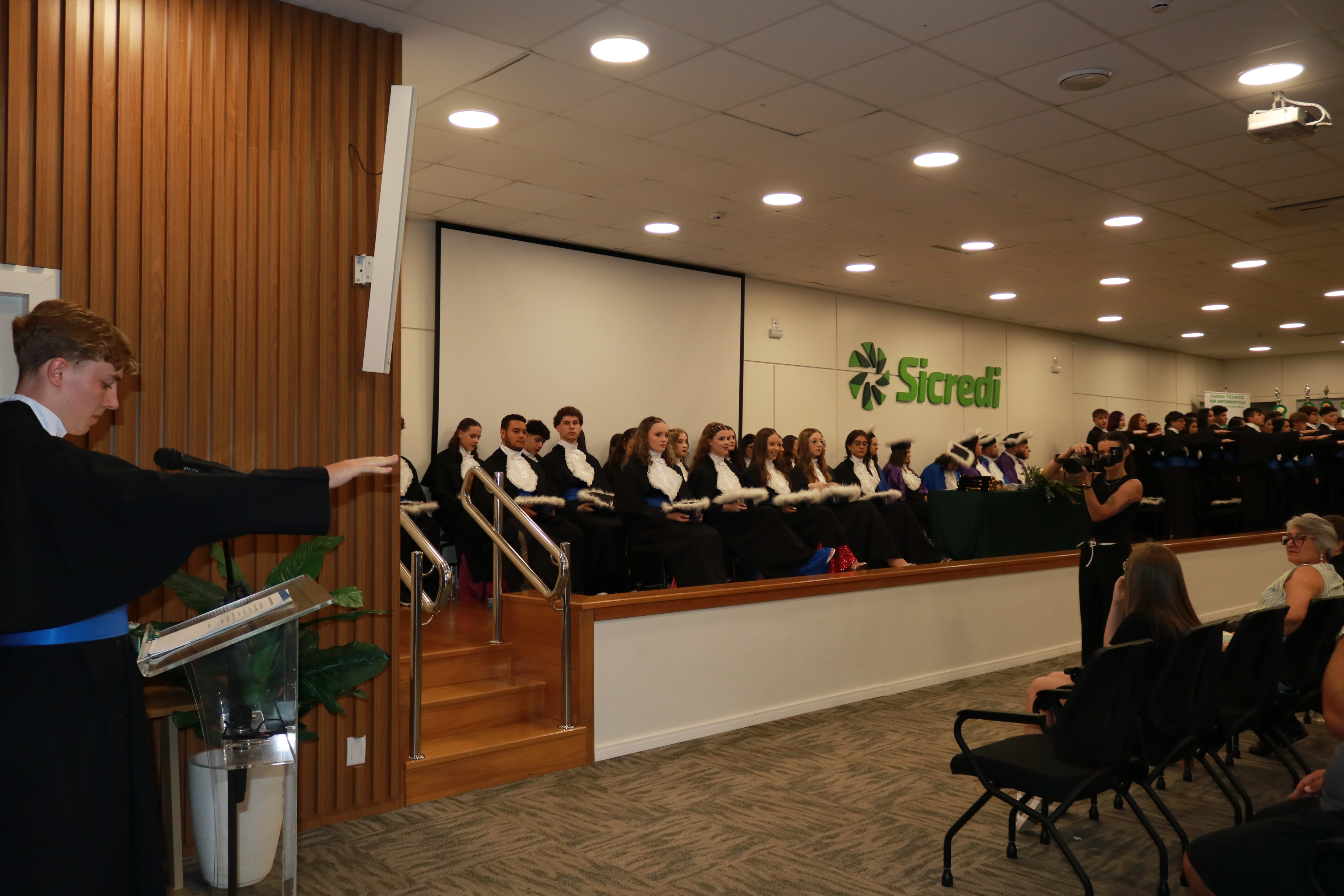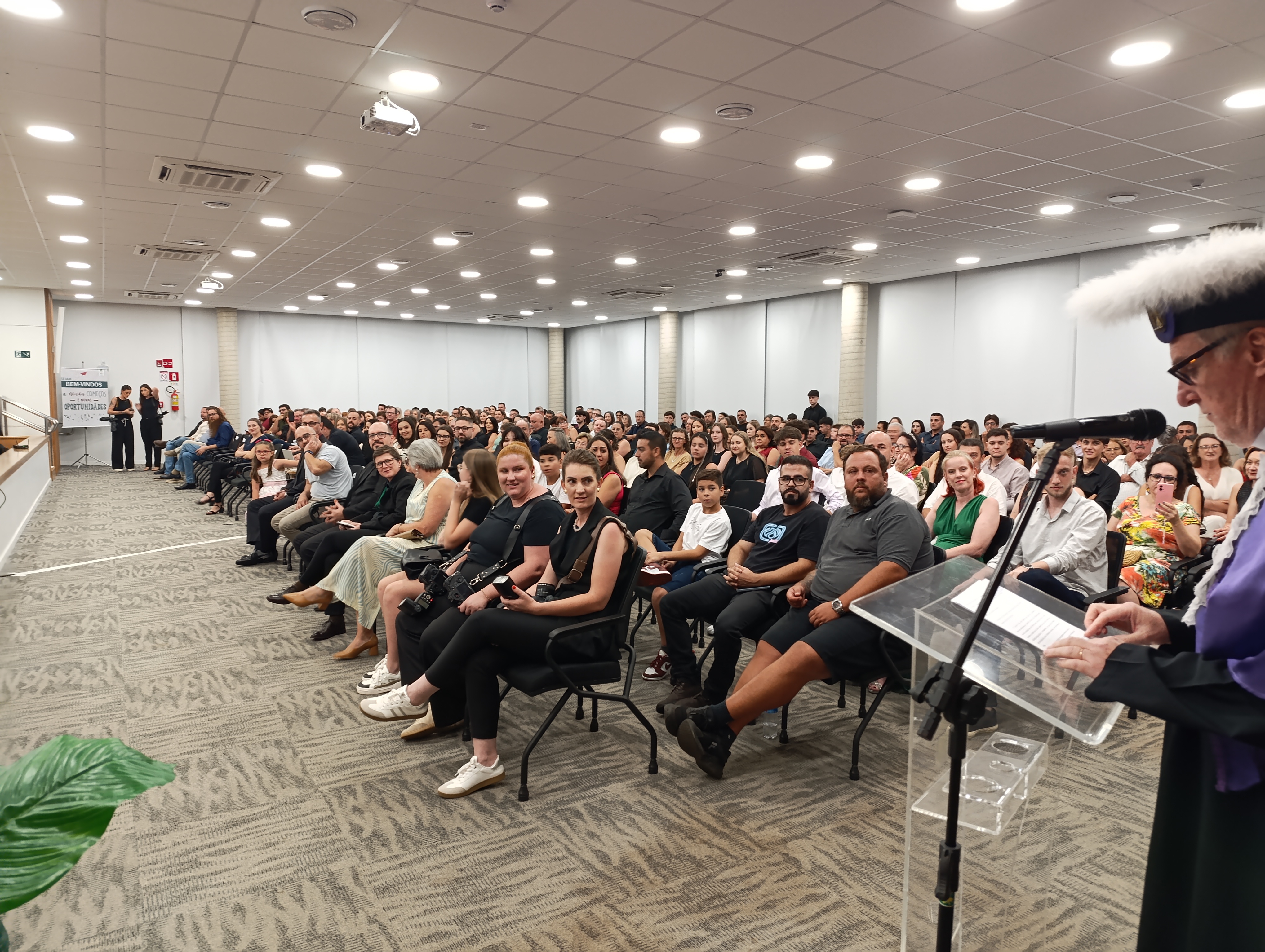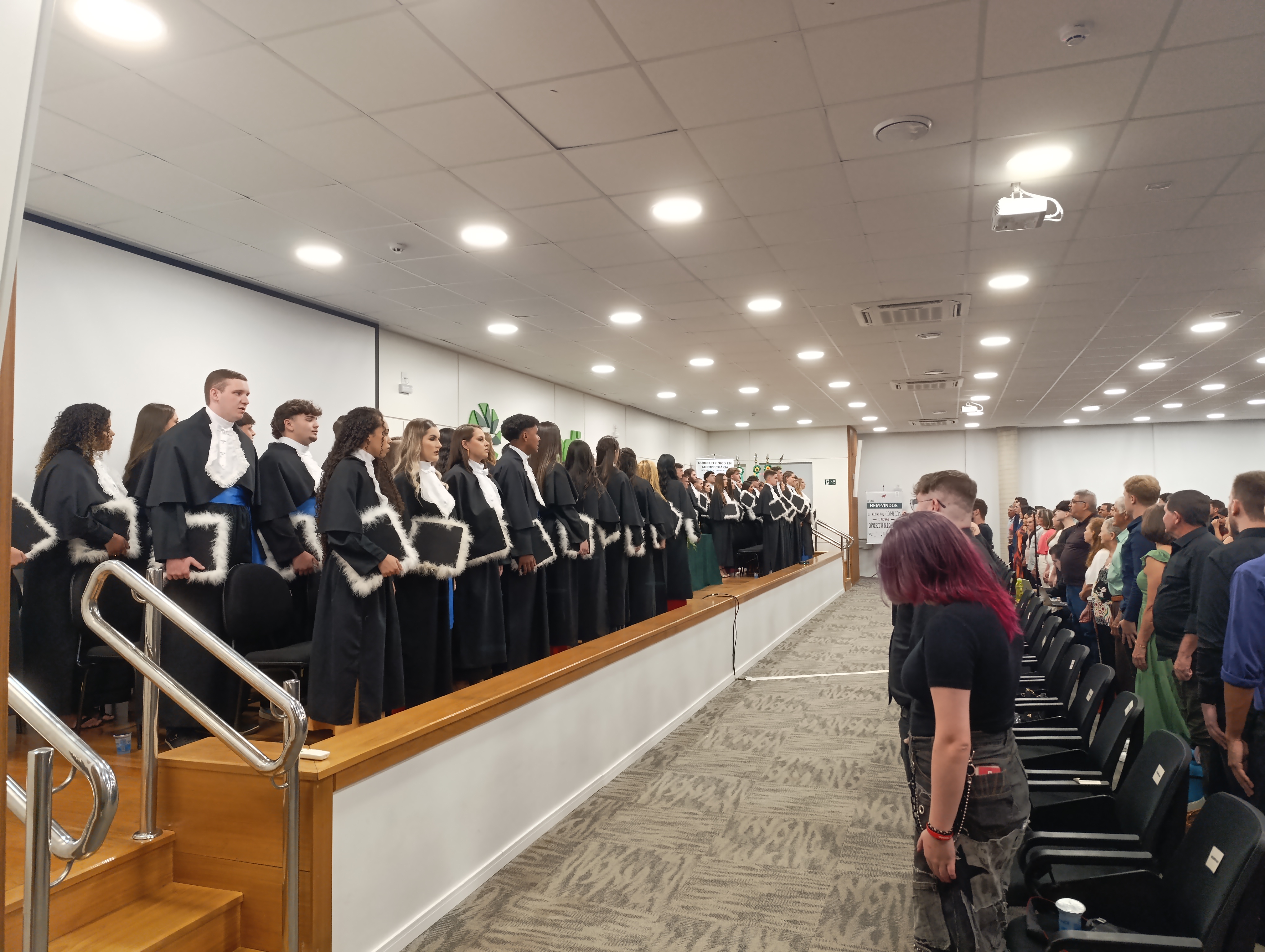 No dia 31, às 19h, foram certificados 44 concluintes, sendo 21 do Técnico em Alimentos e 23 de Informática. A solenidade foi presidida pela Diretora Geral substituta, Téoura Benetti, e contou com a presença da Coordenadora do curso Técnico em Alimentos integrado ao ensino médio, Melissa dos Santos Oliveira; da Paraninfa da 14ª turma, Giovana Kafer e da Patronesse, Débora Piovesan Moraes; do Coordenador do Curso Técnico em Informática integrado ao ensino médio, Paulo Henrique Oliveira; do Paraninfo da 14ª Turma, Dirceu Dirk e do Patrono, Uianes Biondo, que também representou a SME e o poder executivo, bem como osprofessores homenageados, servidores e familiares dos concluintes.