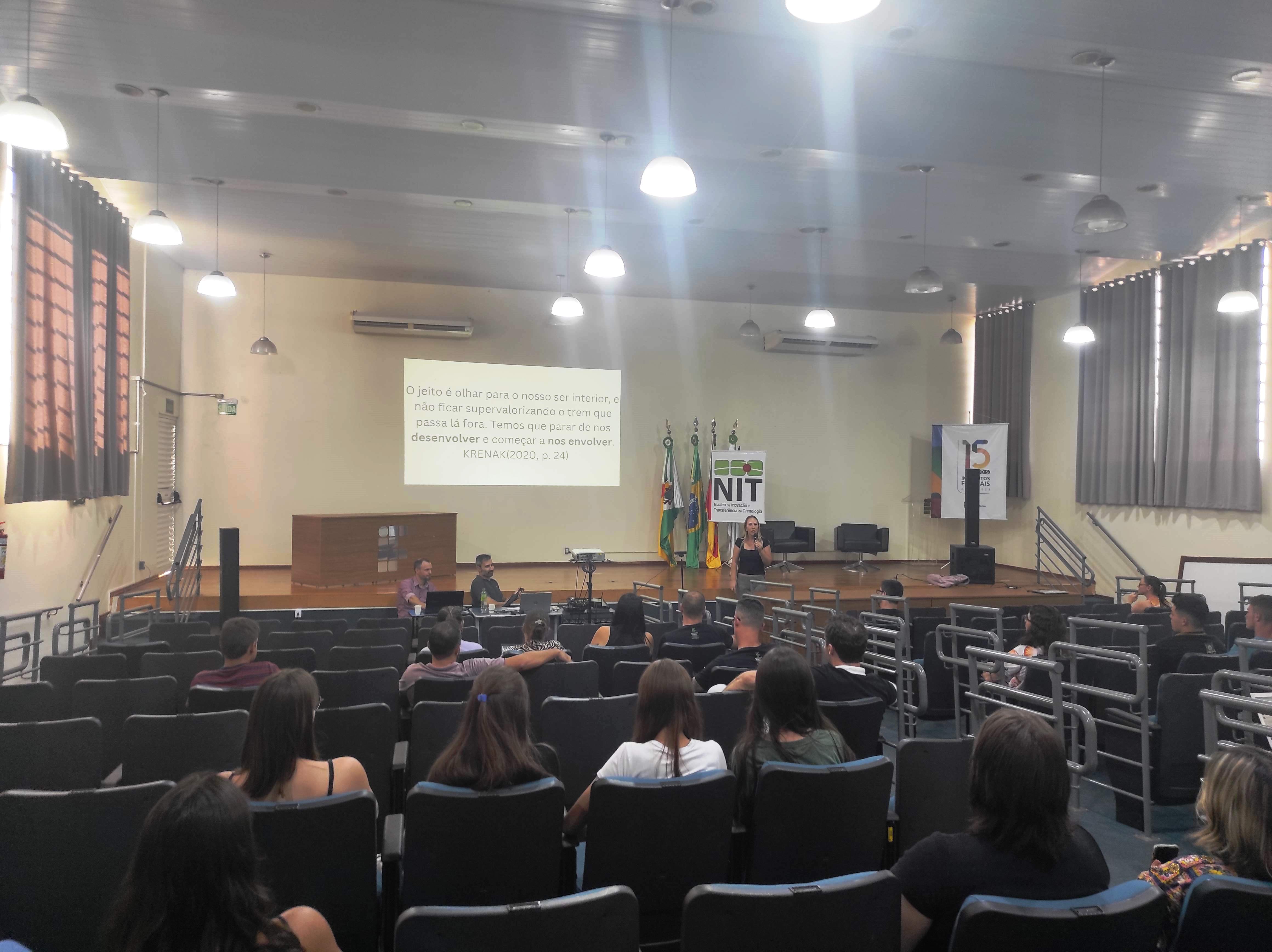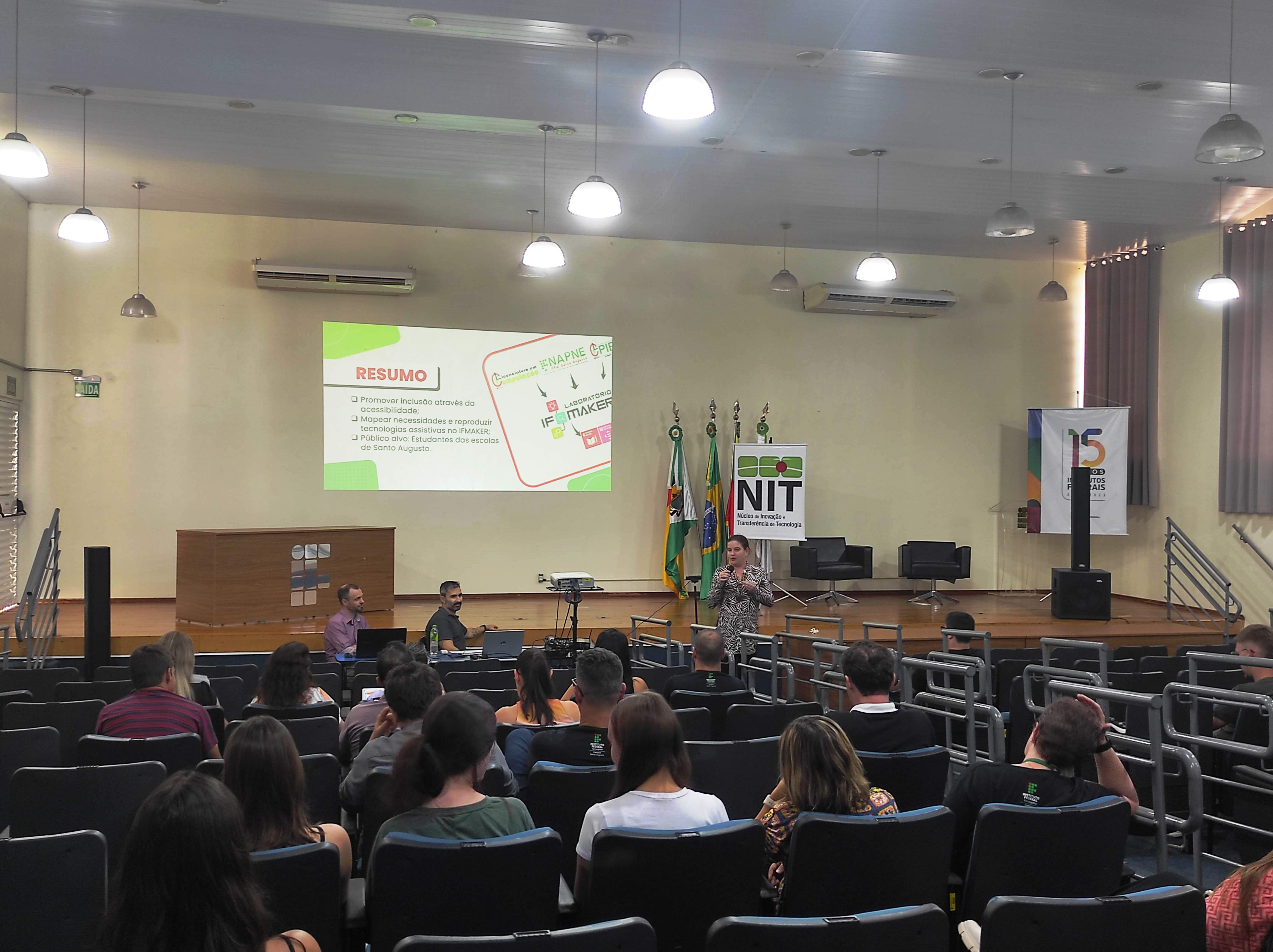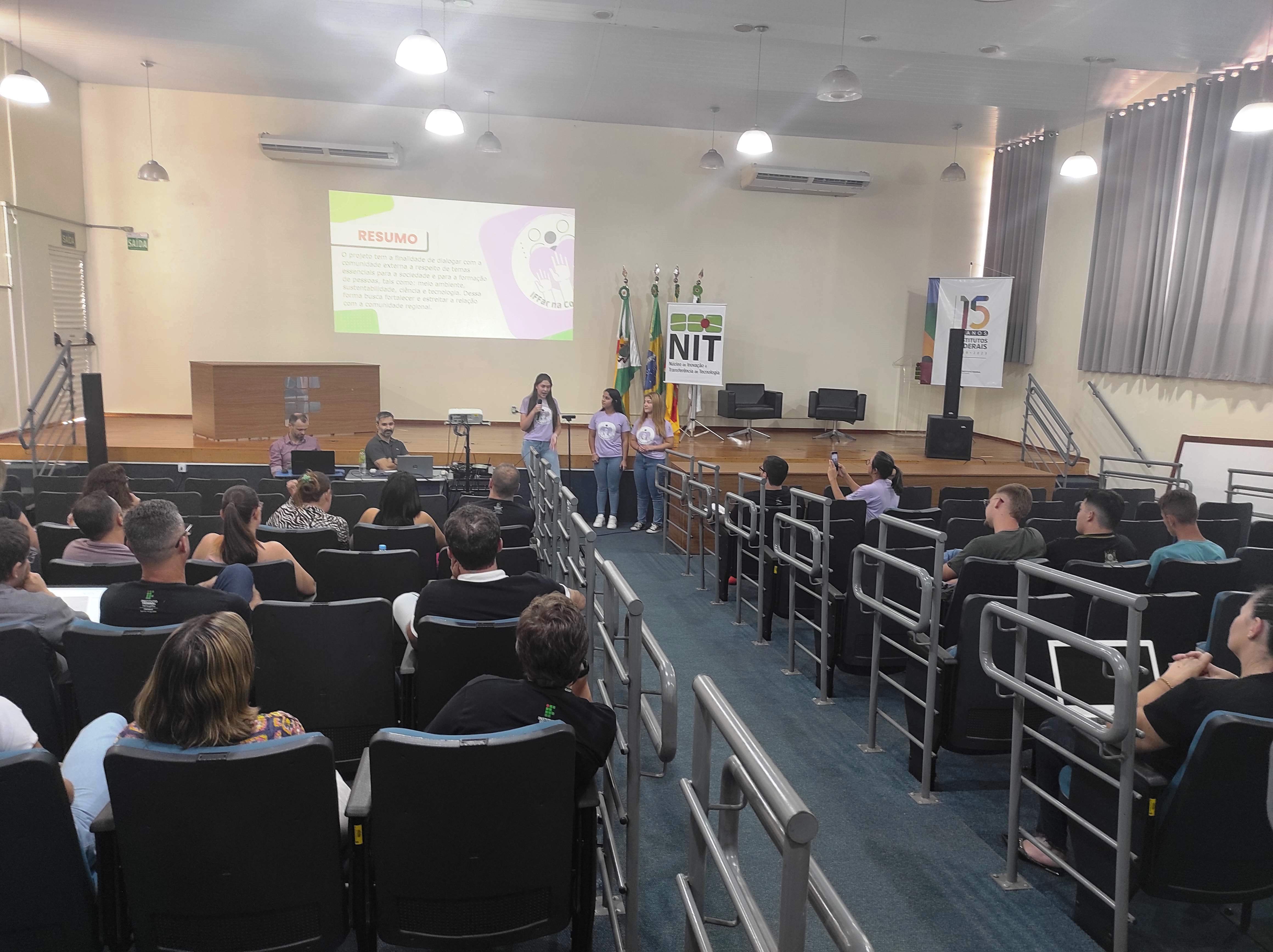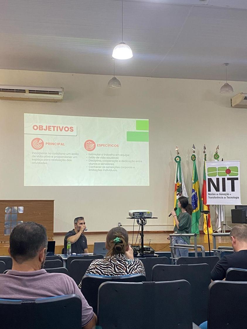 O Núcleo de Inovação e Tecnologia –NIT do IFFar – Campus Santo Augusto, juntamente com a equipe da Incubadora Tecnológica, realizaram na tarde de hoje, dia 27 de março, às 13h30, no auditório da instituição, a 4ª edição do Workshop Integrando Saberes, buscando apresentar à comunidade acadêmica e local os projetos e ações em andamento da instituição, de forma dinâmica e objetiva.