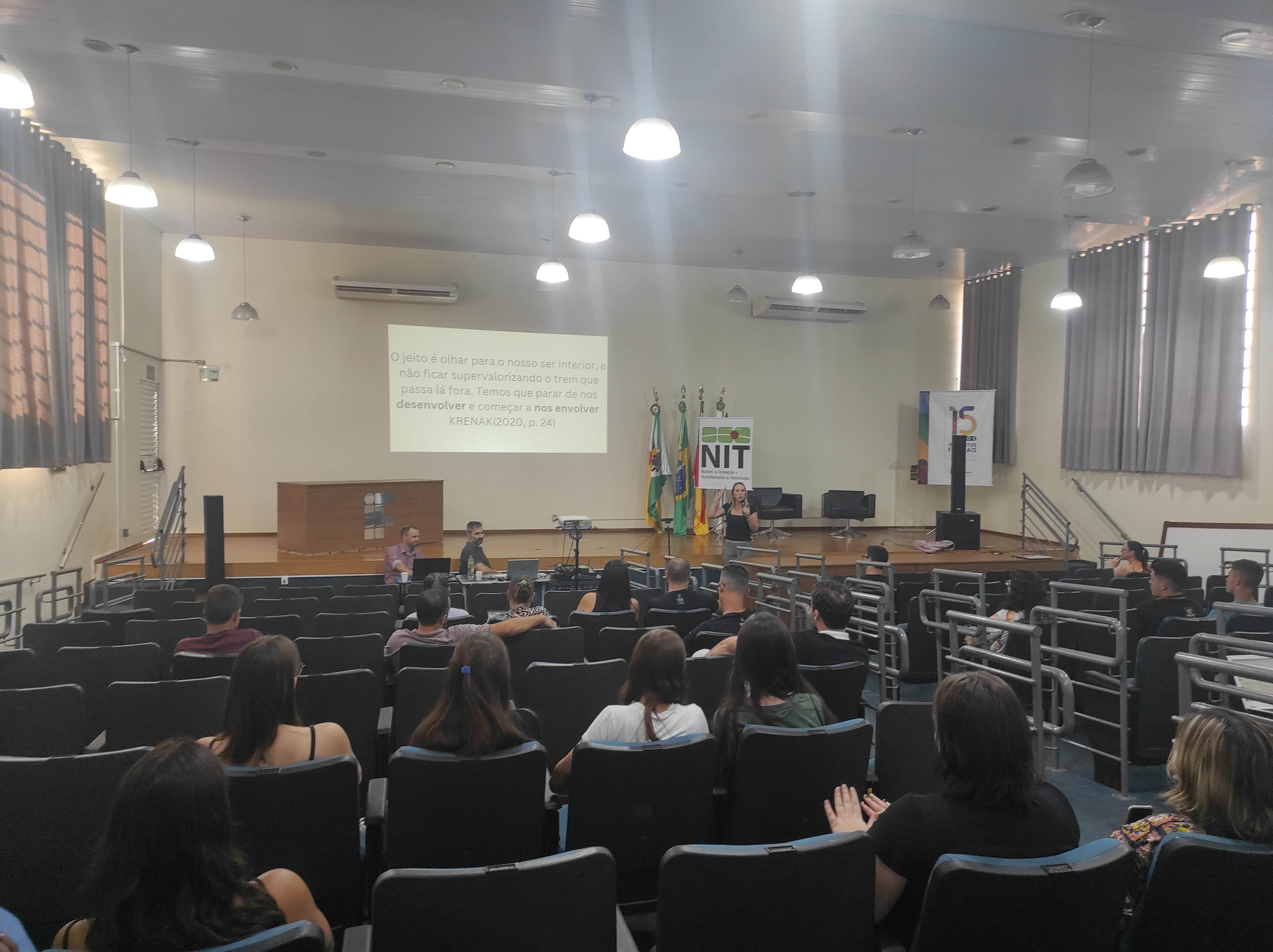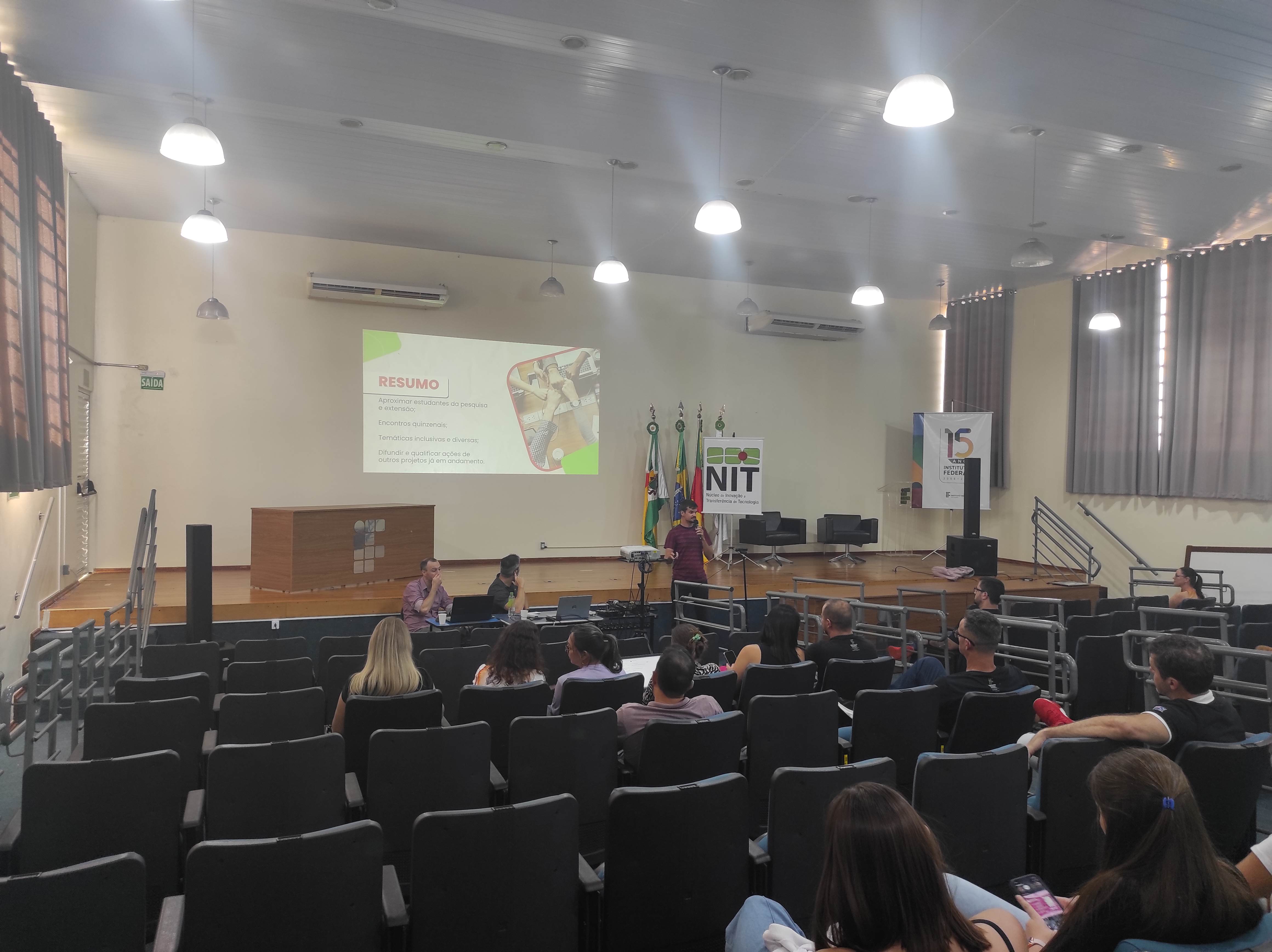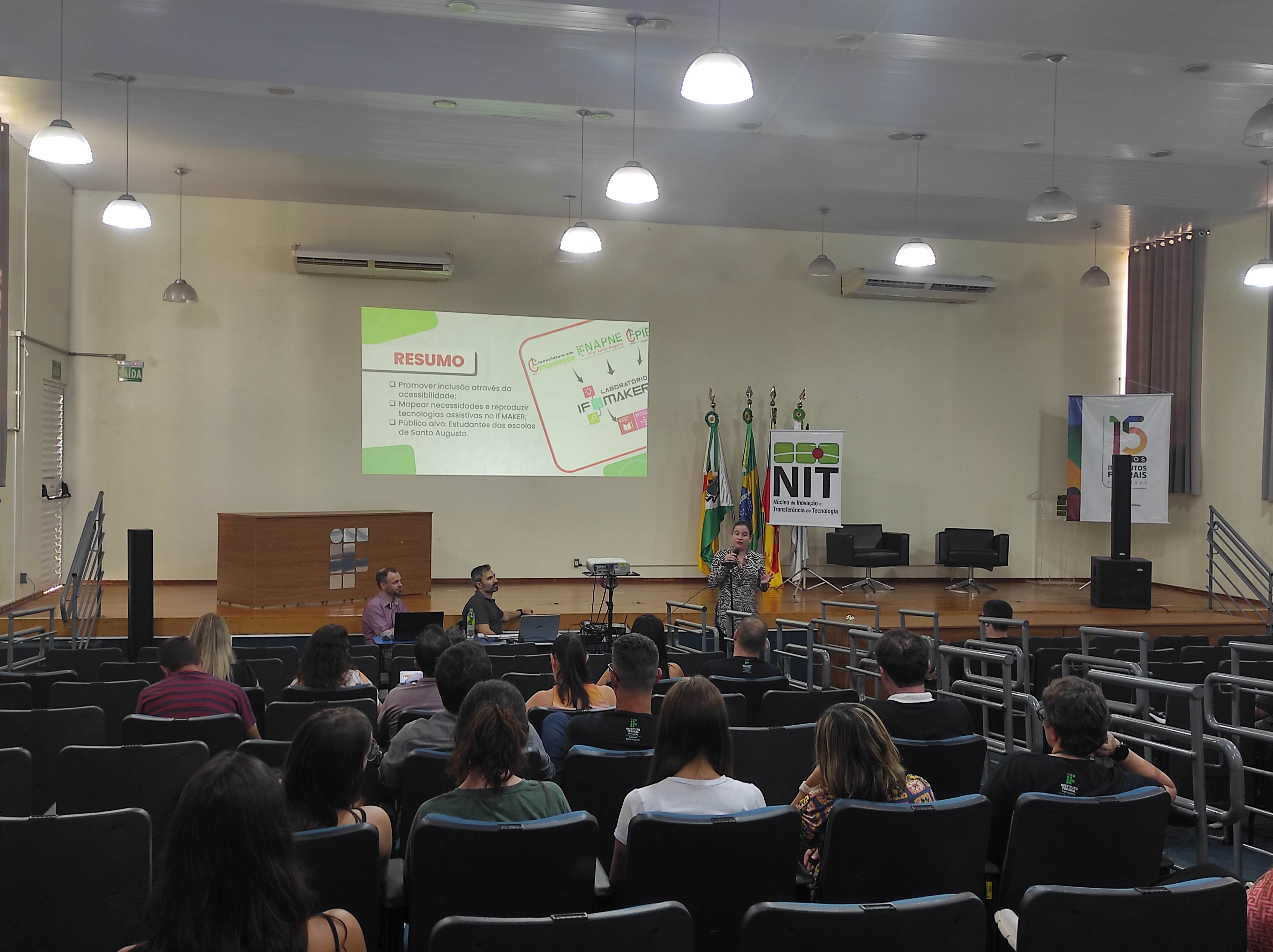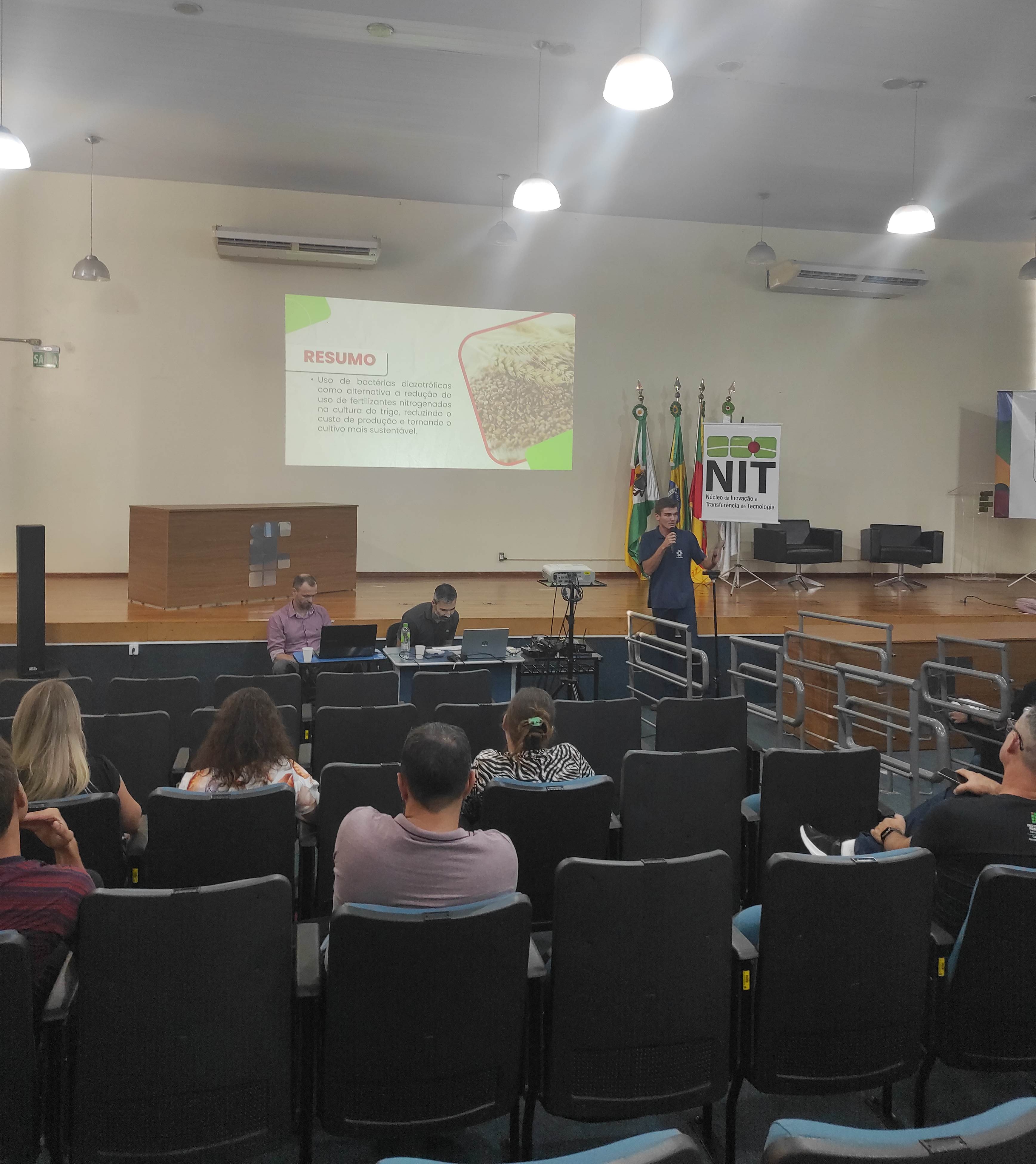 O Núcleo de Inovação e Tecnologia –NIT do IFFar – Campus Santo Augusto, juntamente com a equipe da Incubadora Tecnológica, realizaram na tarde de hoje, dia 27 de março, às 13h30, no auditório da instituição, a 4ª edição do Workshop Integrando Saberes, buscando apresentar à comunidade acadêmica e local os projetos e ações em andamento da instituição, de forma dinâmica e objetiva.
