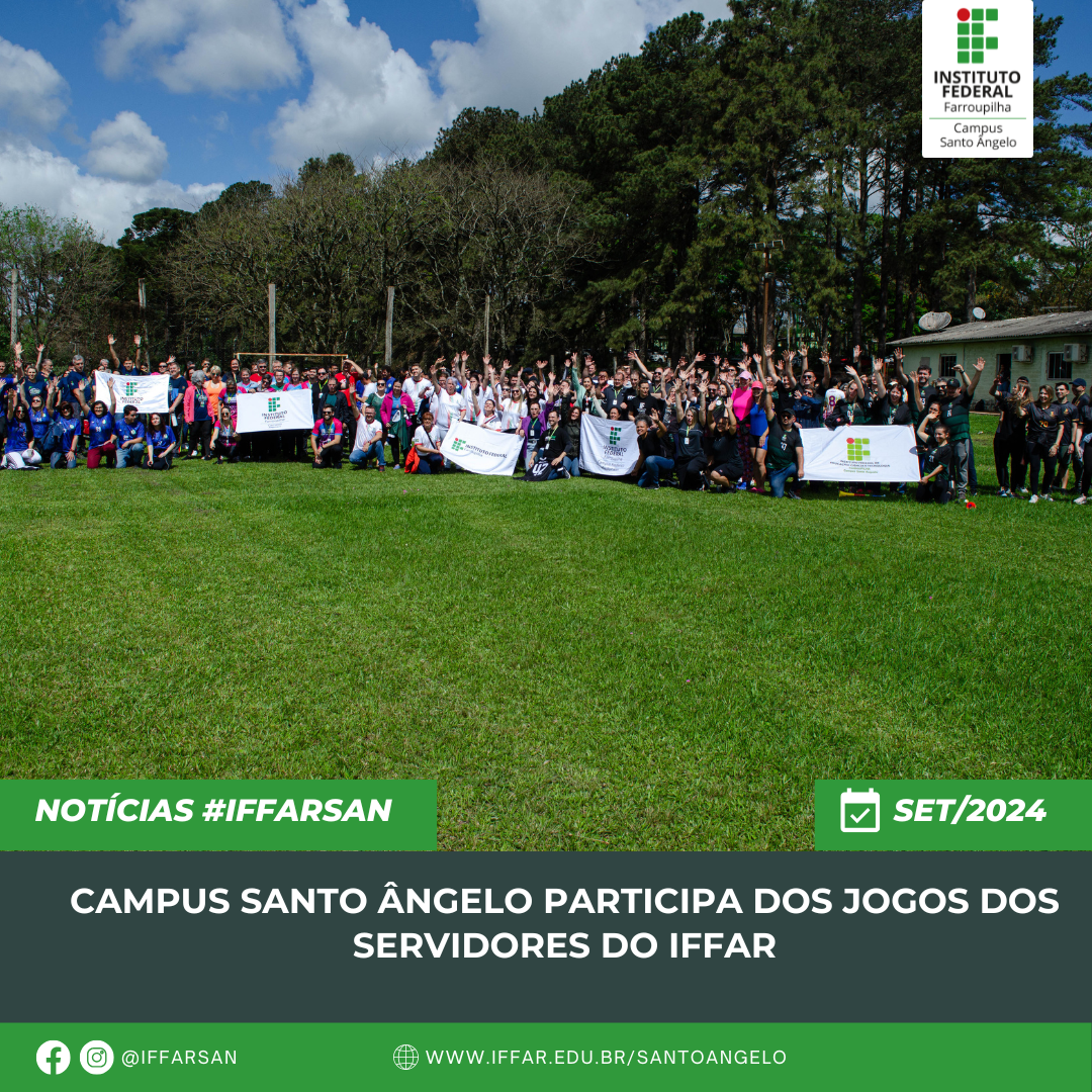 Nos dias 16 a 19 de outubro, a delegação esportiva do IFFar - Campus Santo Ângelo participou dos Jogos Estudantis do Instituto Federal Farroupilha (JEIF) realizados na cidade de São Vicente do Sul. O evento reuniu mais de 500 atletas do Instituto Federal Farroupilha, entre eles 48 atletas do Campus Santo Ângelo.