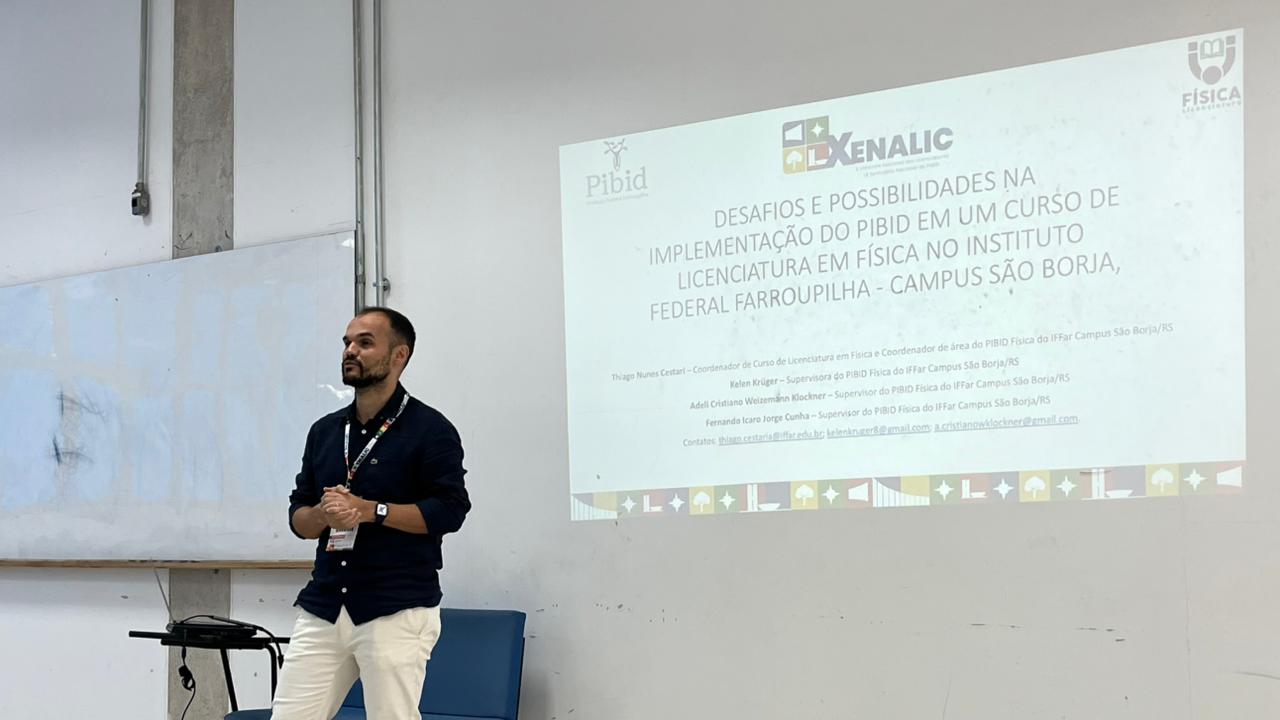 No dia 9, o professor Dr. Thiago Cestari também apresentou o trabalho “Desafios e Possibilidades na Implementação do PIBID em um Curso de Licenciatura em Física no Instituto Federal Farroupilha – Campus São Borja”, que abordou o histórico recente do programa na instituição. Além das apresentações, docentes e discentes participaram de minicursos e rodas de conversa, ampliando a formação acadêmica e promovendo a troca de conhecimentos com participantes de diferentes regiões do país.