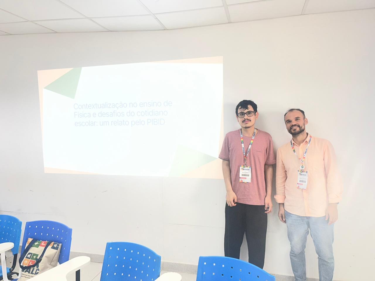 A programação iniciou no domingo, dia 7, no Centro Comunitário Athos Bulcão, na Universidade de Brasília (UnB). No dia 8, o professor Dr. Mairon Machado e o estudante Edinelson Portela apresentaram o trabalho “Ensino de Termologia através de Atividades Práticas na Cozinha – Físichef”, destacando ações realizadas com turmas do Ensino Médio Integrado. Pela tarde, o estudante Alessandro Dornelles e o professor Dr. Thiago Cestari, coordenador do PIBID São Borja, apresentaram o trabalho “Contextualização no Ensino de Física e Desafios do Cotidiano Escolar: um relato pelo PIBID”, enfatizando práticas desenvolvidas nas escolas do município.
