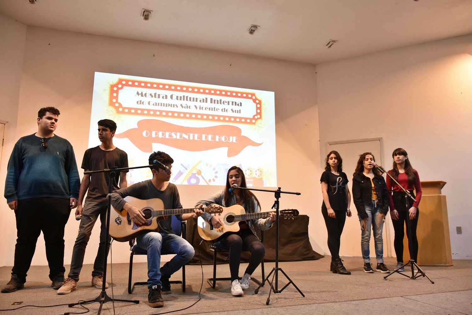 Na tarde de segunda-feira, dia 30 de setembro, o Campus São Vicente do Sul realizou sua Mostra Cultural Interna, que apresentou à comunidade escolar diversas formas de expressão artístico-cultural desenvolvidas por estudantes. Organizado pela Diretoria de Ensino, Coordenação de Assistência Estudantil e pelo Núcleo de Artes e Cultura do do IFFar-SVS, o evento buscou promover a integração de estudantes e servidores através de apresentações e exposições de diferentes linguagens artísticas.