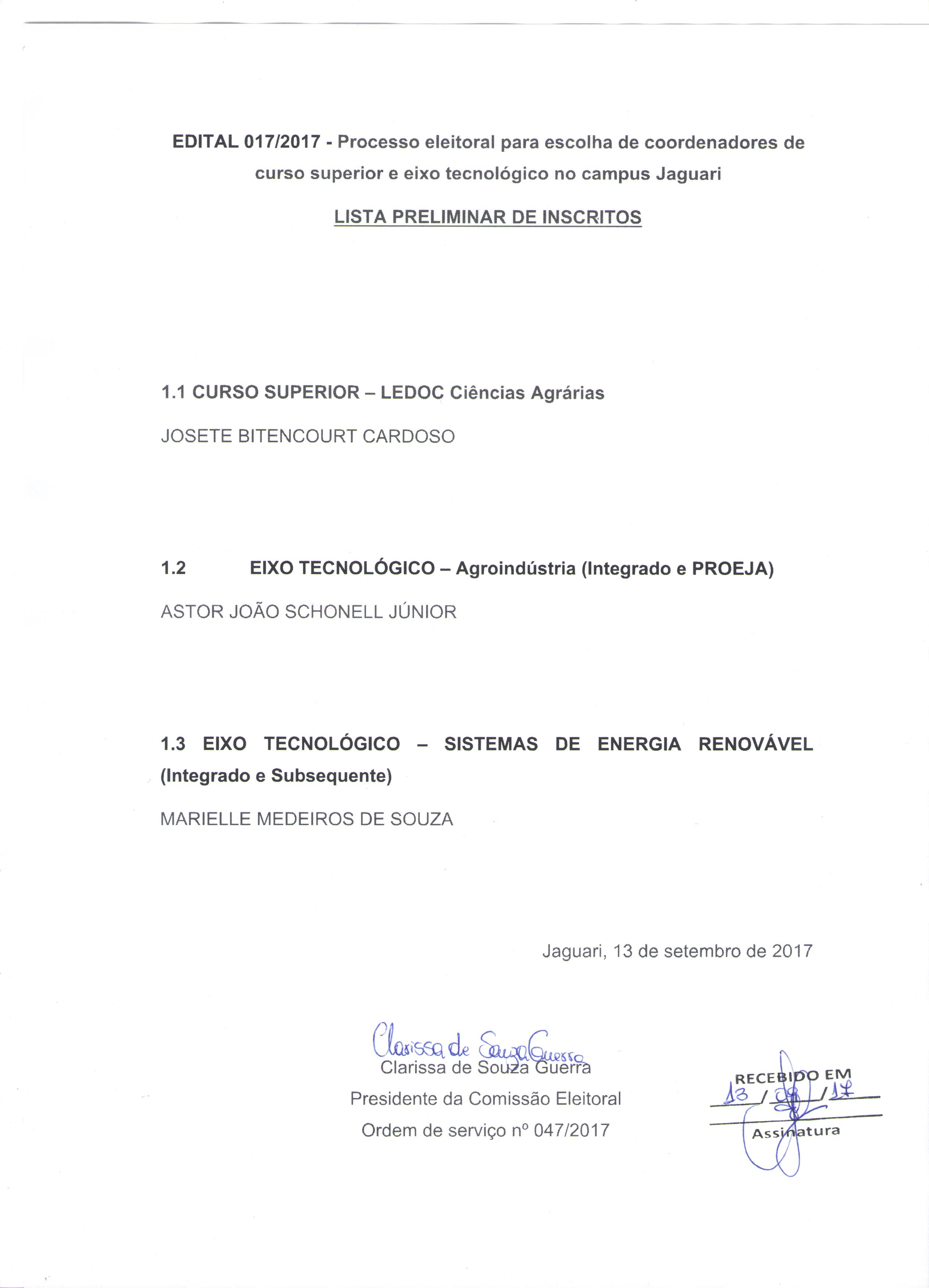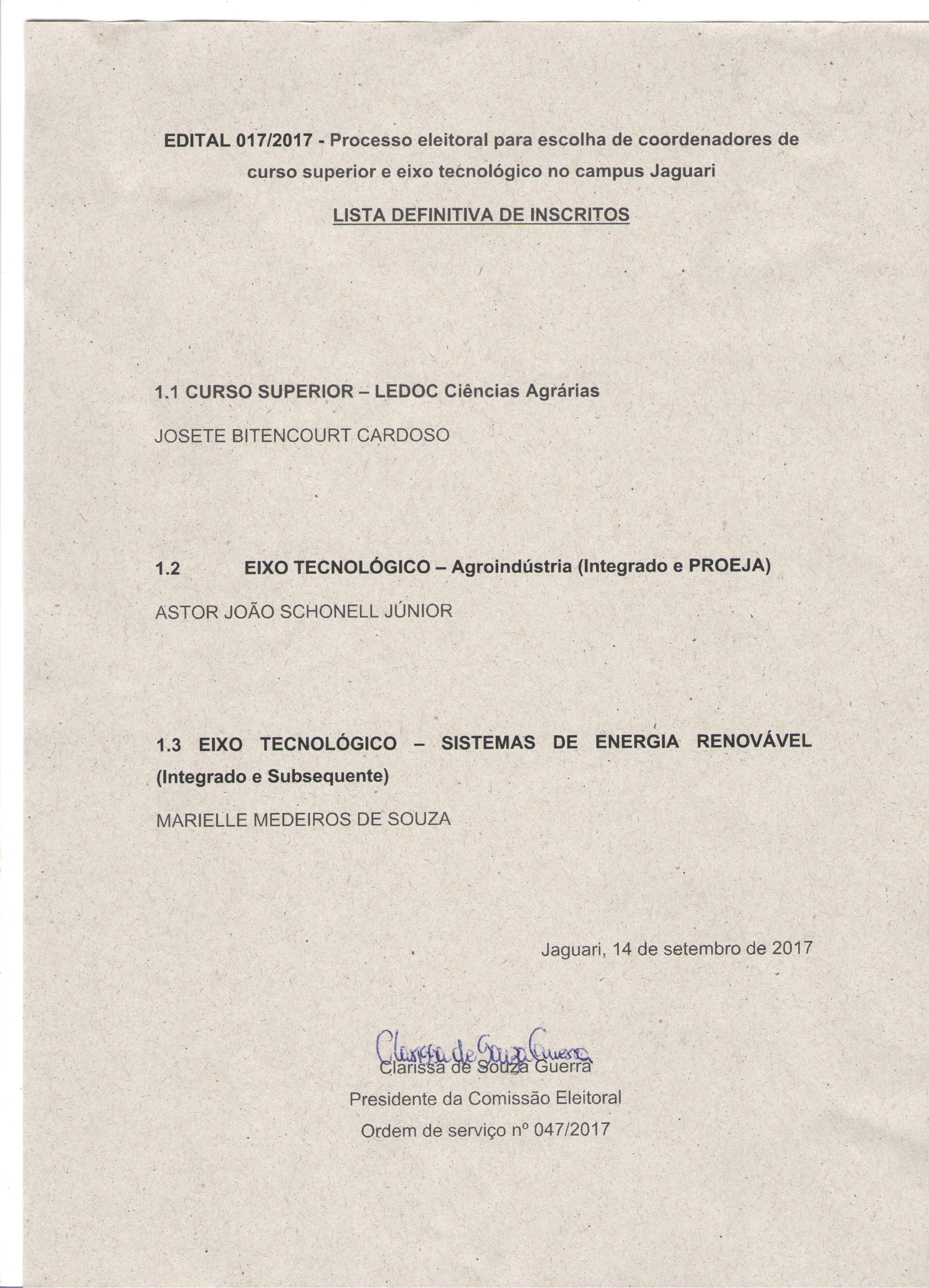 Edital 17/2017 - Processo eleitoral para escolha de coordenadores de curso superior e eixo tecnológico no campus Jaguari