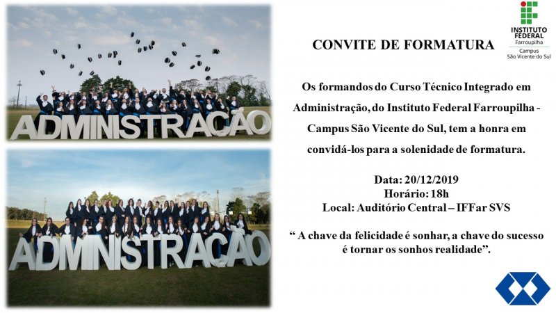 Formatura das turmas do Curso Técnico Integrado em Administração do Campus SVS.