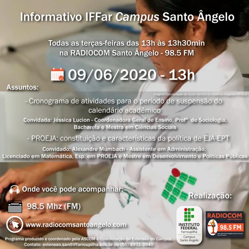 Nesta terça-feira (09/06) às 13h o IFFar SAN estará no seu rádio (98.5 FM), celular ou computador, através da RADIOCOM Santo Ângelo.
