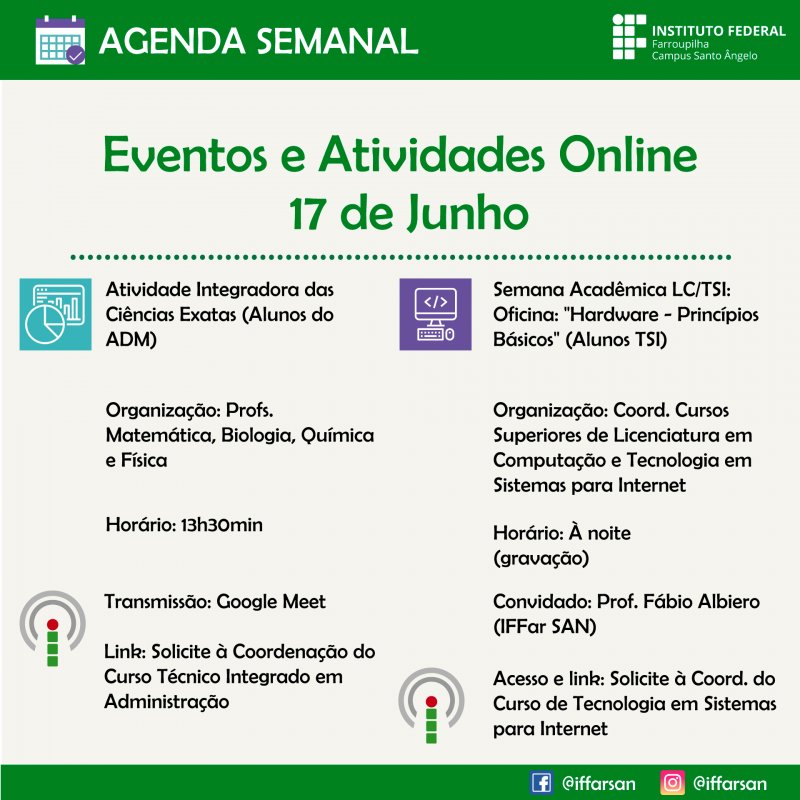Local Solicite o link de acesso à Coordenação do Curso Técnico Integrado em Administração