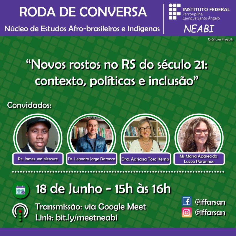 MEET - Roda de Conversa: “Novos rostos no RS do século 21: contexto, políticas e inclusão” (NEABI)