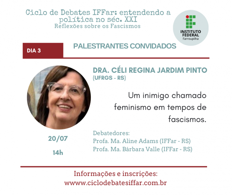 Página inicial > Eventos Institucionais > Palestra: "Um inimigo chamado feminismo em tempos de fascismos" [Ciclo de Debates - Dia 3 - 1º Turno]
