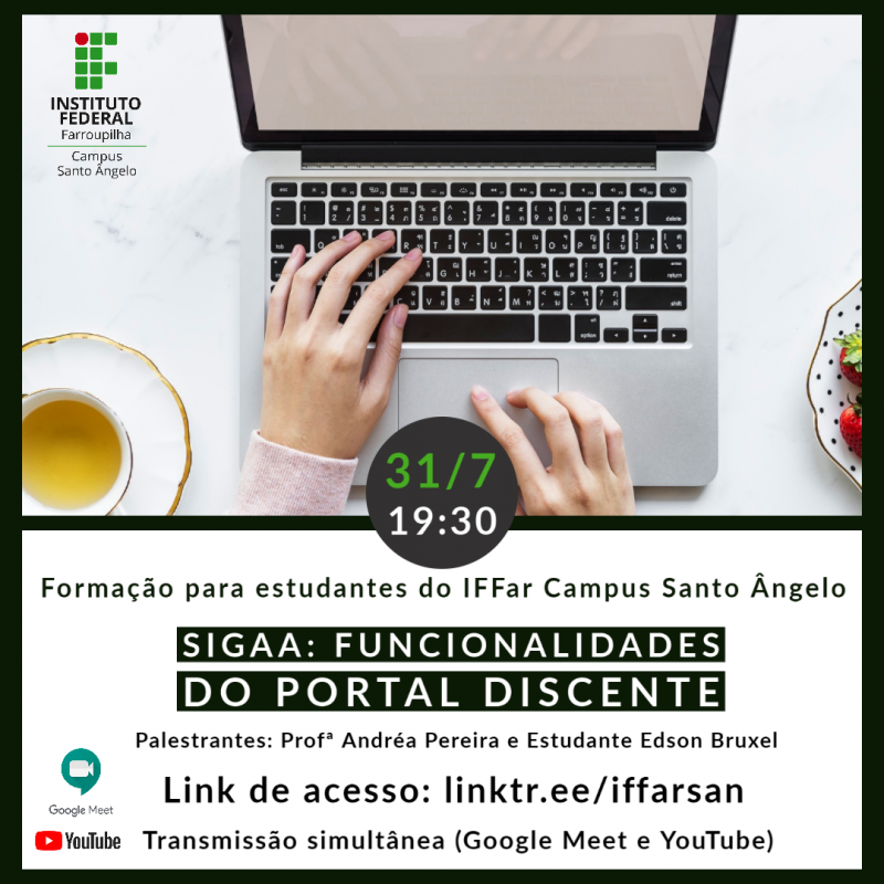 MEET e YOUTUBE - Formação para estudantes do campus Santo Ângelo sobre "SIGAA: funcionalidades do portal discente"
