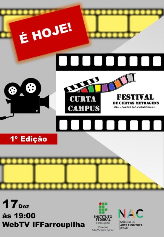 O evento ocorre hoje, dia 17/12, a partir das 19 horas e terá a transmissão pelo canal da WEB TV, no seguinte link: https://www.youtube.com/ watch?v=a6EdMoTOuuo. Na oportunidade, serão exibidos 12 curtas produzidos por nossos estudantes!!!