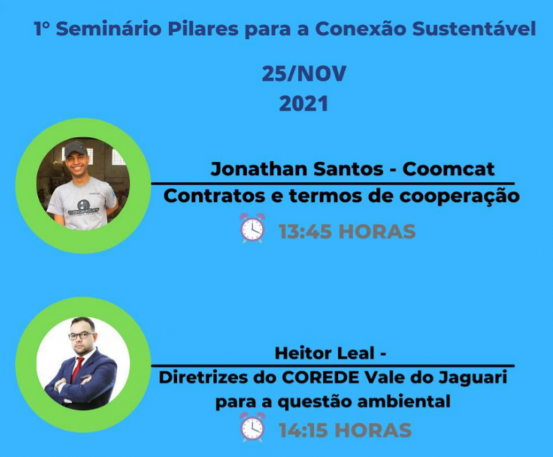 Nos dias 25, 29 e 30 de novembro, acontece o 1° Seminário Pilares para a Conexão Sustentável do Instituto Federal Farroupilha – Campus São Vicente do Sul. O evento é uma ação de um projeto de mesmo nome, aprovado no Programa IF Mais Empreendedor Nacional, que é direcionado às associações de recicladores/catadores dos municípios de Santiago, Jaguari, São Vicente do Sul, Rosário do Sul e São Francisco de Assis.