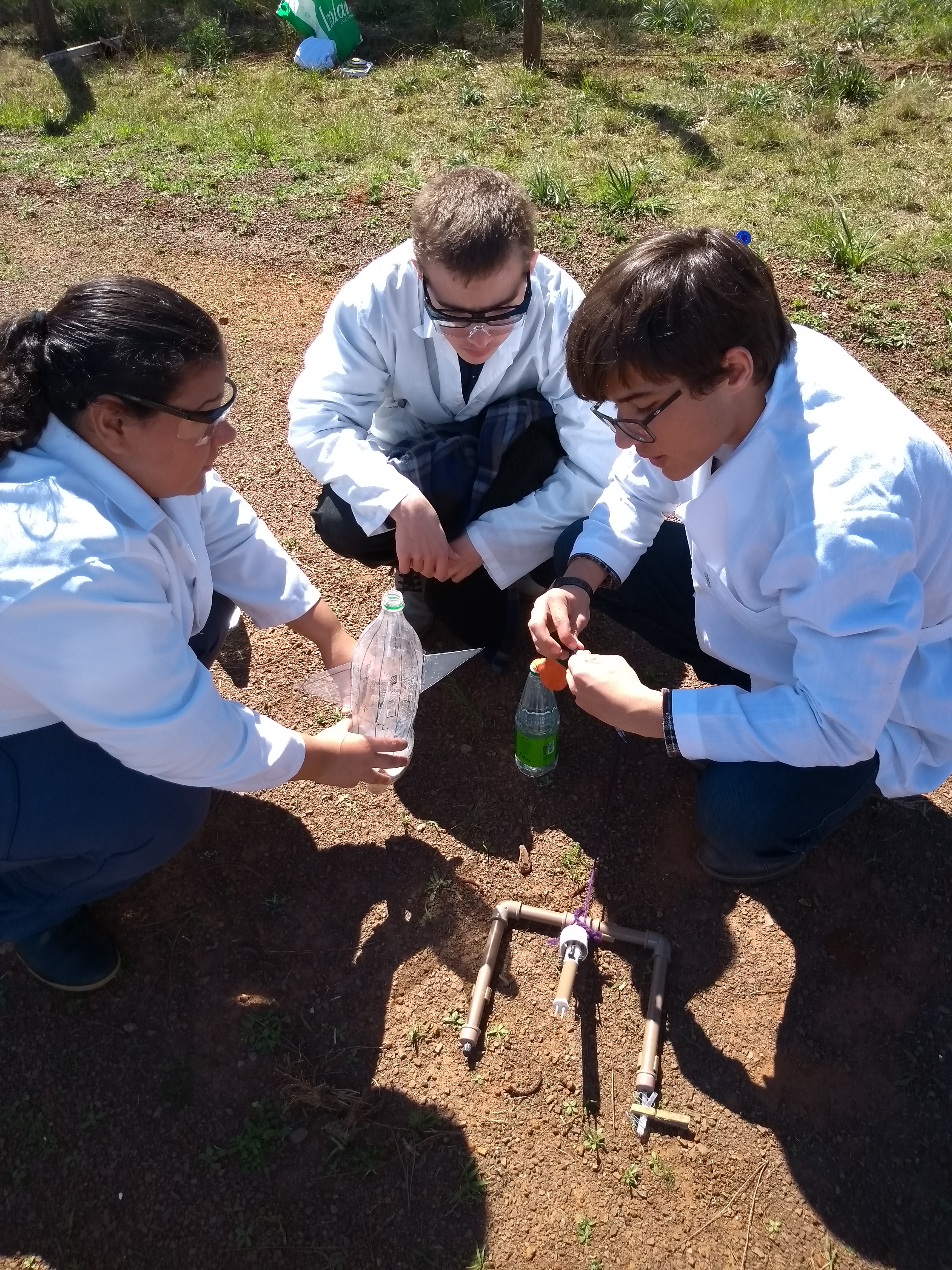 Os alunos são participantes do projeto de ensino que trata sobre a confecção e lançamento de foguetes coordenado pelo Professor Giancarlo Belmonte.