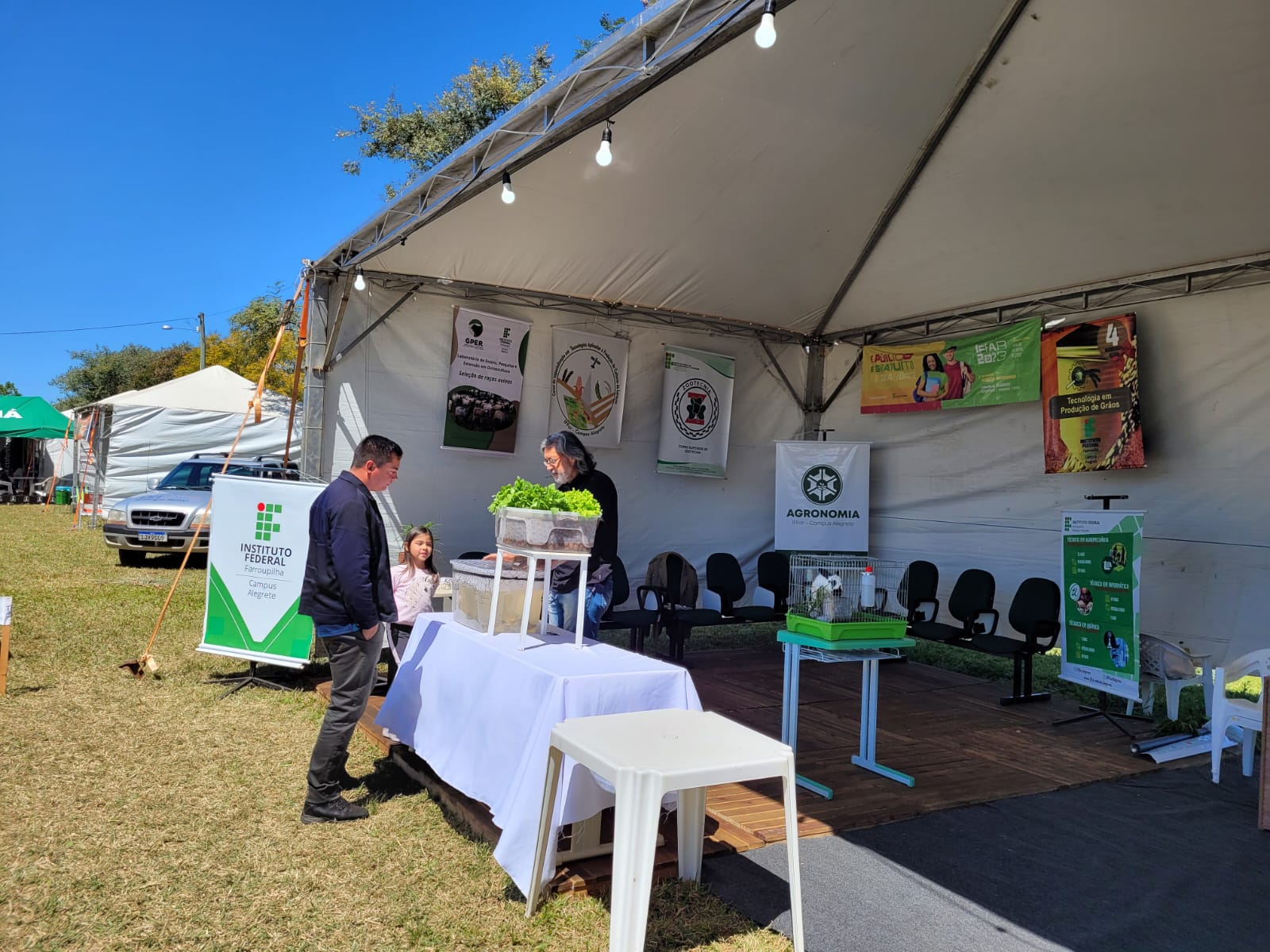 O IFFar – Campus Alegrete esteve presente com estande durante todos os dias de feira, onde reuniu servidores, alunos e visitantes. No estande do IFFar foi possível apresentar um pouco dos diferentes cursos do Campus e alguns trabalhos de extensão e pesquisa que são realizados na instituição. Alunos e servidores estiveram divulgando seus cursos e projetos para o público que se fez presente.