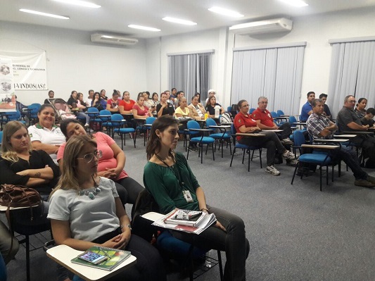 Após o intervalo, foi distribuído aos alunos o material de conscientização e prevenção das doenças causadas pelo mosquito Aedes aegypti e foram apresentados os projetos de ensino, pesquisa e extensão executados pelos professores do Curso, bem como os possíveis projetos para 2016. A pedagoga Denise Batalha enfatizou a importância da participação dos alunos nos projetos para aprendizagem. Nesse momento, os alunos que participaram dos projetos já executados puderam compartilhar as suas Vivências com os demais e incentivaram os colegas “novos” a participar. Esse foi um momento também de partilha das dificuldades encontradas pelos alunos na sua jornada estudantil, da boa relação com os colegas, das comemorações realizadas nas turmas, da presença e da importância das ações do Diretório Acadêmico junto ao Curso, entre outros. Foi possível perceber a emoção de diversos alunos ao partilhar sua experiência. Certamente o II Vivências do TA serviu para forçar o elo entre os alunos, professores, servidores e com a Instituição. No encontro foram arrecadados 43 kg de alimentos não perecíveis, que serão doados para instituição carente.