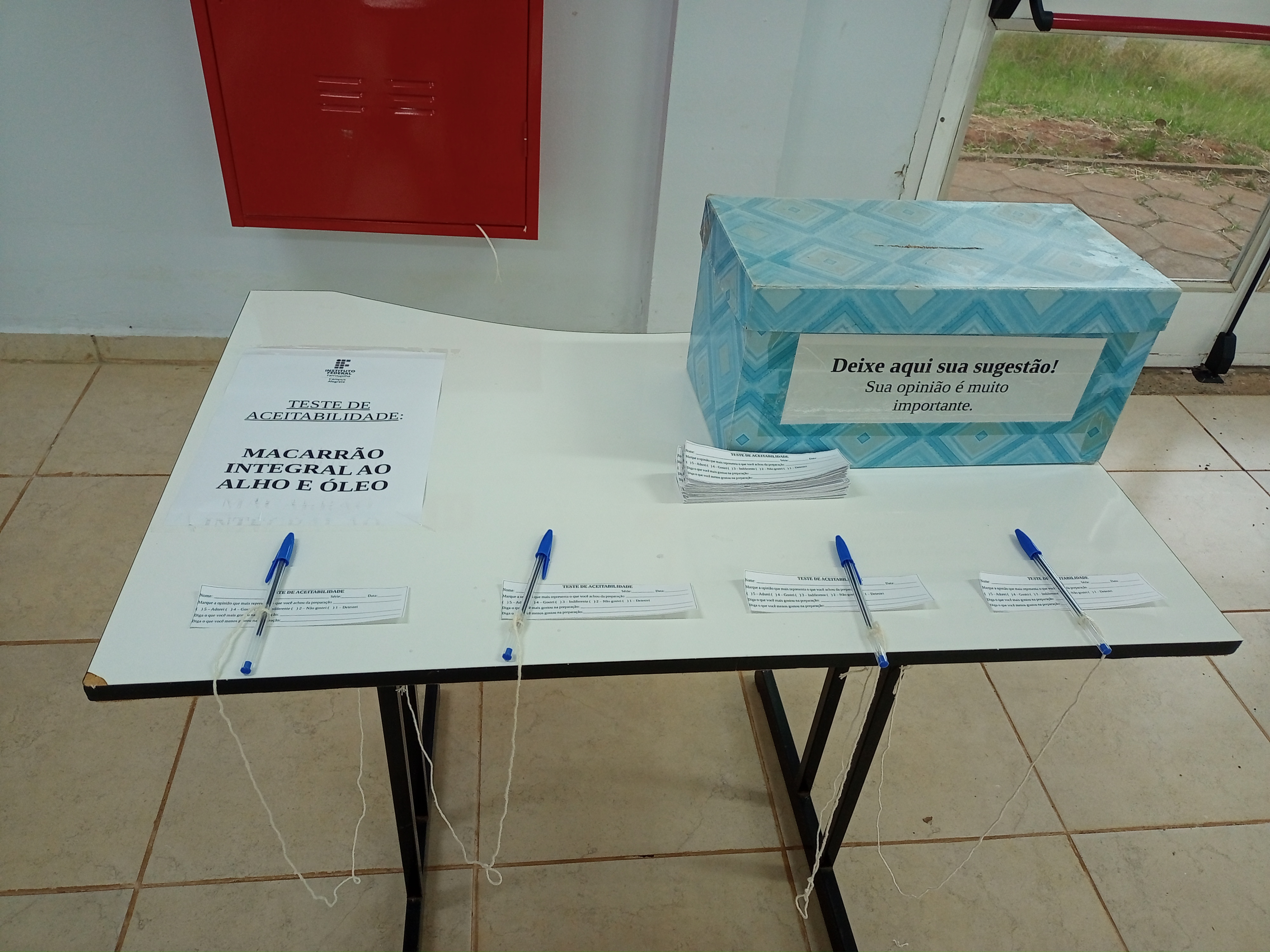 Foi aplicado, dia 26 de outubro, durante o almoço no Refeitório do IFFar - Campus Alegrete, o teste de aceitabilidade para a preparação de “macarrão integral ao alho e óleo”, prato inédito no cardápio da Instituição. O cadápio foi elaborado pelas nutricionistas do Campus, Andréia Silva de Oliveira e Gisela Faraco de Freitas. Essa ação faz parte das atribuições obrigatórias estabelecidas no âmbito do PNAE - Programa Nacional de Alimentação Escolar.