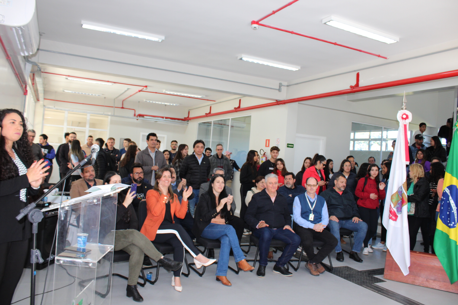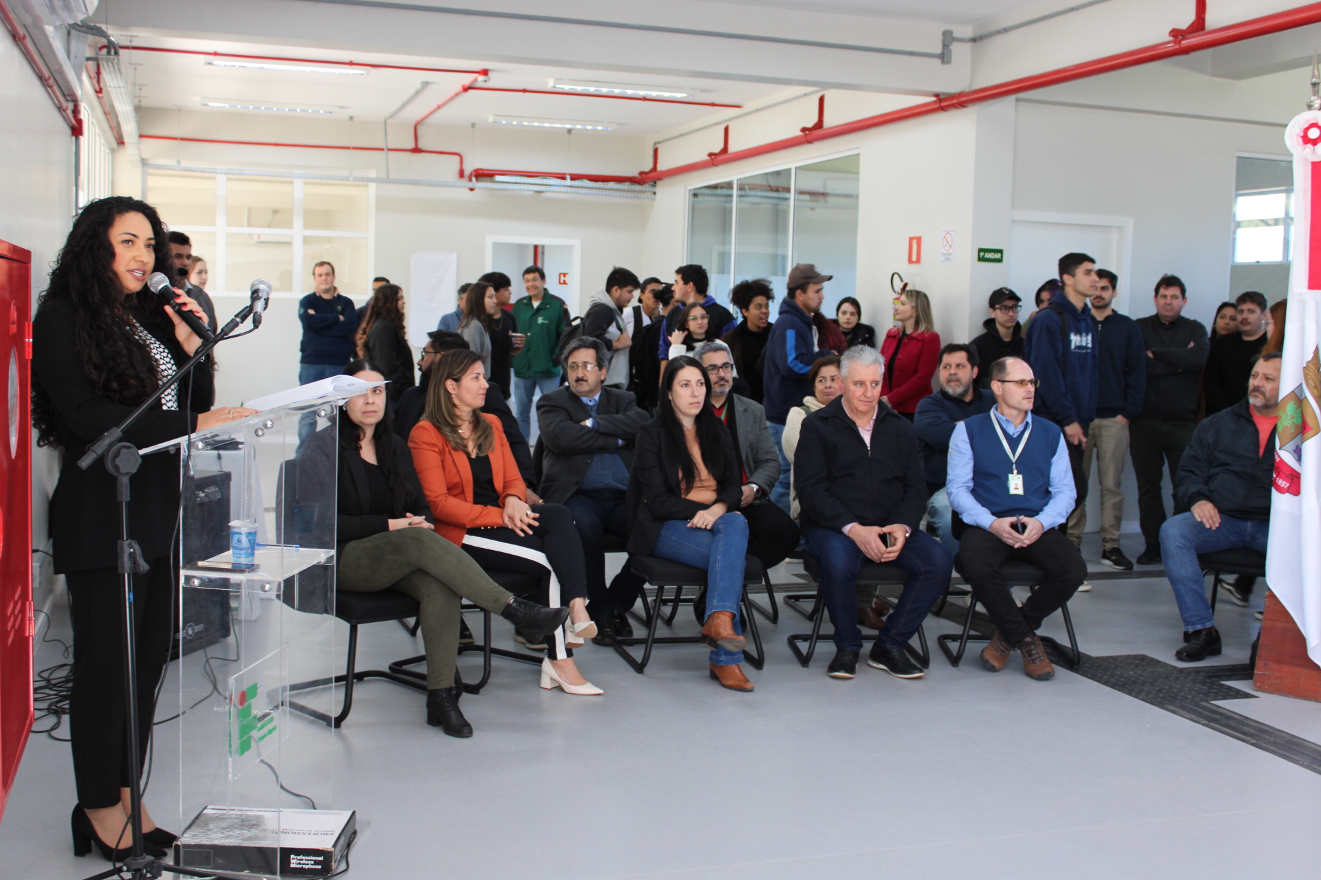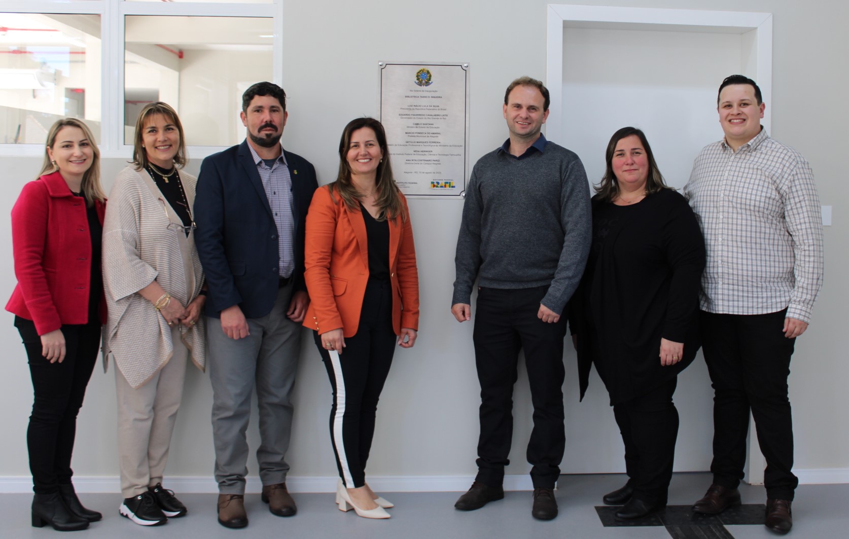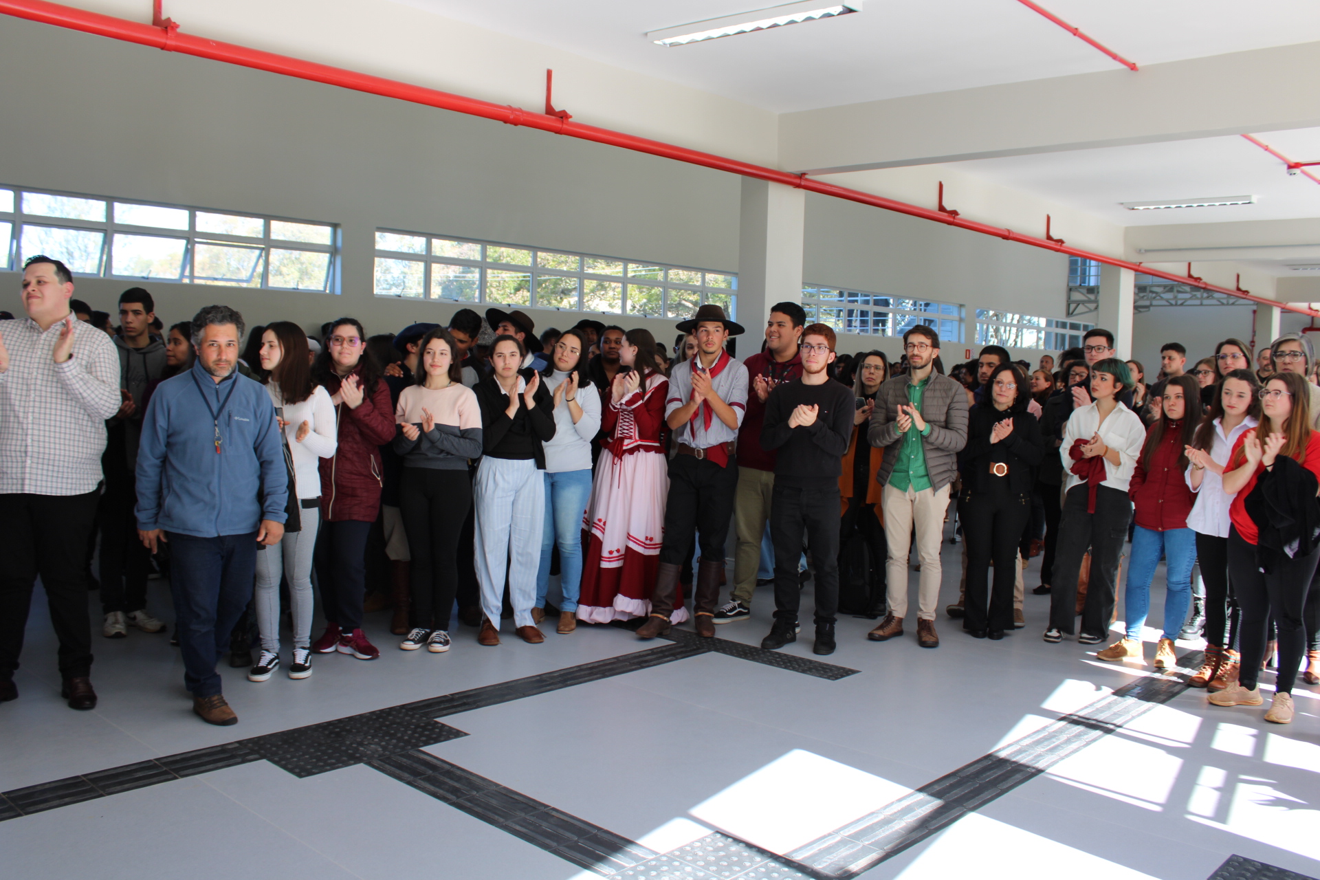 O grande momento da tarde foi o descerramento da placa de inauguração realizado pela Diretora Geral Ana Rita e pela Pró-Reitora de Ensino, Patricia Donicht.