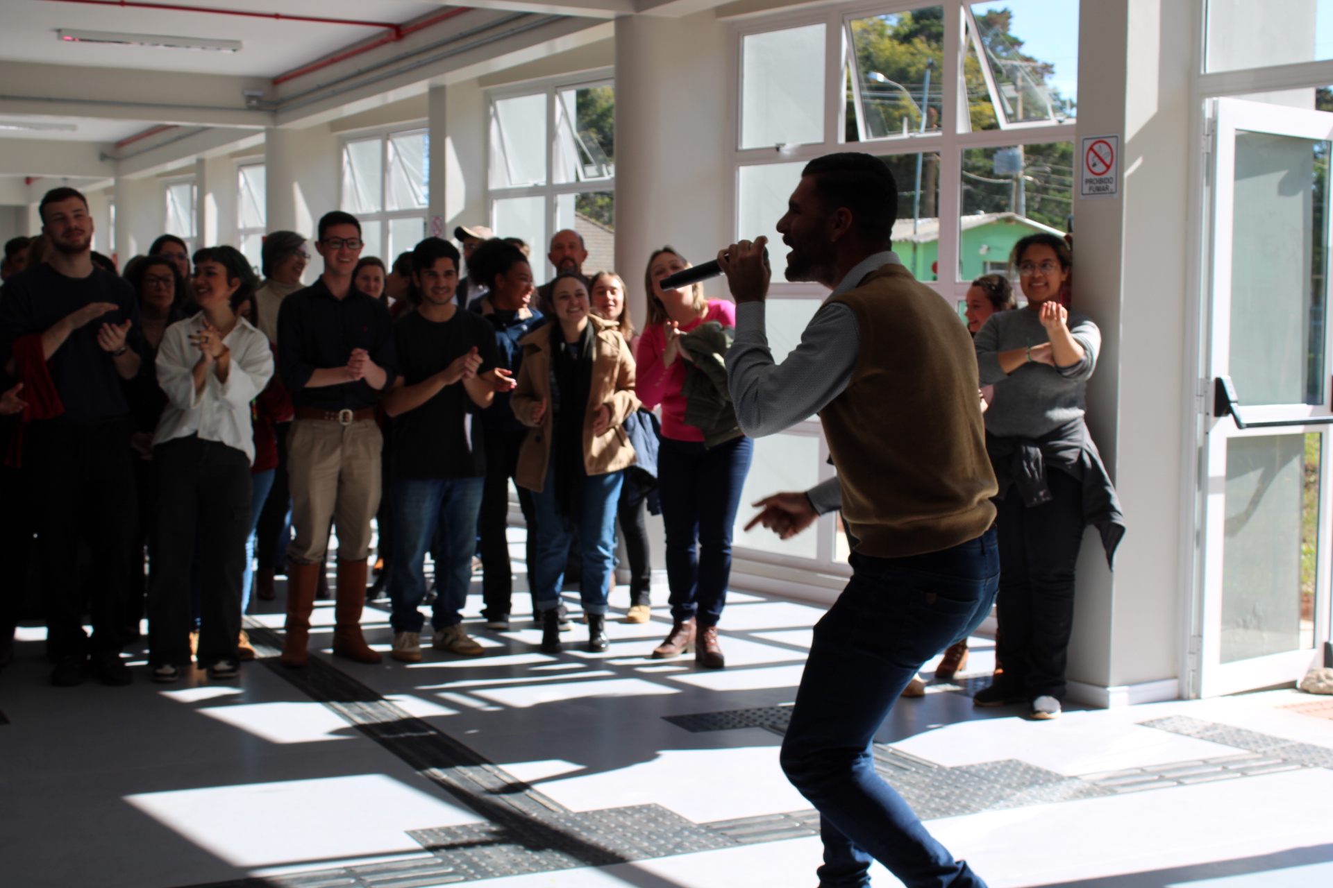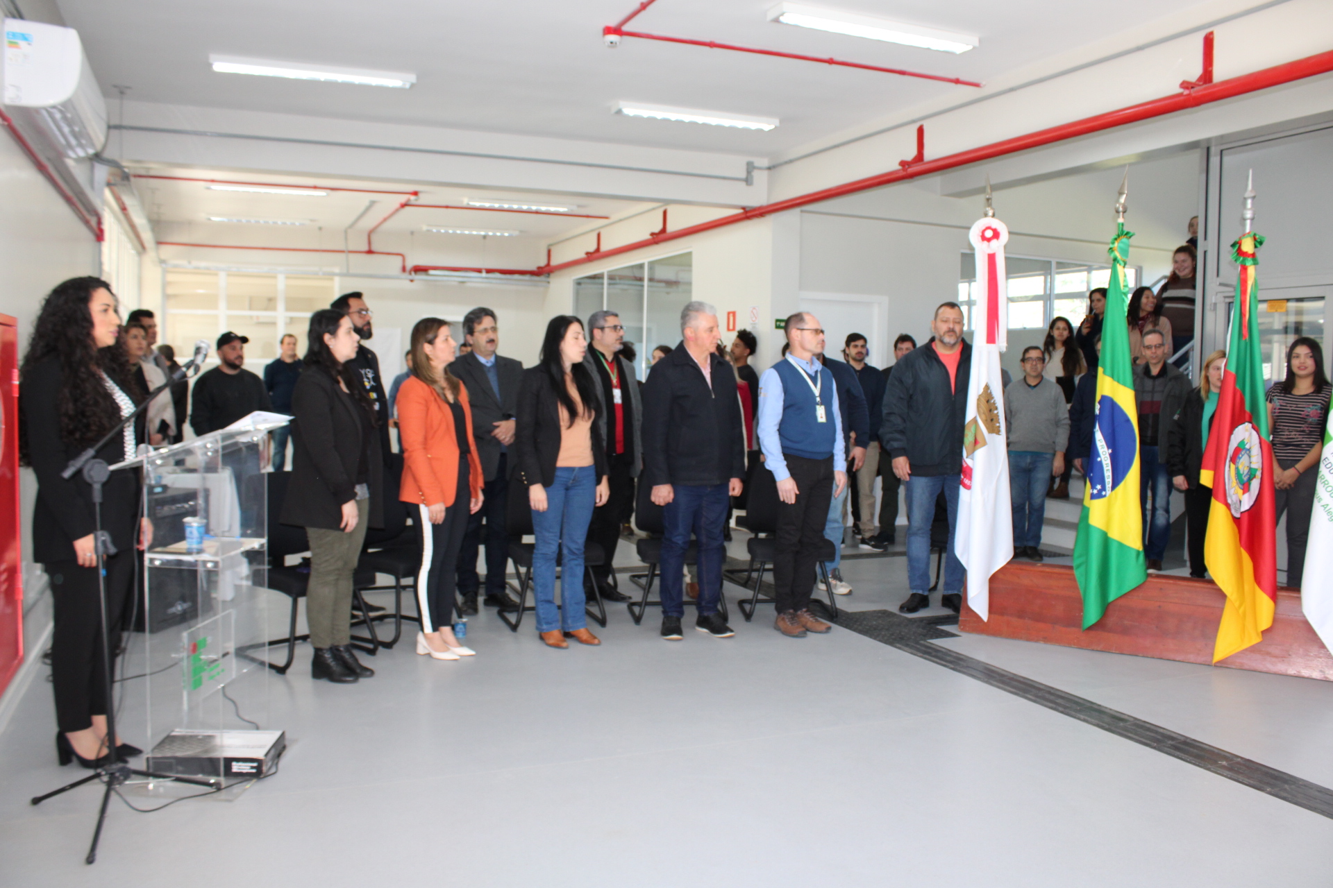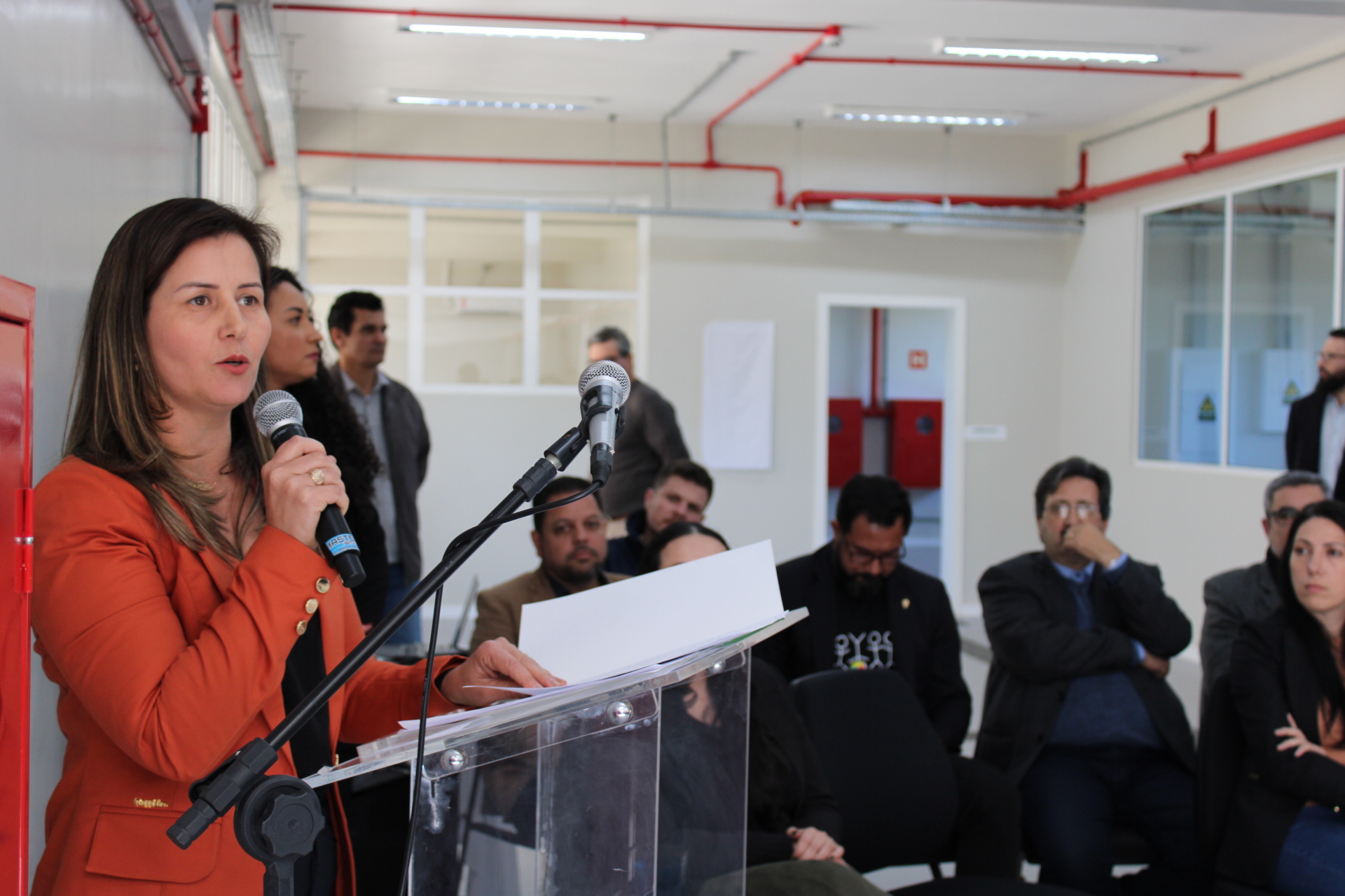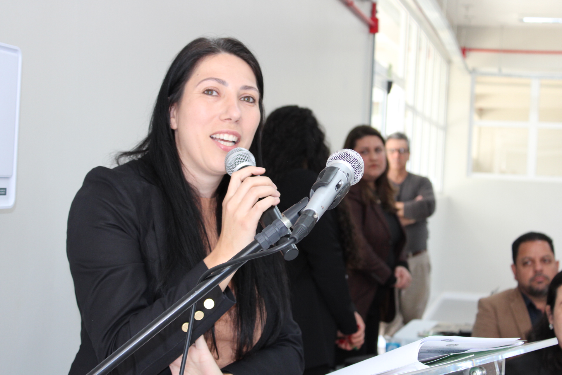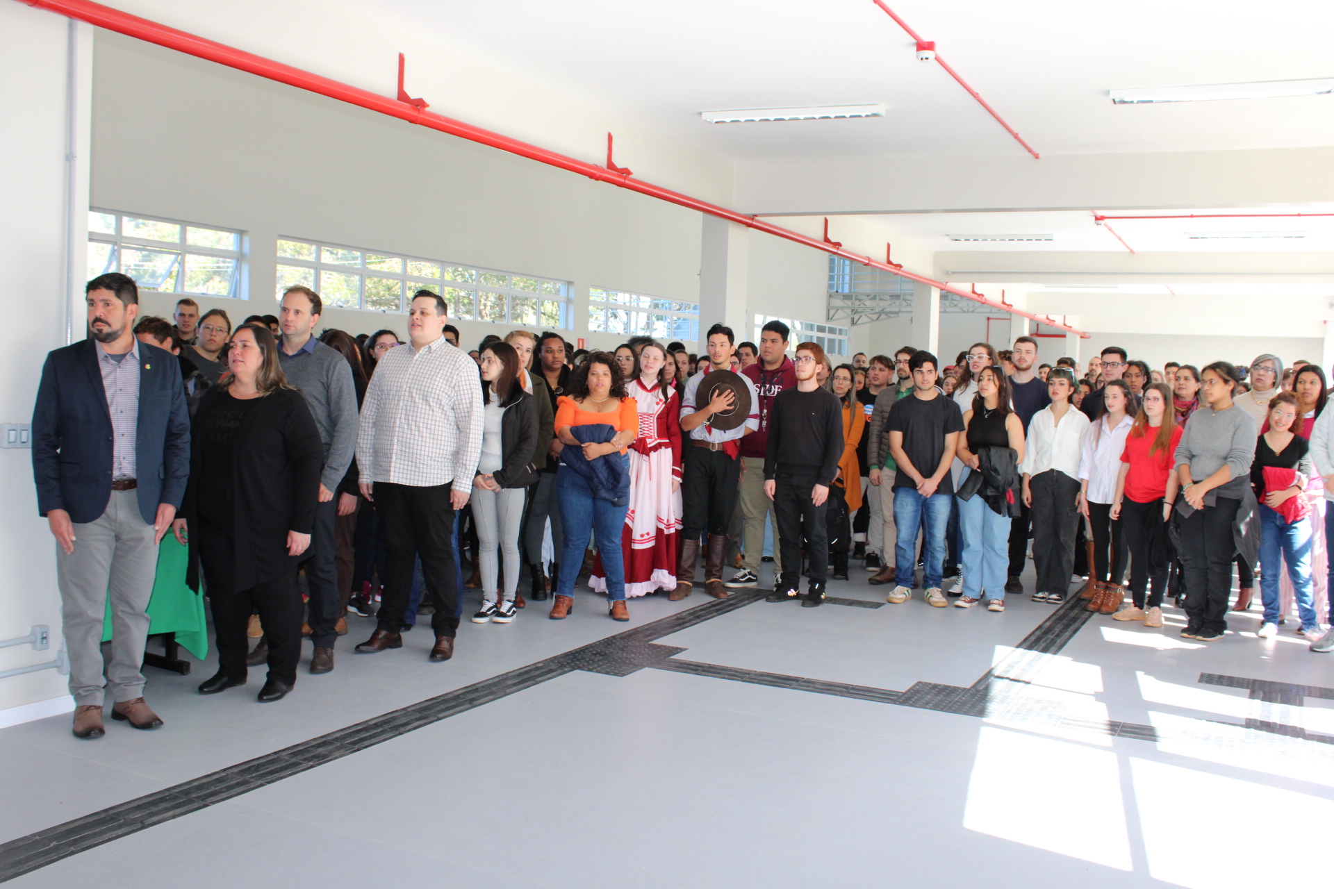 O grande momento da tarde foi o descerramento da placa de inauguração realizado pela Diretora Geral Ana Rita e pela Pró-Reitora de Ensino, Patricia Donicht.