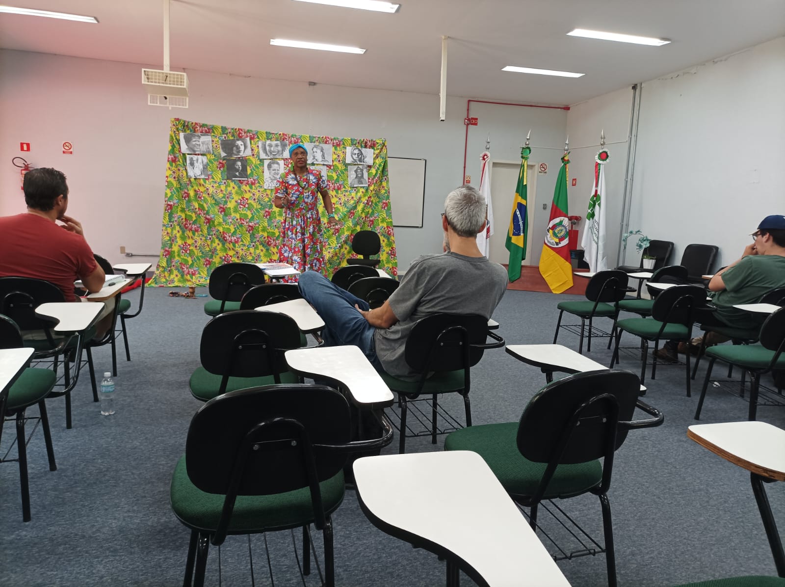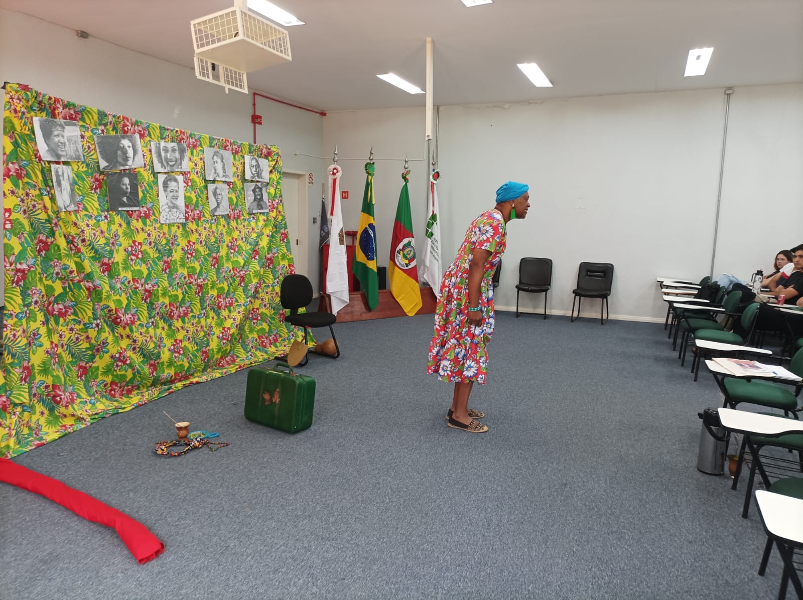 Alunos do ensino médio integrado assistiram na última terça-feira, 28, em duas apresentações, o Espetáculo "IYA DUDU", no Auditório Central do Campus Alegrete. A atração foi promovida pelo Núcleo de Estudos Afro-brasileiros e Indígenas e encerra as atividades referentes ao mês da Consciência Negra.