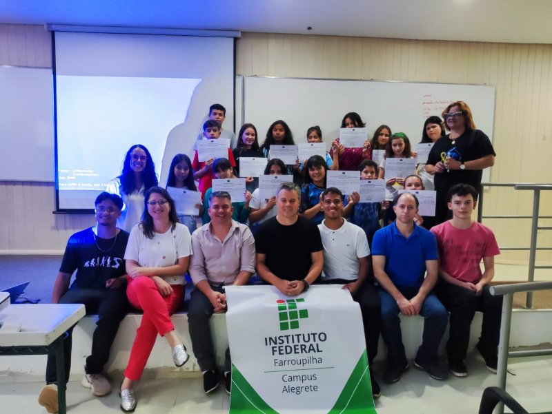 Aconteceu no início do mês de dezembro, no IFFar - Campus Alegrete, a cerimônia de encerramento do Projeto de Extensão "IFTechInova: Educação Tecnológica Inovadora" - ano 2023, com entrega de certificação aos participantes do projeto. Na ocasião esteve presente, além dos responsáveis pelo projeto, o Diretor de Pesquisa, Extensão e Produção do Campus Alegrete, Prof. Douglas Dalla Nora.