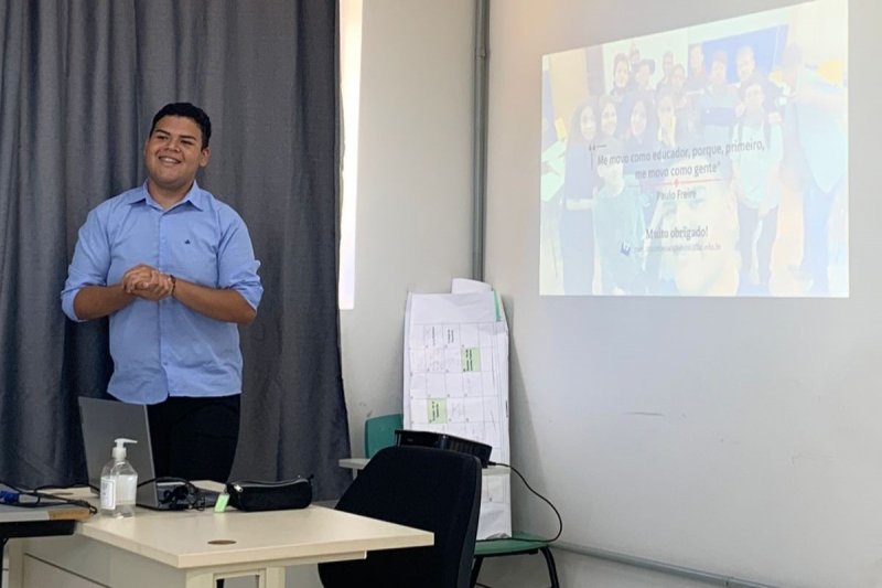 Foto: Rony Gonçalves durante defesa de estágio - um dos objetivos do estudante é se tornar professor