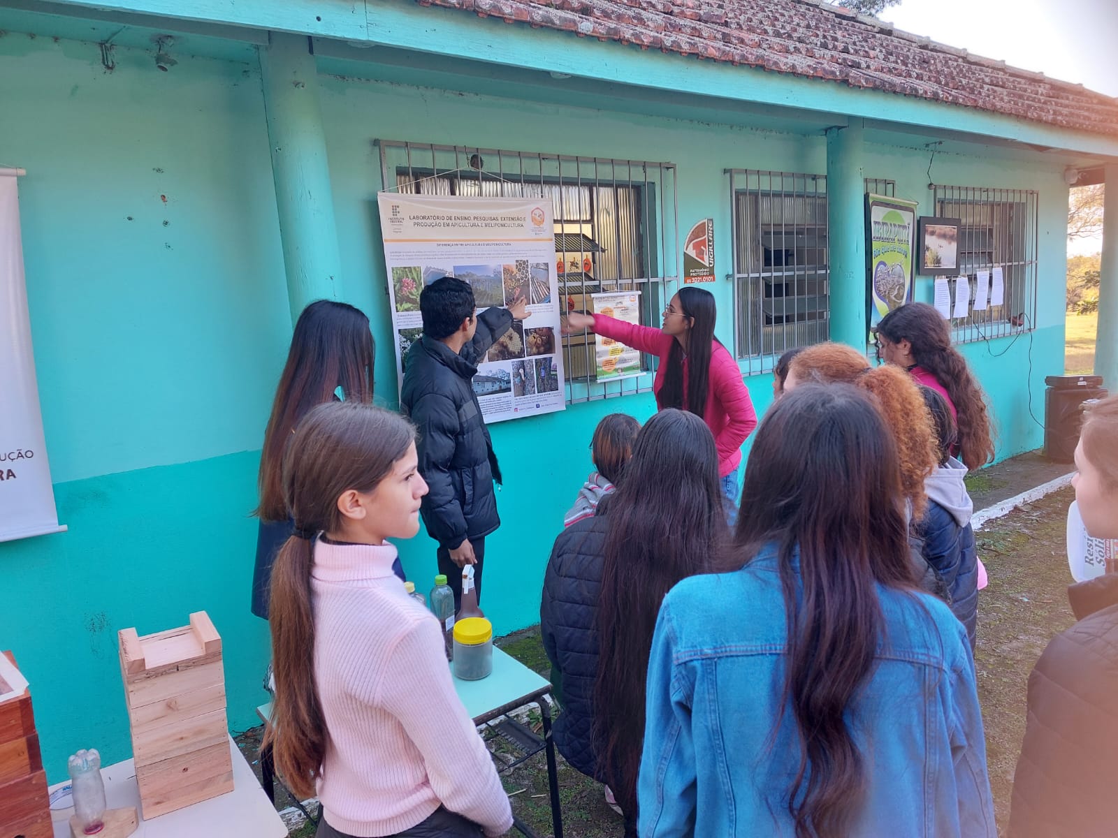 Durante o evento foi possível abordar a importância das abelhas na produção de alimento e no meio ambiente e também divulgar o meliponário do IFFar como espaço de conhecimento para a comunidade. Os estudantes Luy Mendonça e Caroline Santos (Técnico em Agropecuária) e Gabrieli Bianchi (Licenciatura em Ciências Biológicas) juntamente com a professora Renata Porto Alegre Garcia apresentaram materiais e banners sobre Apicultura e Meliponicultura.