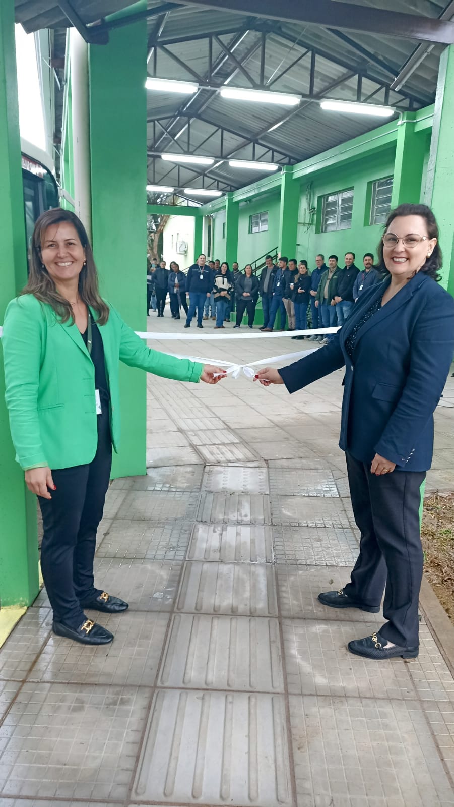 Além das visitas aos setores e obras, a Reitora, juntamente com a Diretora Geral do Campus Alegrete, Ana Rita Parizi, inauguraram a nova parada de ônibus no campus. Essa nova infraestrutura é parte das melhorias planejadas para facilitar o acesso dos alunos, servidores e visitantes à instituição, melhorando a comodidade e a segurança de todos.