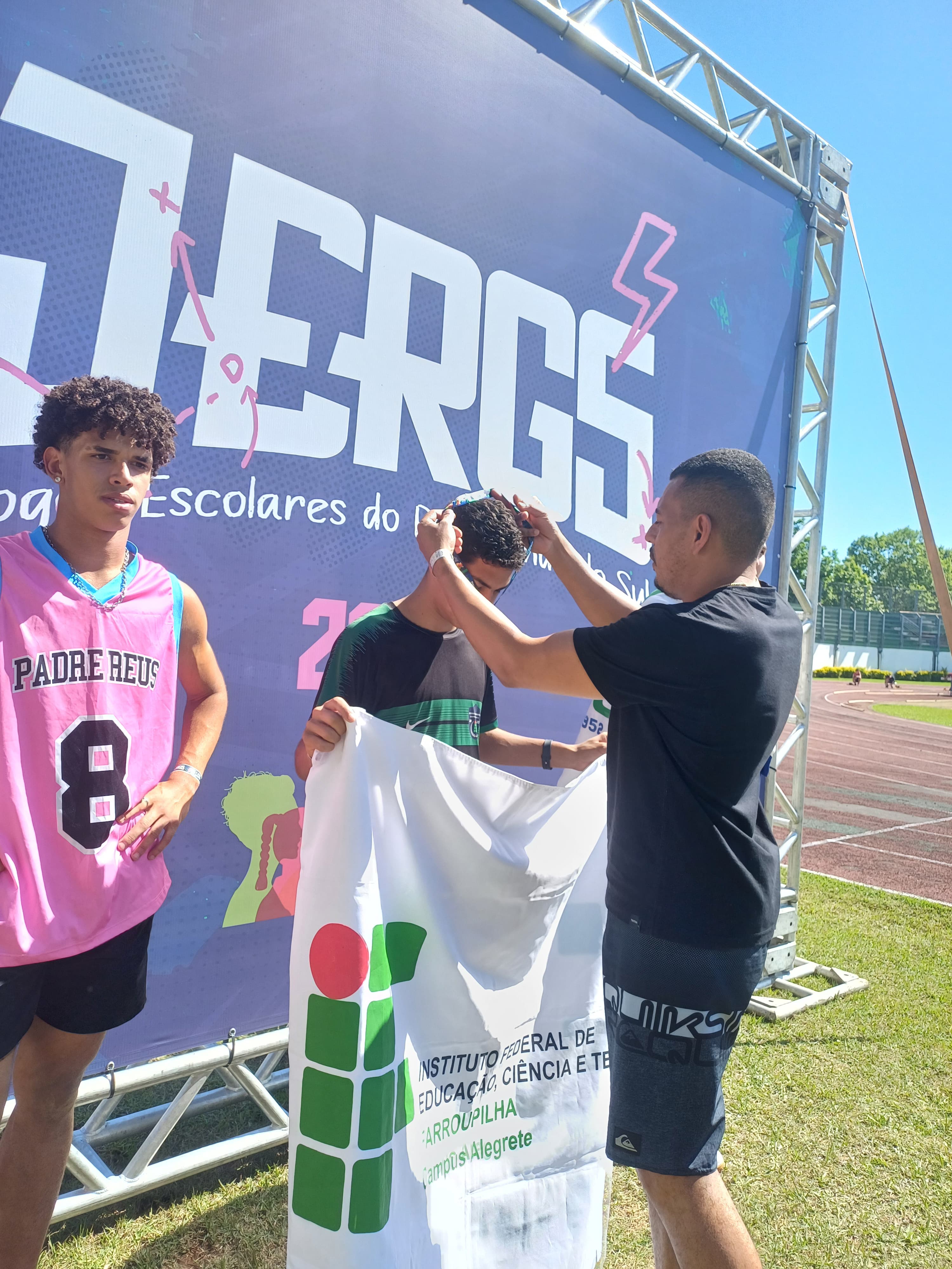 Após a participação nos Jogos Estudantis do IFFar, o estudante Elielson Guedes, do 3º ano do Curso Técnico em Agropecuária, representou o IFFar - Campus Alegrete nos Jogos Escolares do RS, em Porto Alegrete, sagrando-se campeão estadual na modalidade salto triplo, com a marca de 12,15 metros. O aluno foi acompanhado pelo Professor de Educação Física, Jéferson Queiroz.