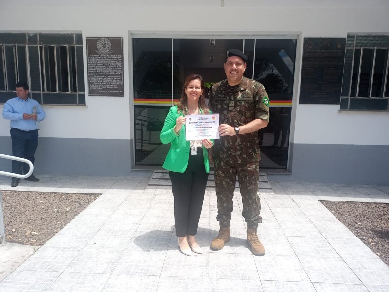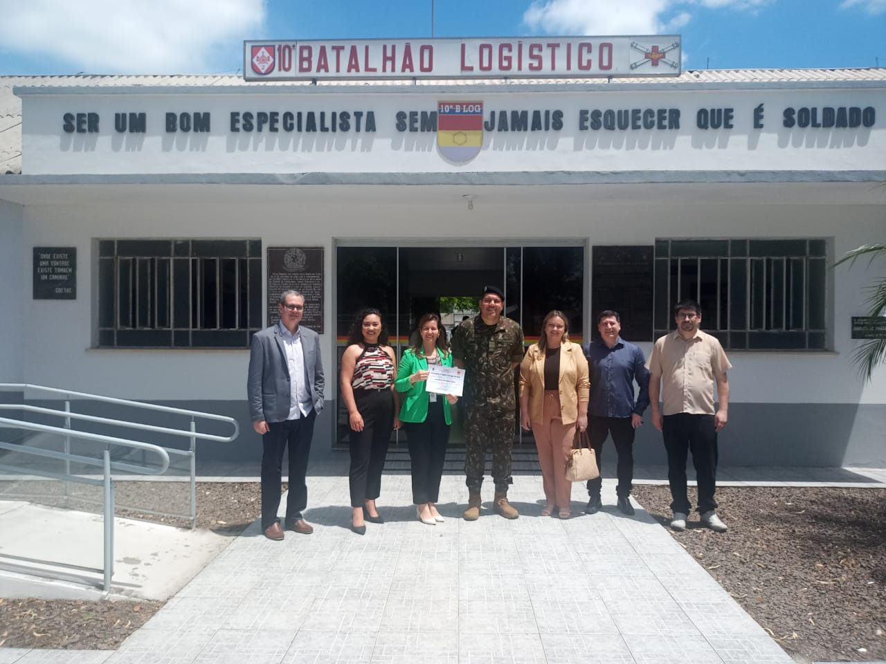 Em uma cerimônia realizada nas instalações do 10º BLog, a Diretora recebeu a homenagem das mãos do Comandante, Coronel Anderson Mendes de Carvalho, que ressaltou a importância da parceria entre as duas instituições, levando desenvolvimento de diversos programas para a capacitação profissional dos militares.