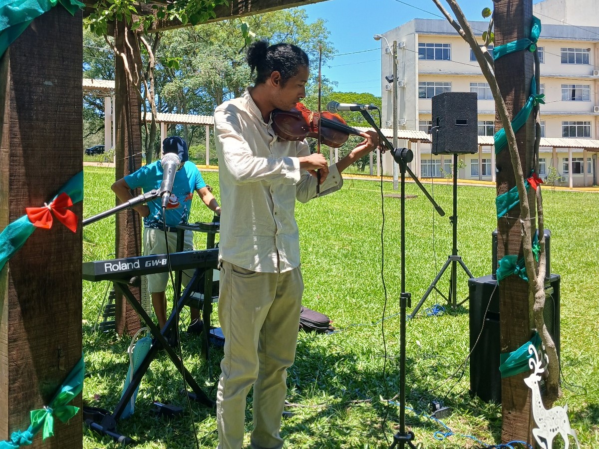 Entre os destaques da programação, o evento contou com apresentações dos artistas locais do campus, que mostraram seu talento e encantaram o público presente com performances diversificadas. O momento mais esperado foi o show especial do violinista Luis Ricardo, que, com sua música envolvente, encerrou a confraternização em grande estilo, levando todos a se emocionar com sua apresentação.